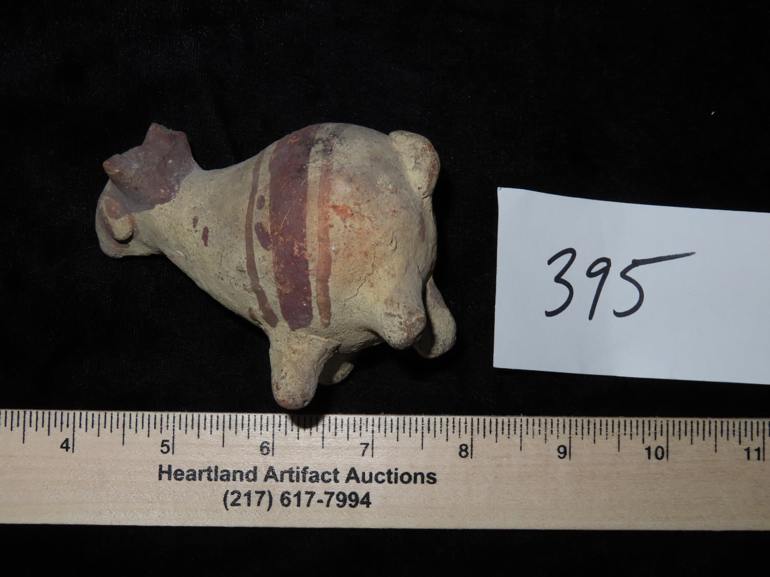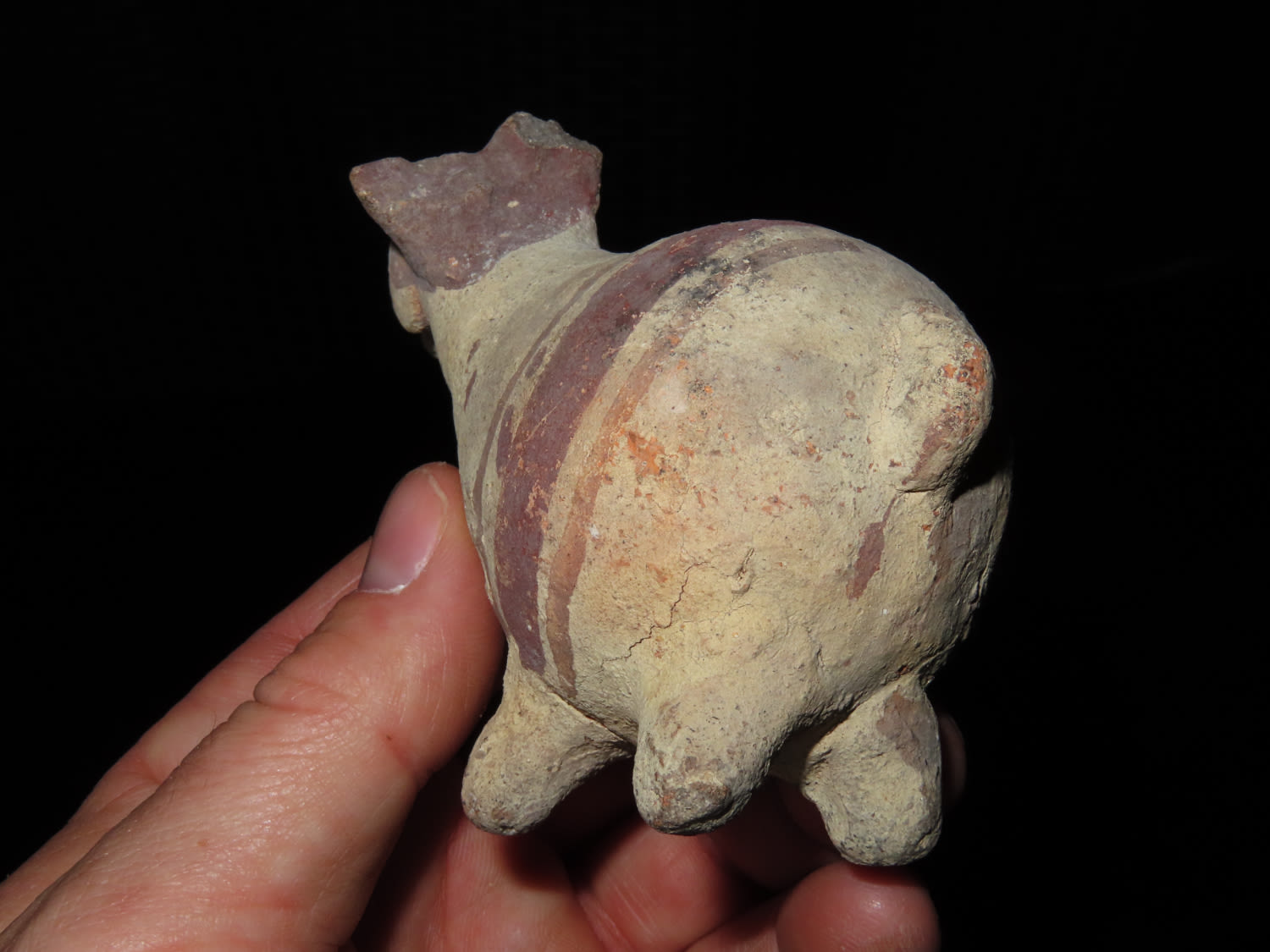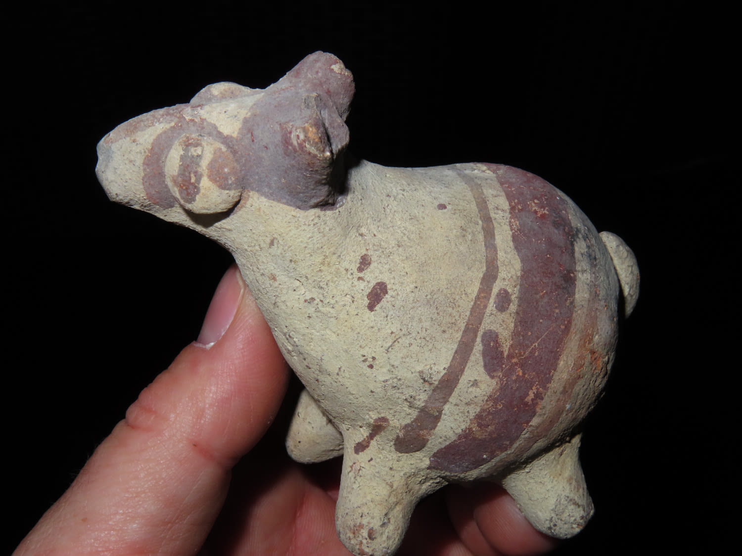 3 5/8″ POLYCHROME PAINTED ANIMAL / LLAMA EFFIGY FIGURE / STATUE FOUND IN MEXICO, NICE DETAILS, SOLID WITH NO REPAIR, ORIGINAL PAINT