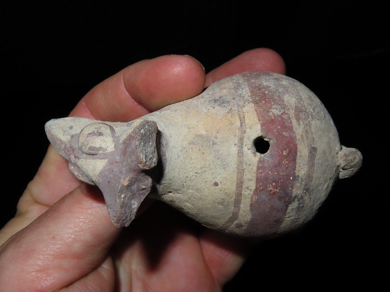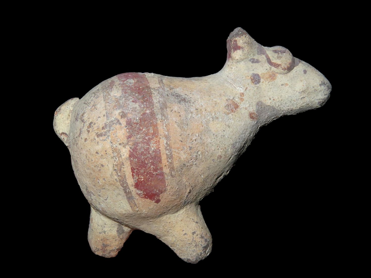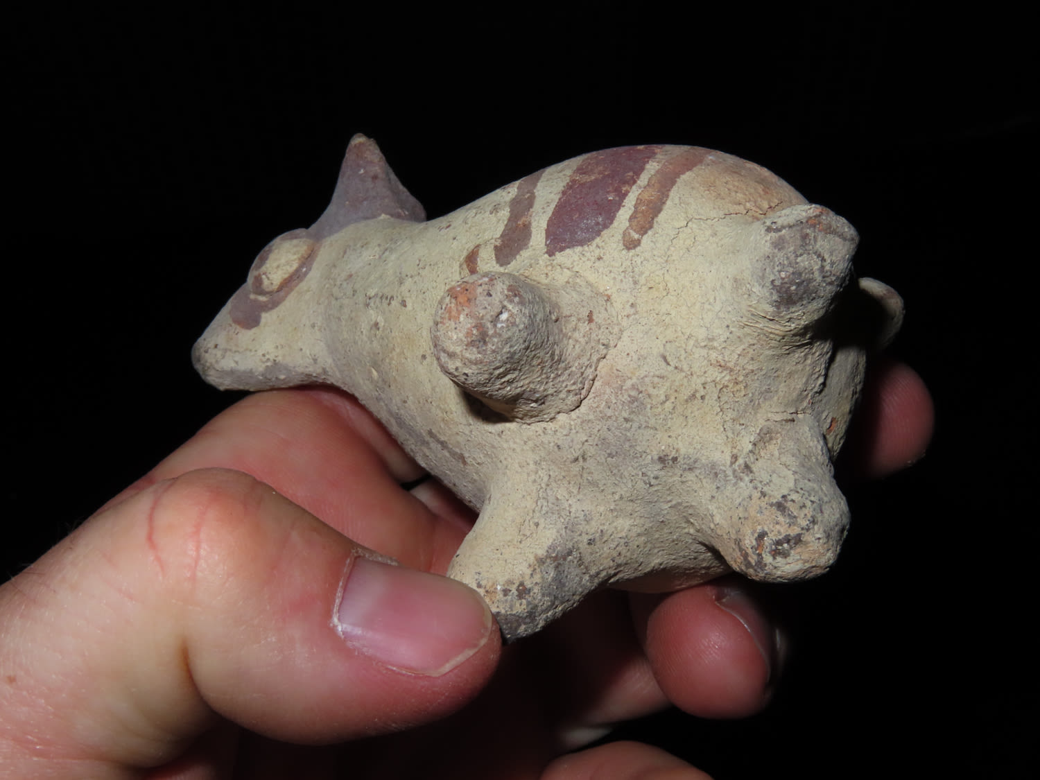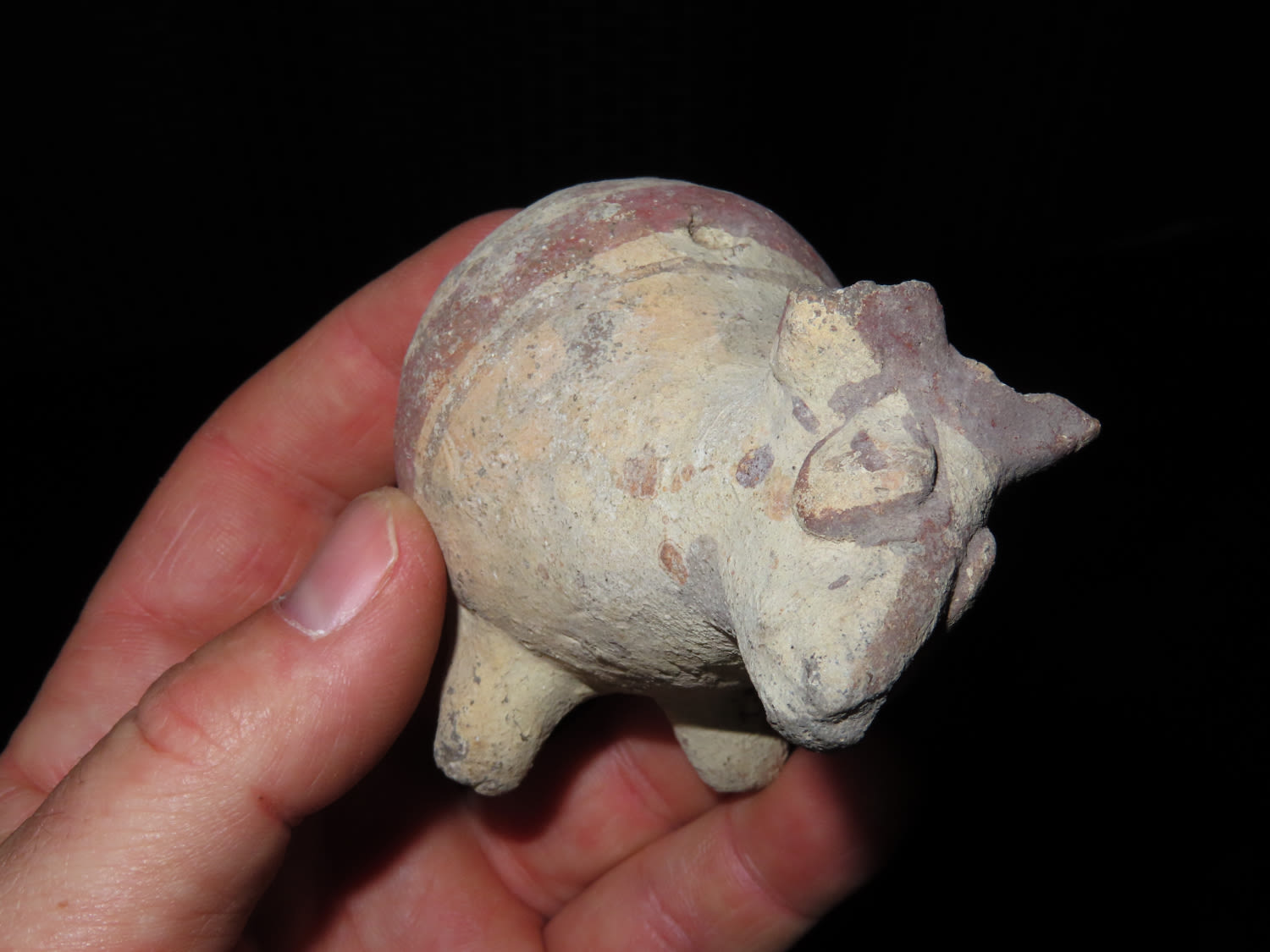 3 5/8″ POLYCHROME PAINTED ANIMAL / LLAMA EFFIGY FIGURE / STATUE FOUND IN MEXICO, NICE DETAILS, SOLID WITH NO REPAIR, ORIGINAL PAINT