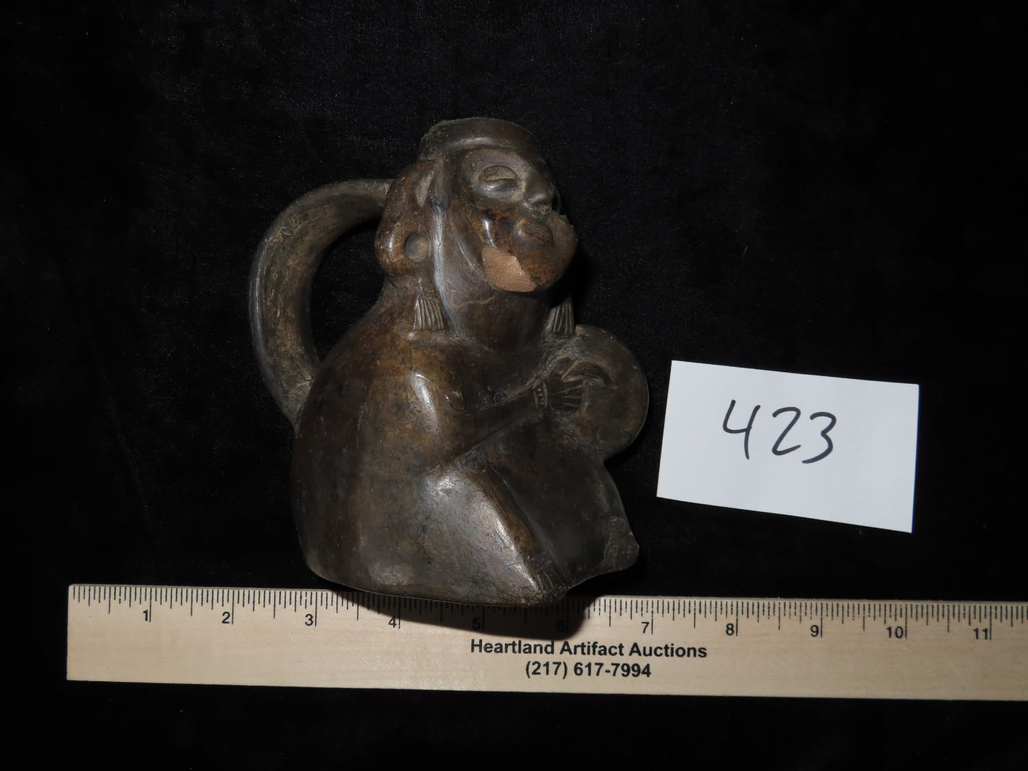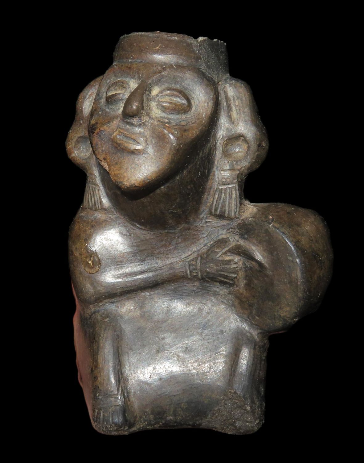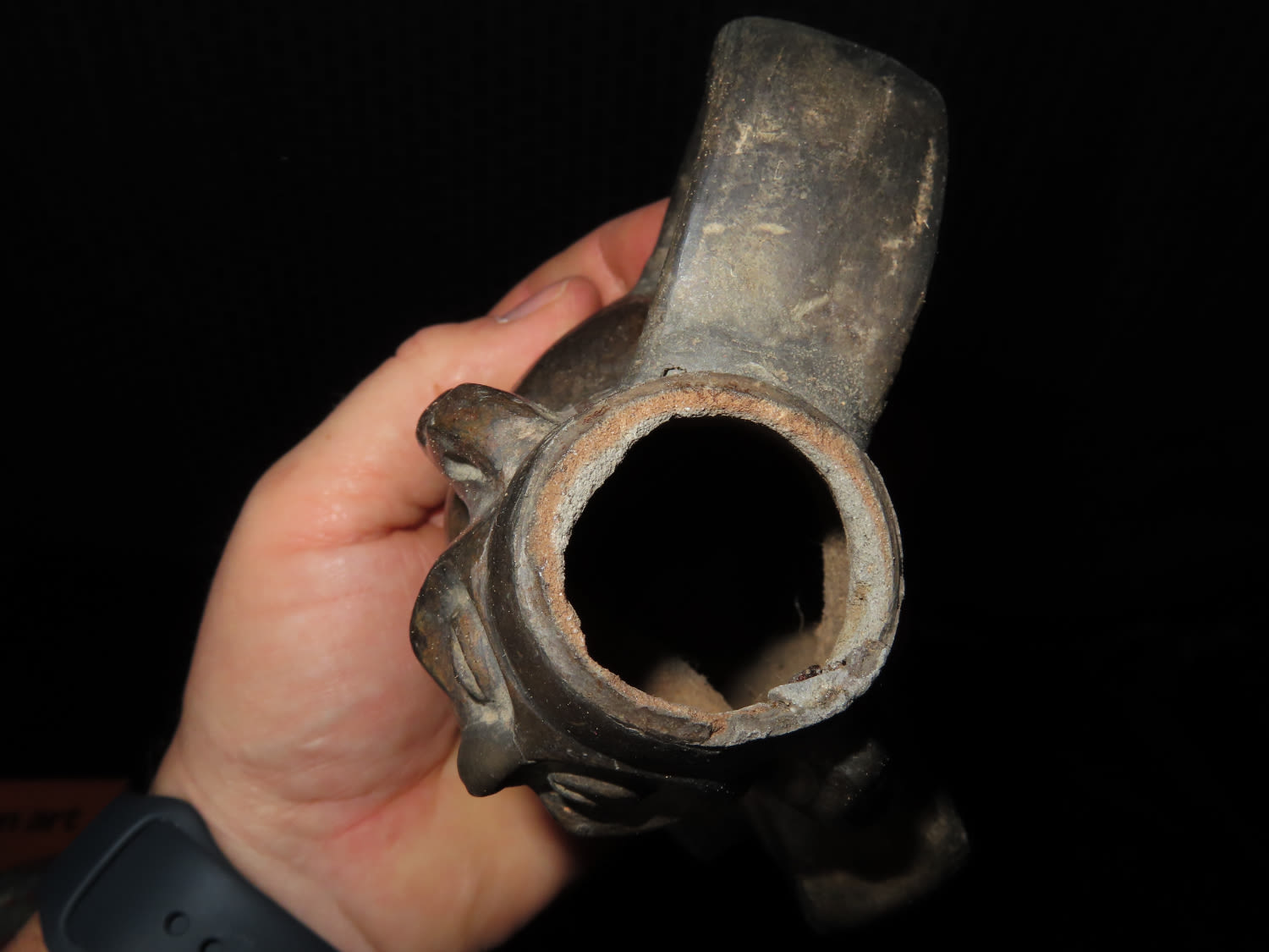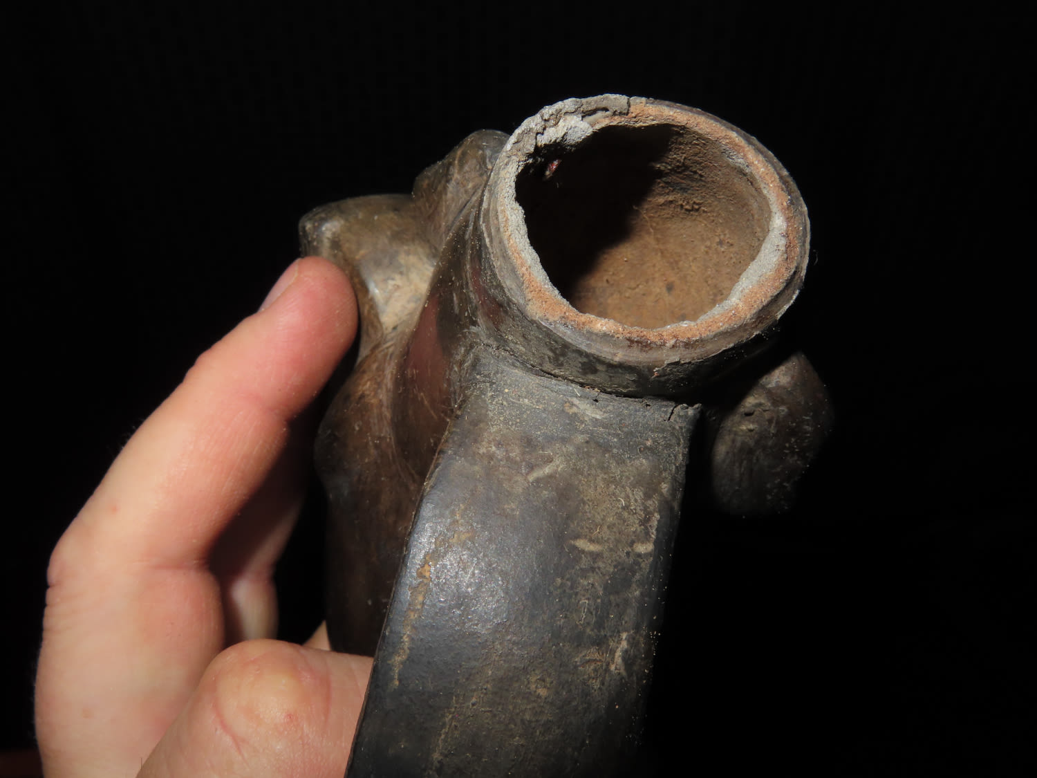 5″ TALL MOCHE HUMAN EFFIGY POTTERY VESSEL, PRECOLUMBIAN, GREAT DETAIL & DESIGN WITH SOME DAMAGE AS SEEN