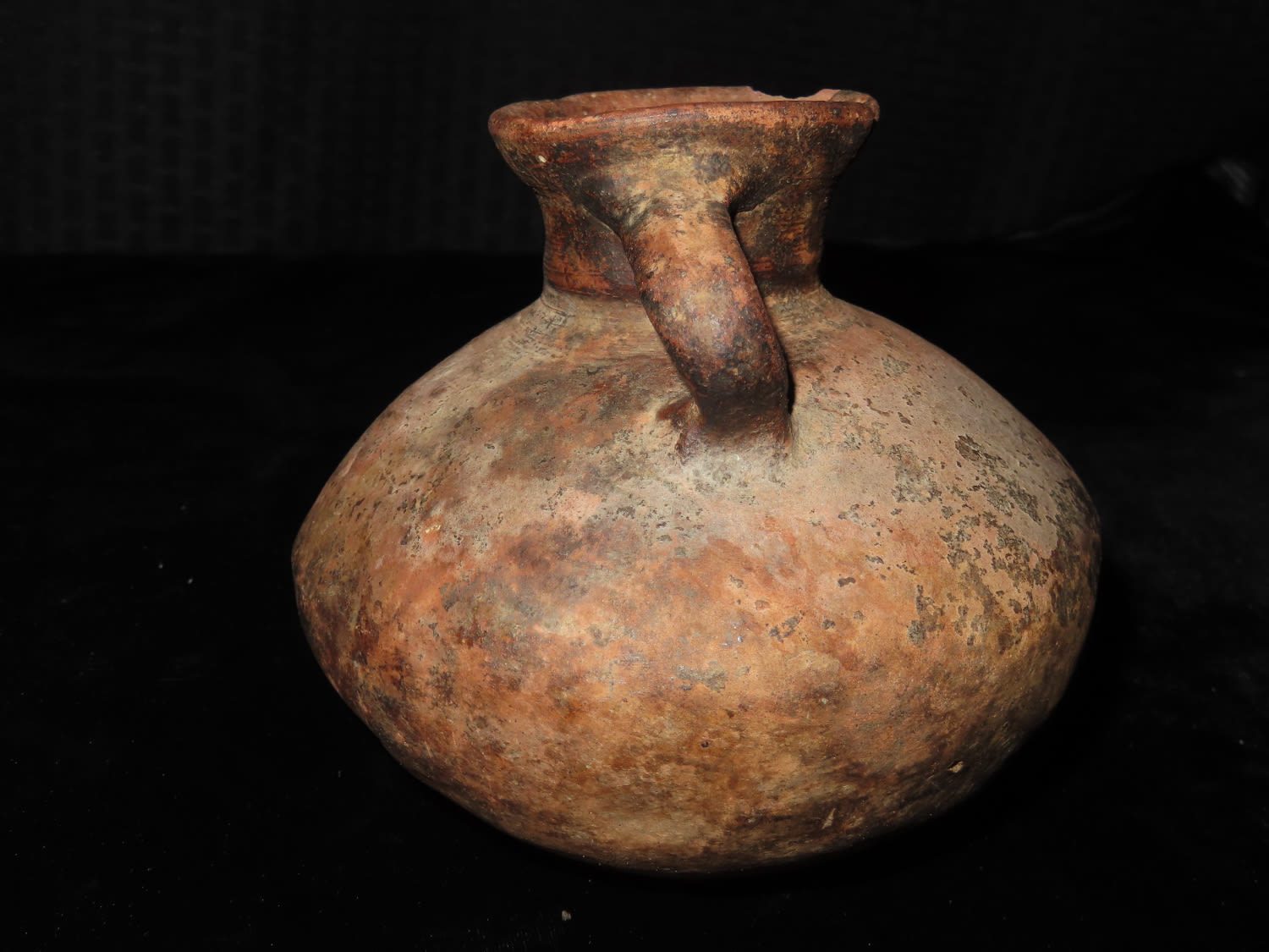 6″ PRECOLUMBIAN POTTERY JAR / BOWL FROM MEXICO, NICE SOLID CONDITION WITH GREAT HEAVY PATINA