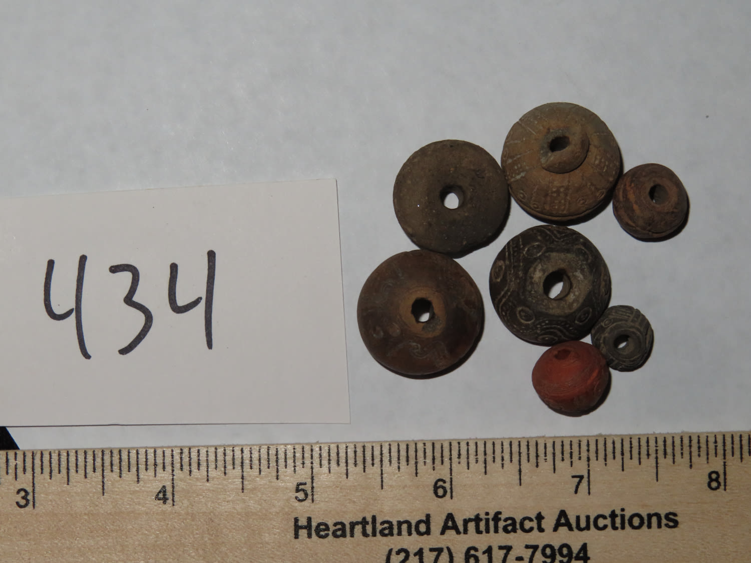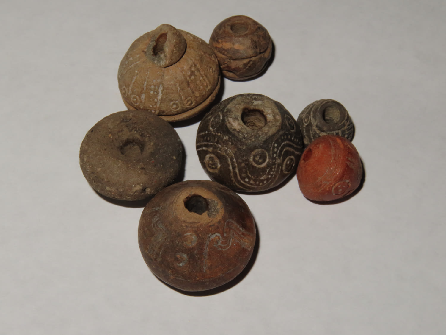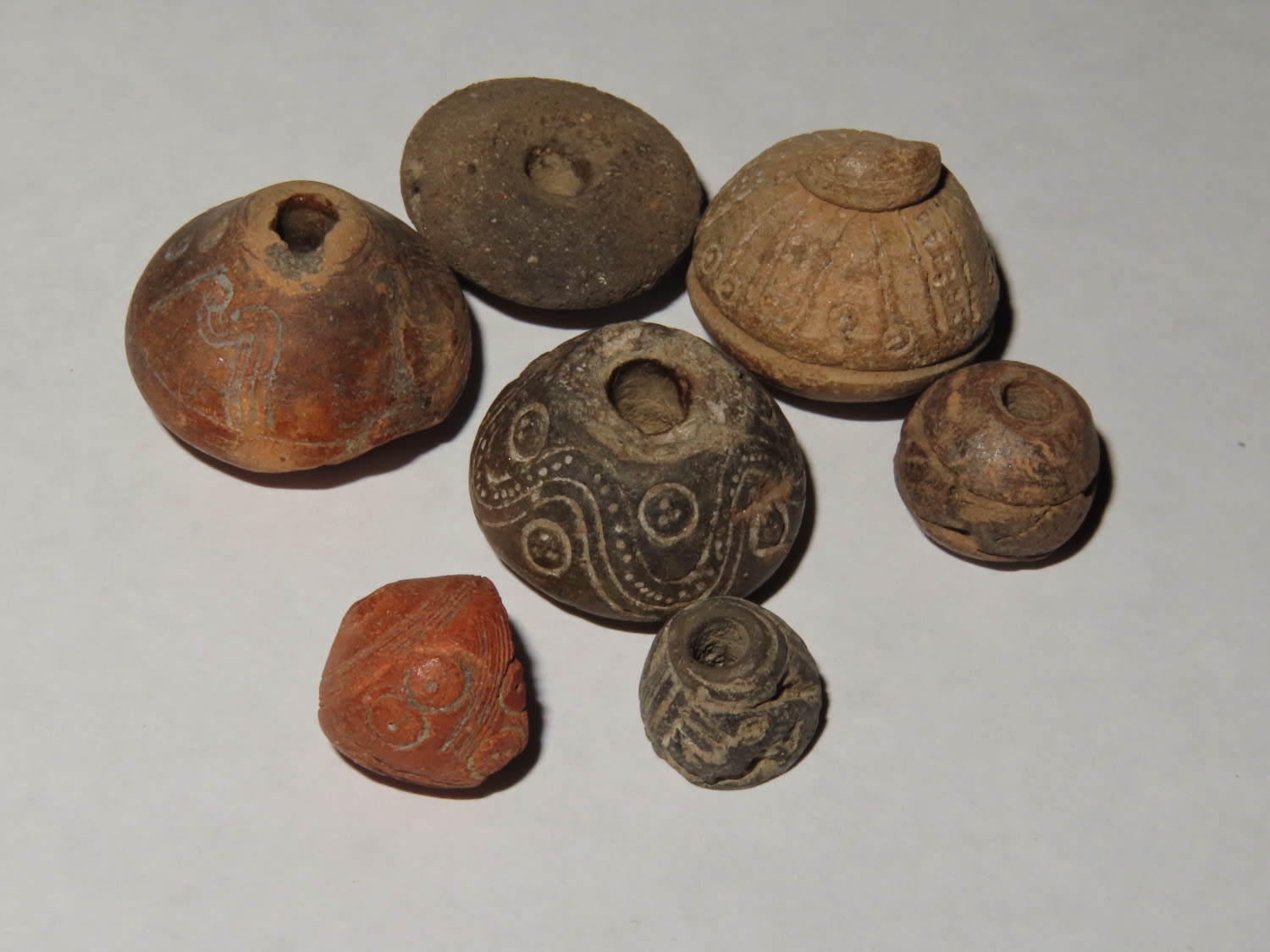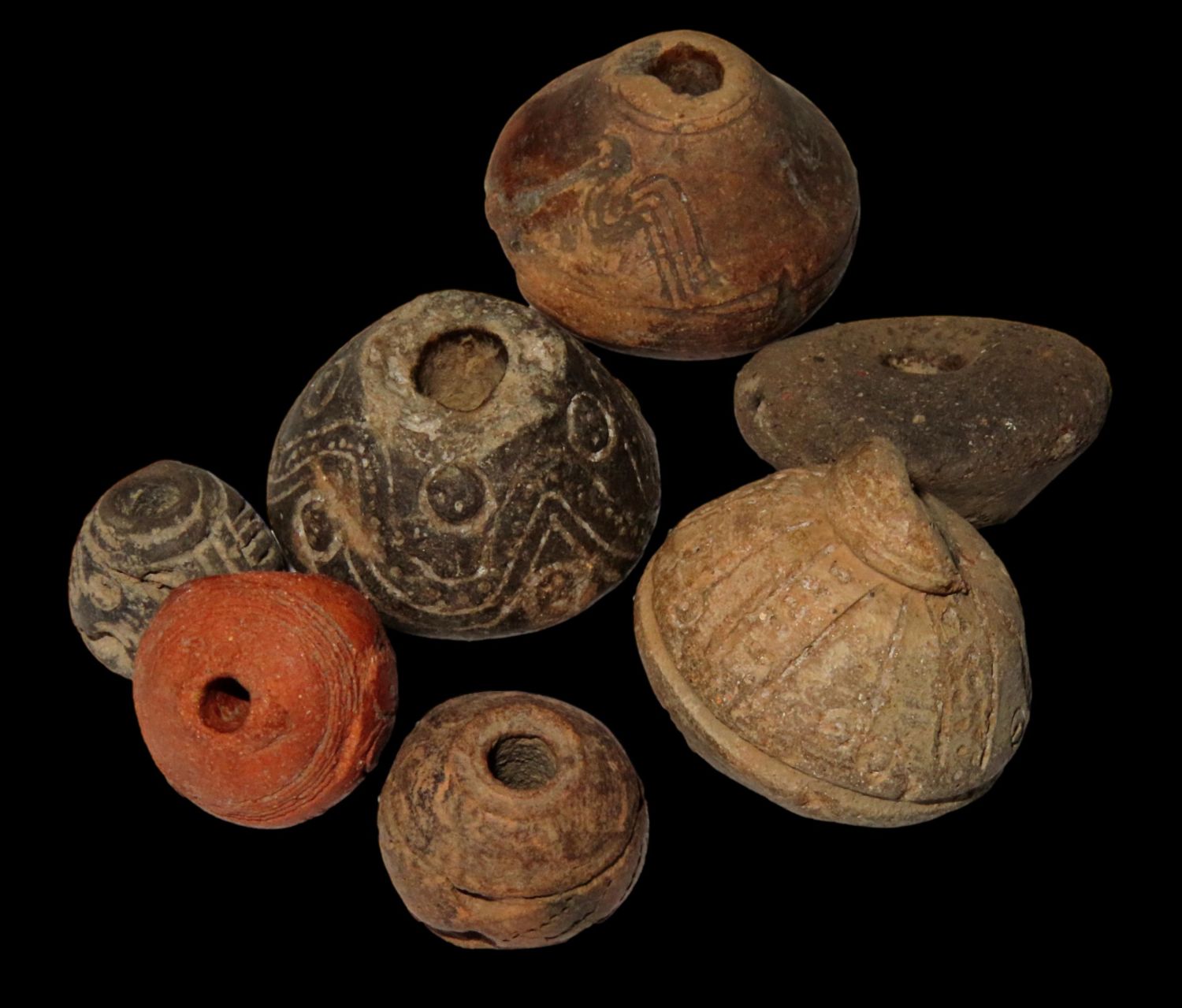 NICE LOT OF ENGRAVED SPINDLE WHORL POTTERY BEADS FROM MEXICO, PRE-COLUMBIAN ARTIFACTS, BEAD, PENDANT