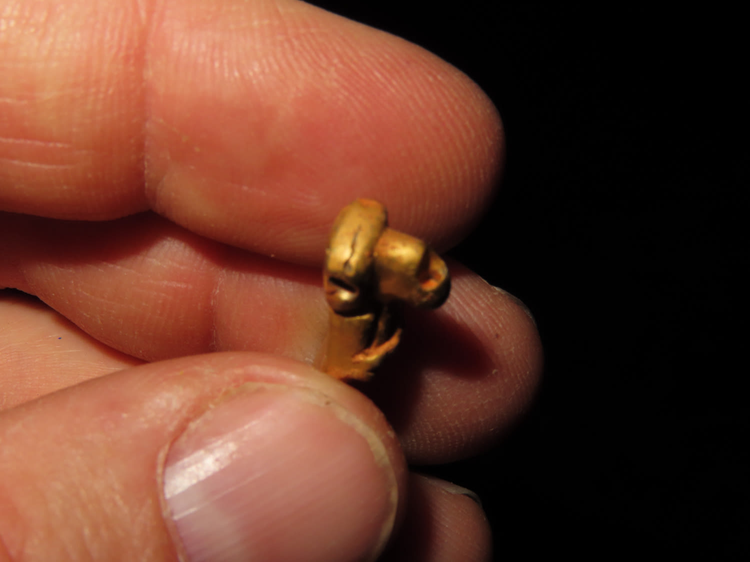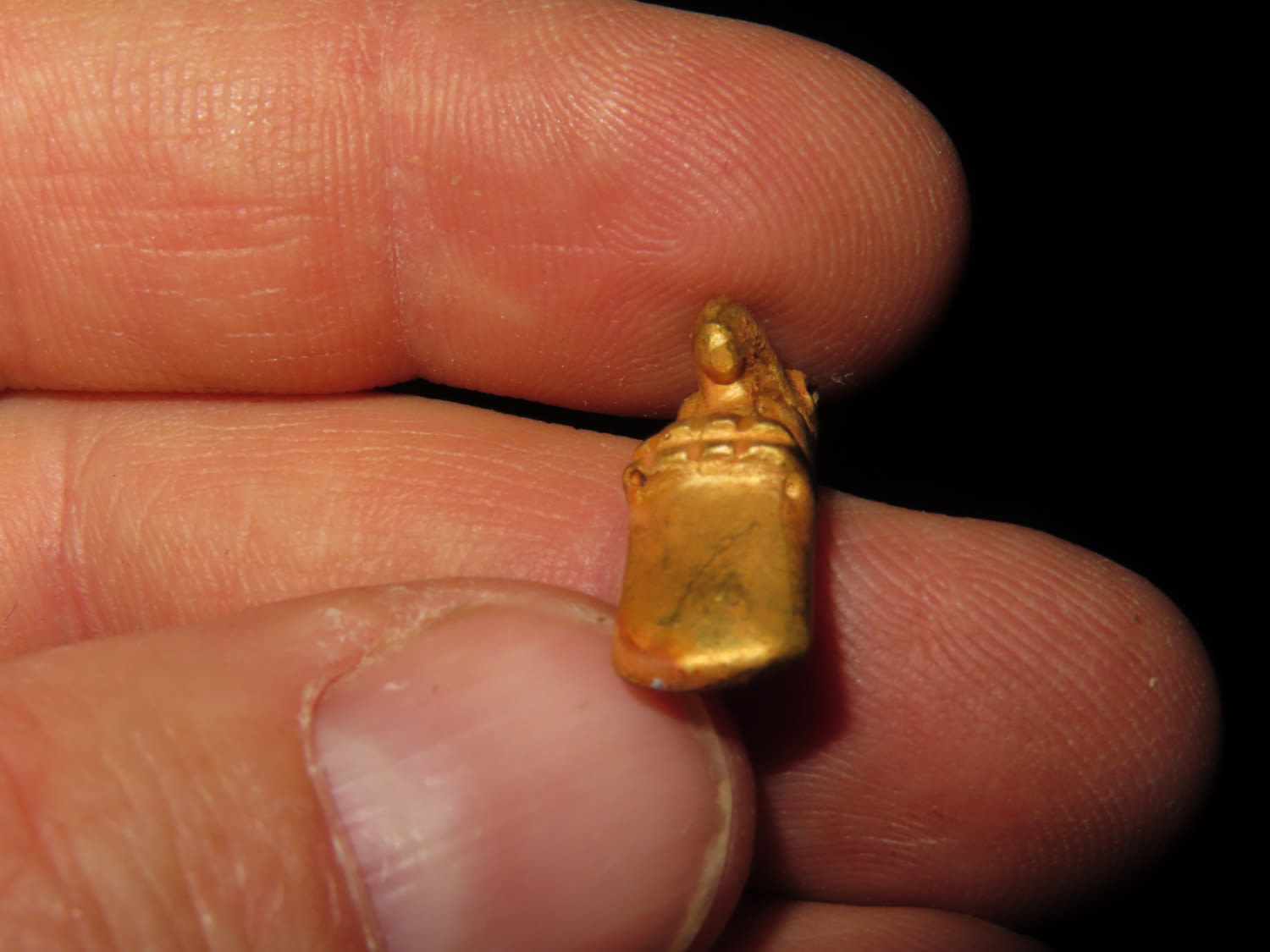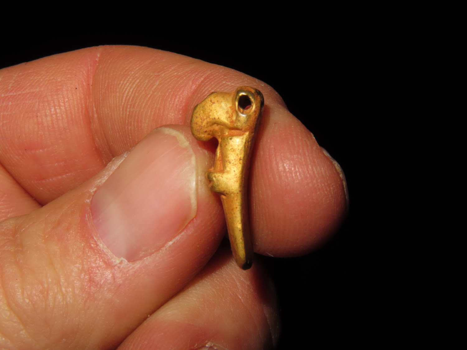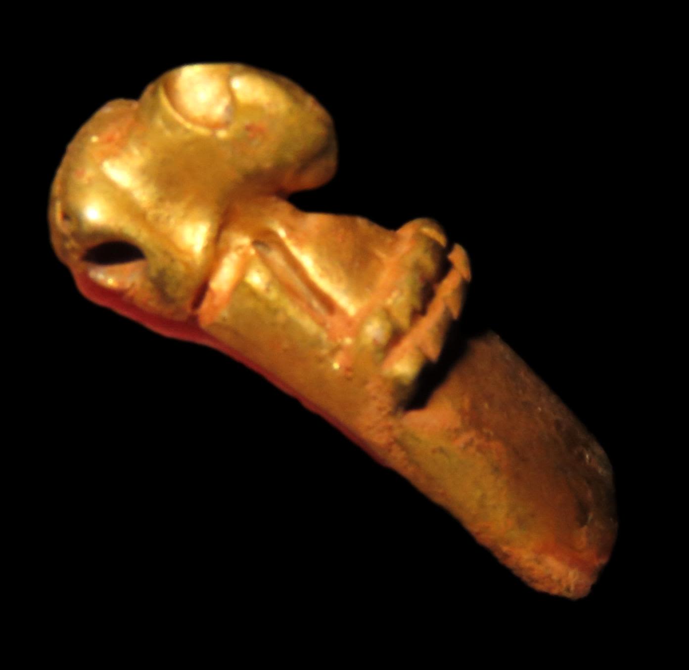 RARE GOLD BIRD EFFIGY PENDANT FROM MEXICO, GREAT PRECOLUMBIAN EFFIGY BEAD, NICE DETAIL, EXACT GOLD CONTENT UNKOWN
