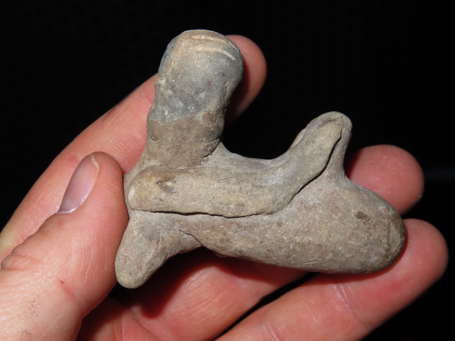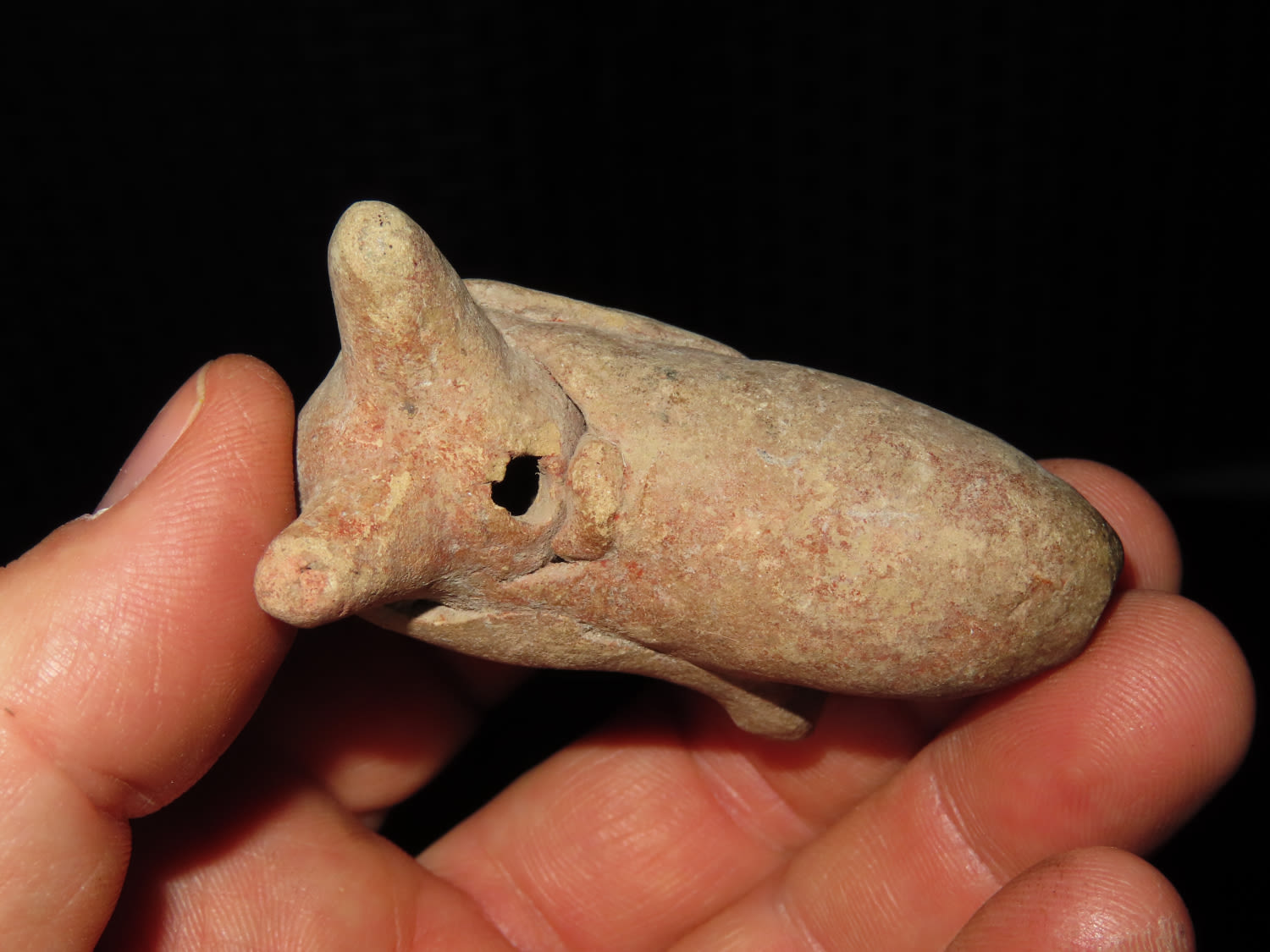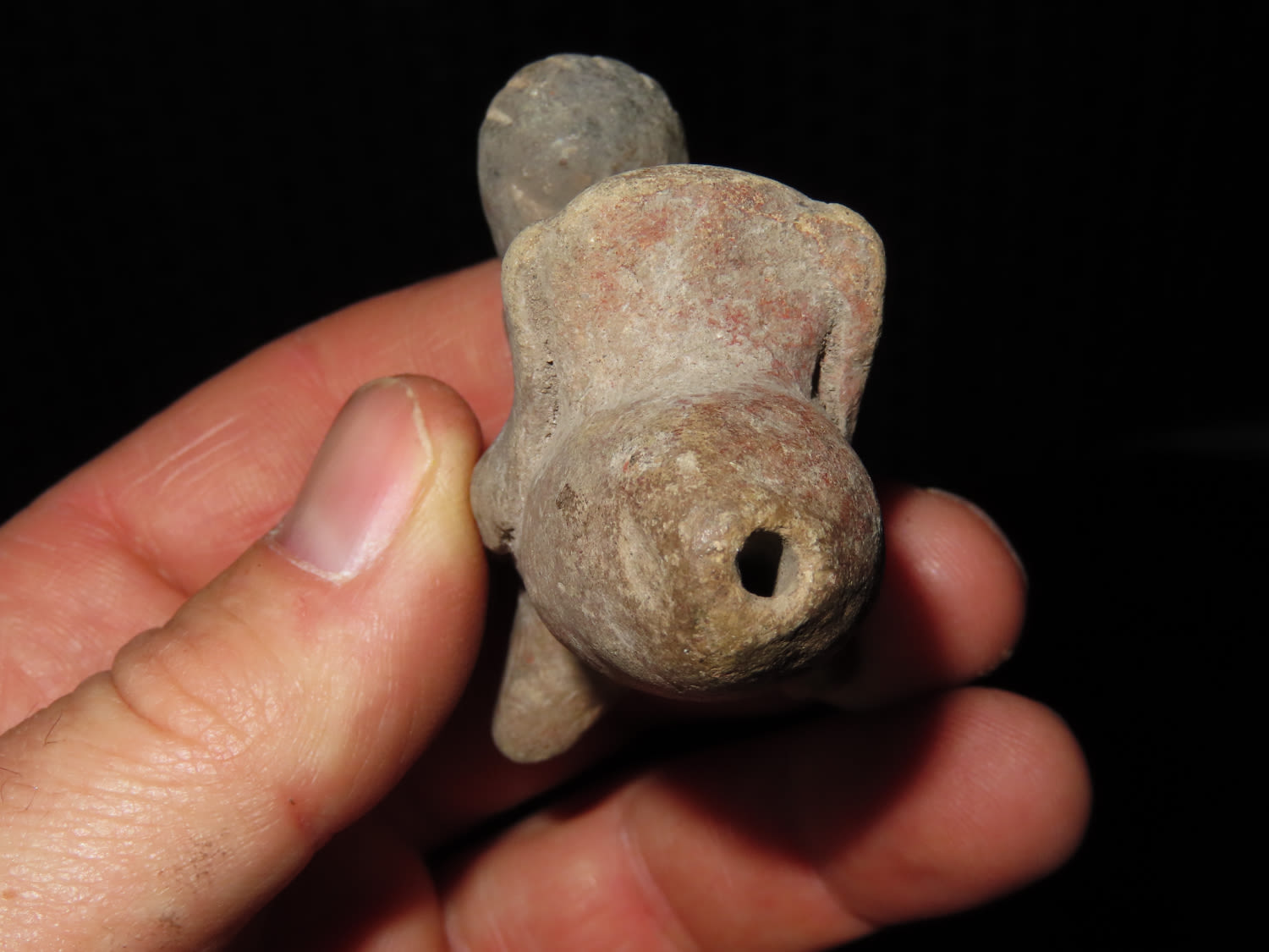 2 1/2″ PRECOLUMBIAN ANIMAL EFFIGY POTTERY WHISTLE FROM MEXICO, WORKS GREAT