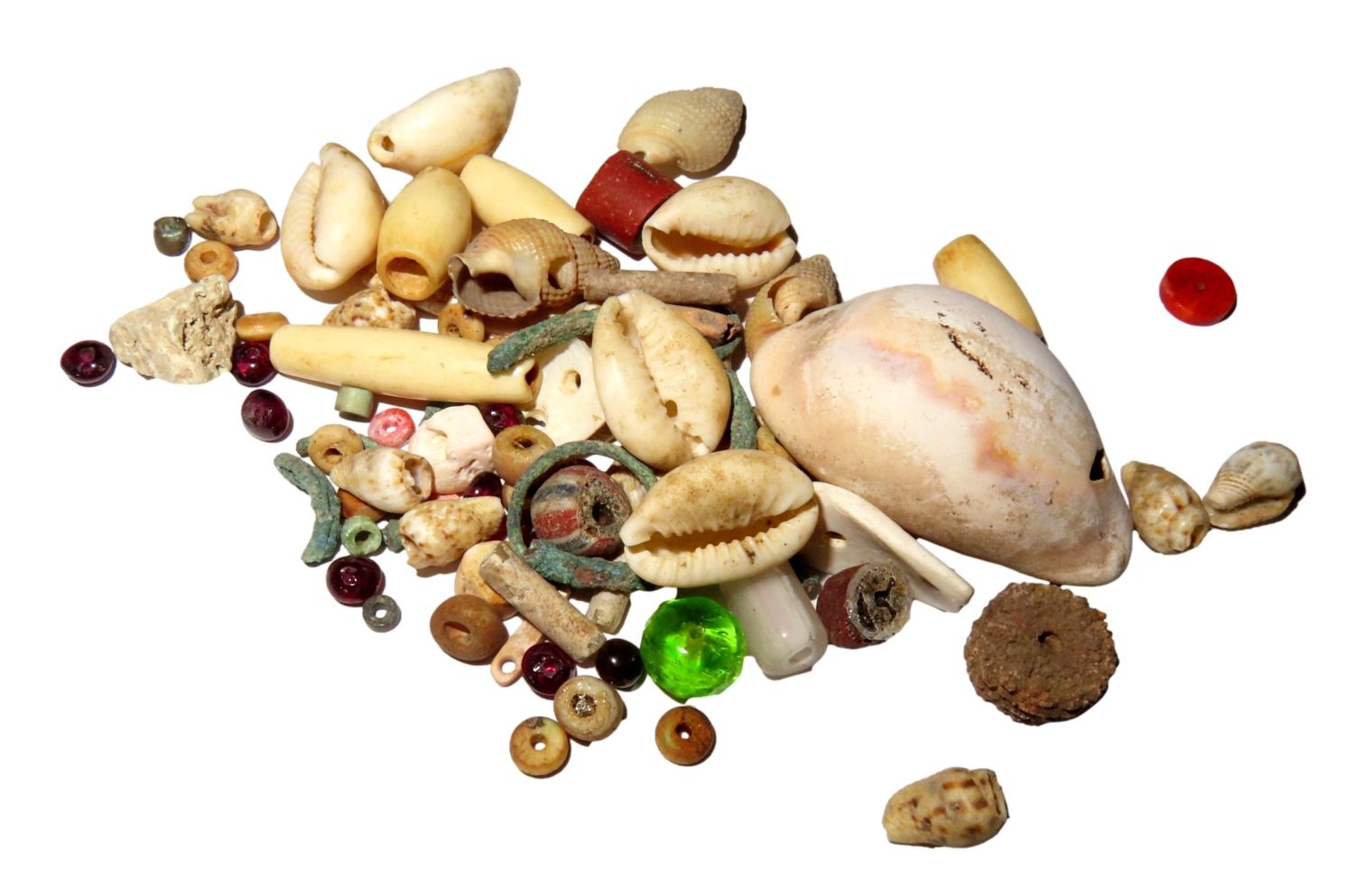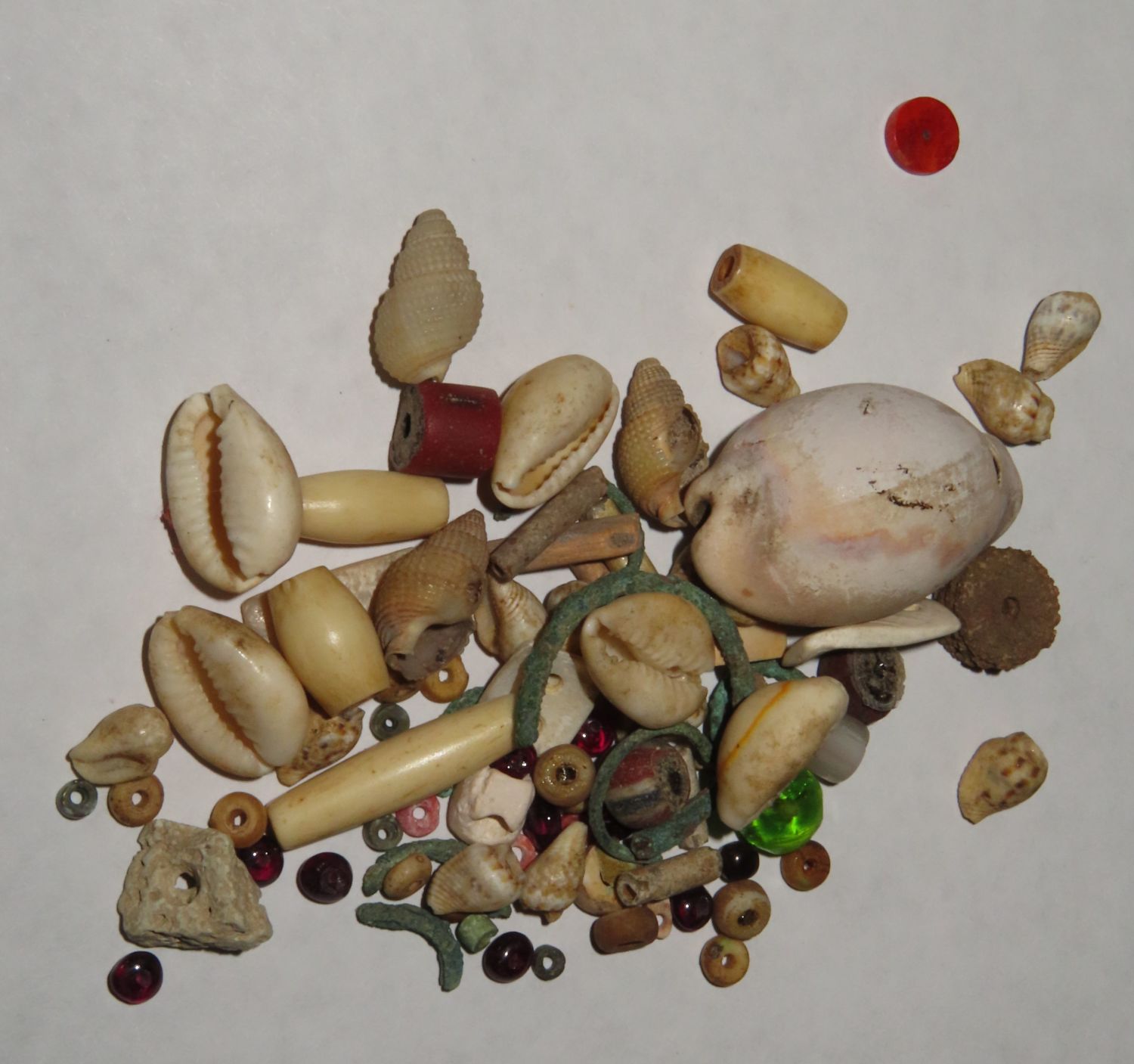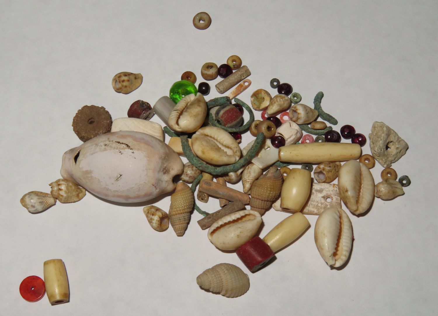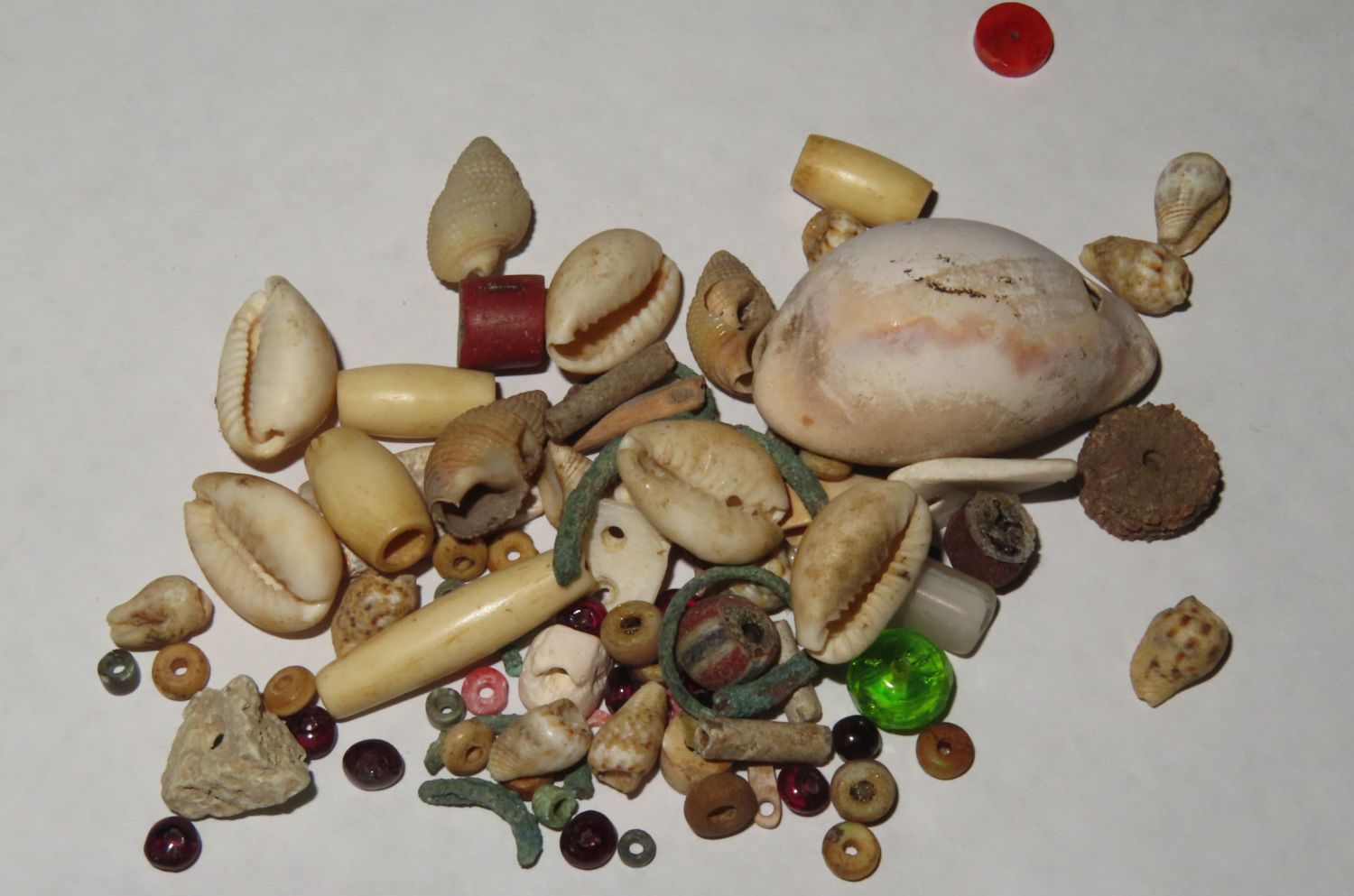 NICE GROUP OF STONE, SHELL, BONE, & COPPER BEADS FROM MEXICO, PRECOLUMBIAN ARTIFACTS