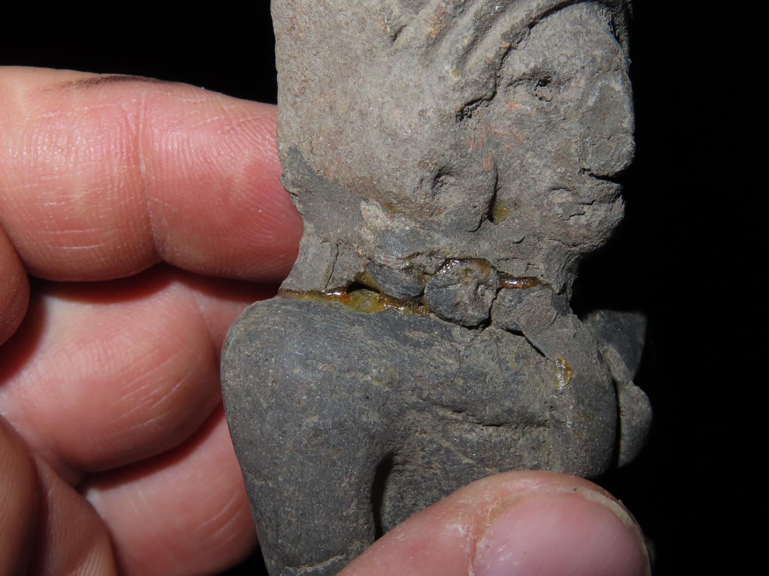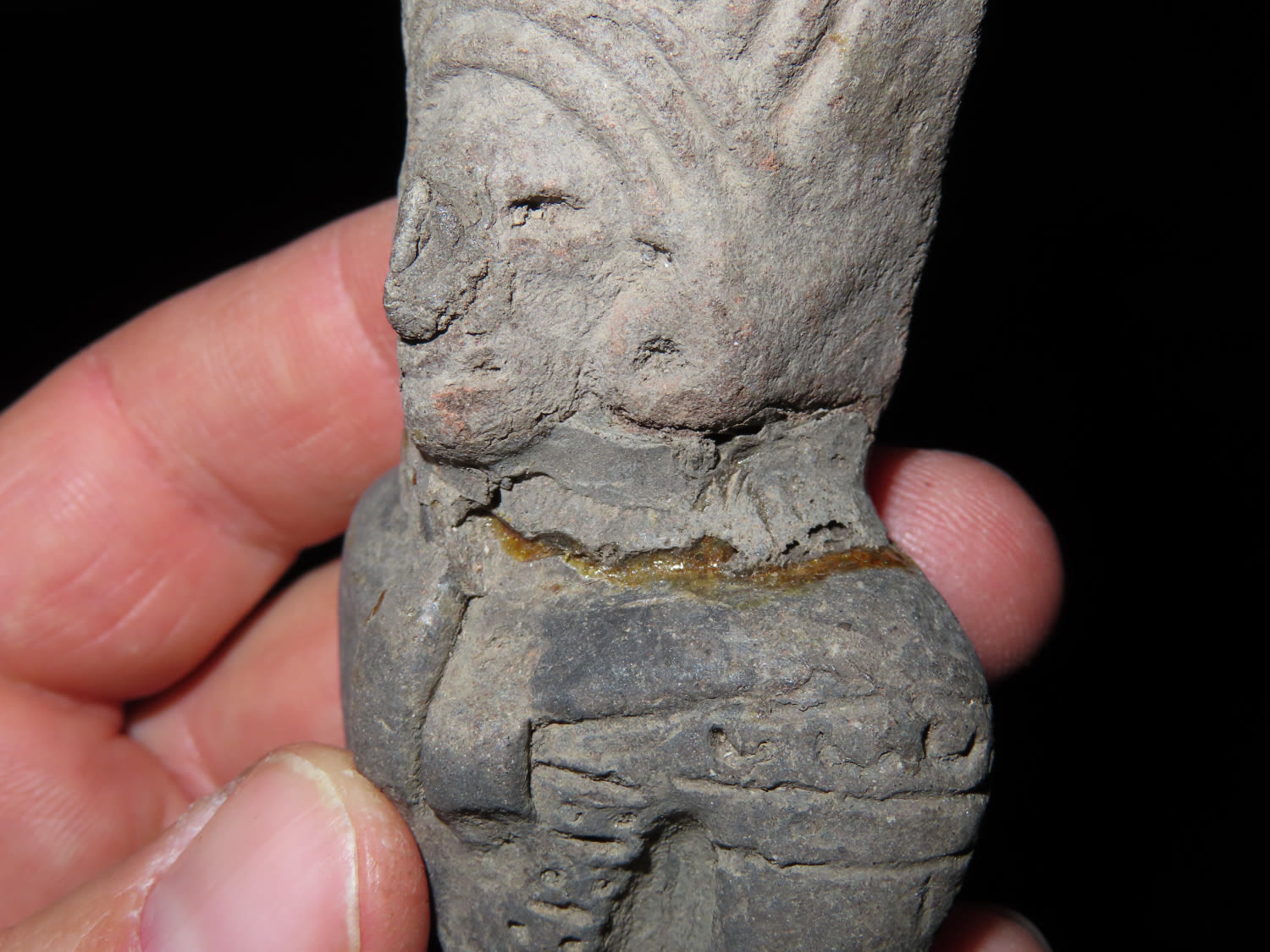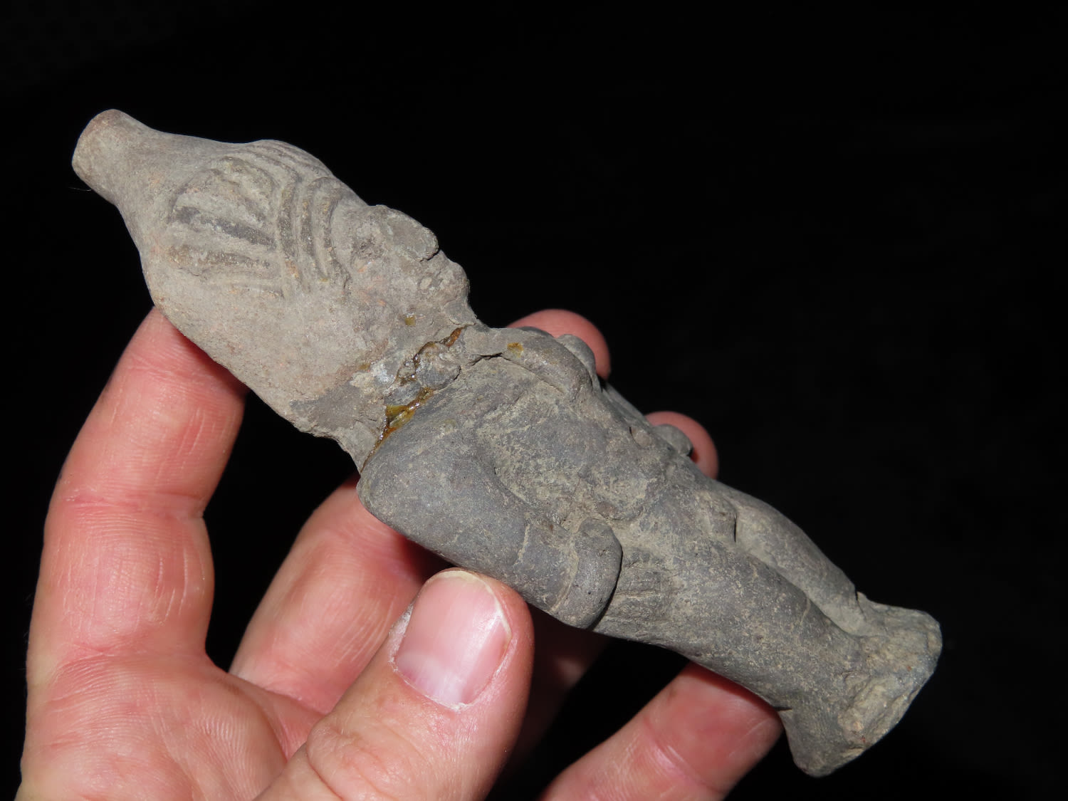 5 1/4″ PRECOLUMBIAN HUMAN EFFIGY FIGURE, STATUE, FROM MEXICO, NICE DETAILED EXAMPLE, BROKEN AND GLUED AT THE NECK