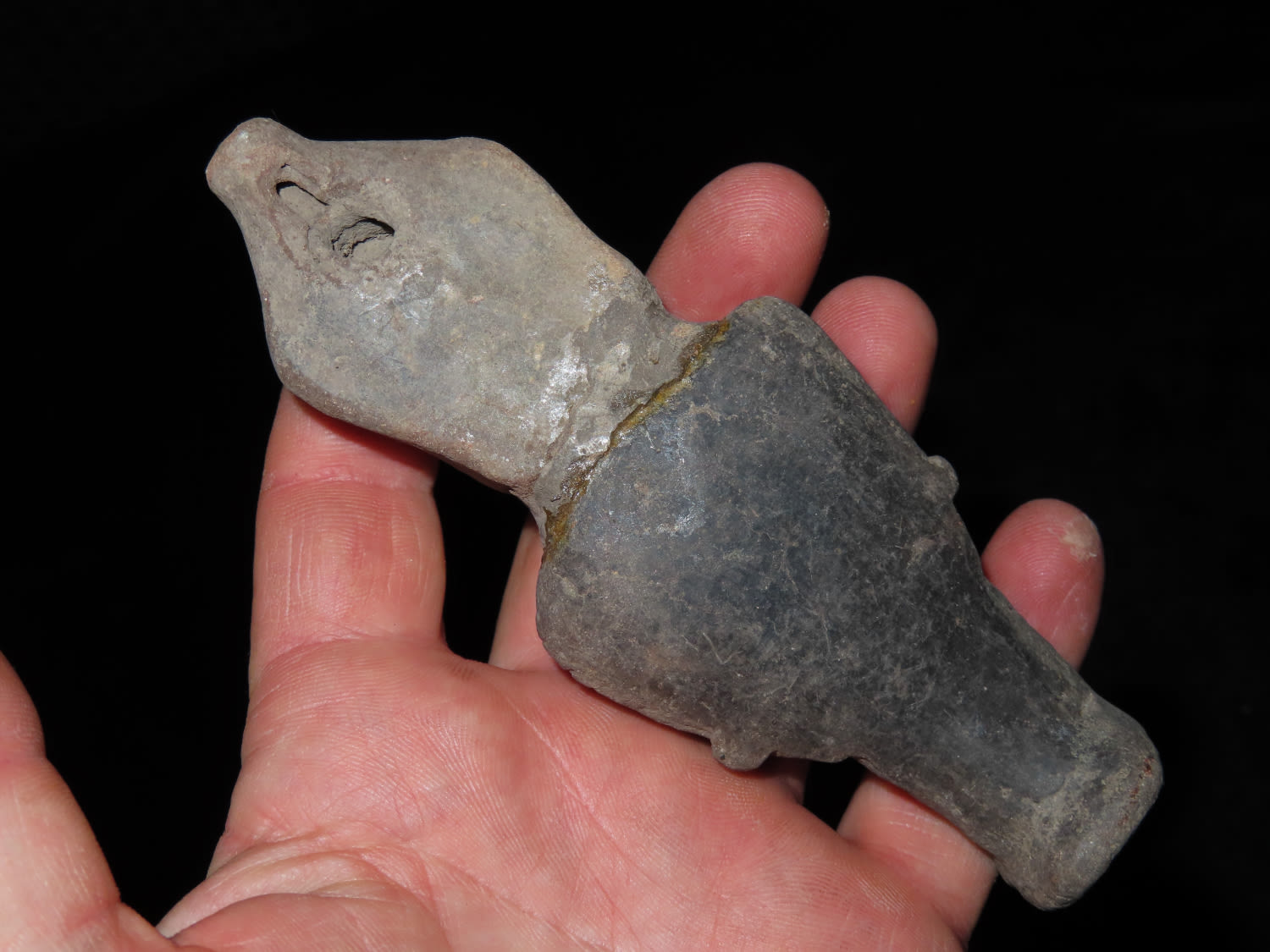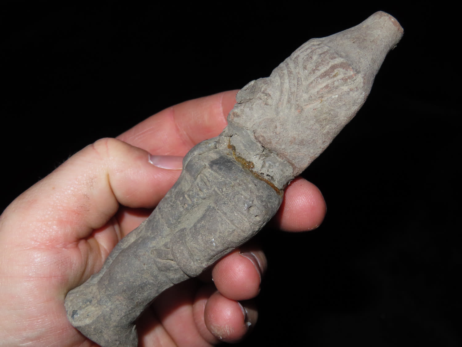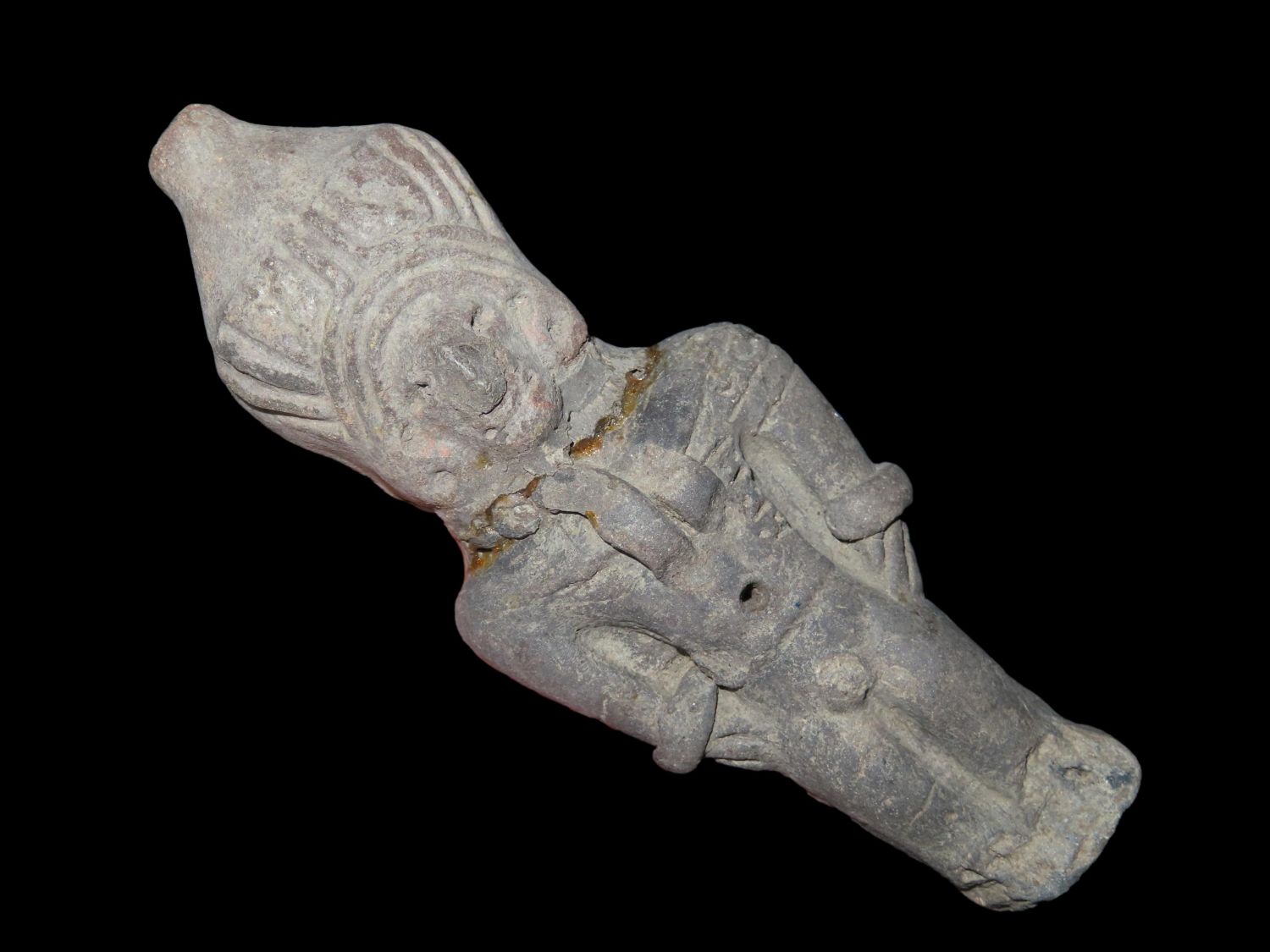 5 1/4″ PRECOLUMBIAN HUMAN EFFIGY FIGURE, STATUE, FROM MEXICO, NICE DETAILED EXAMPLE, BROKEN AND GLUED AT THE NECK