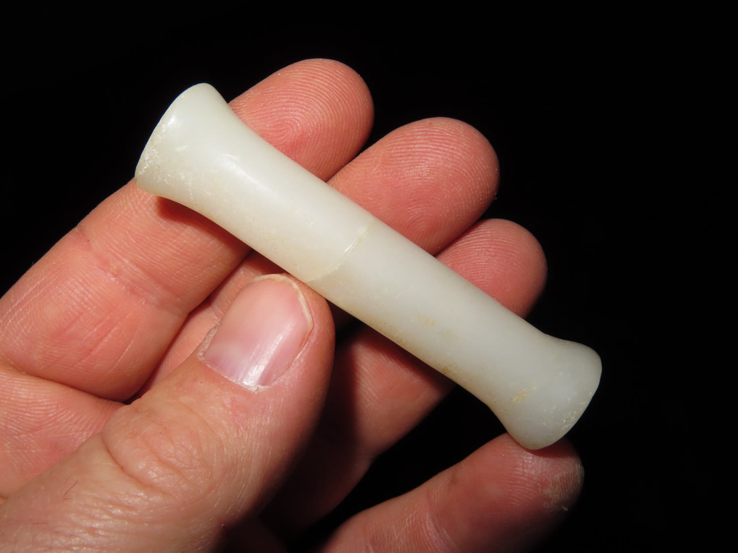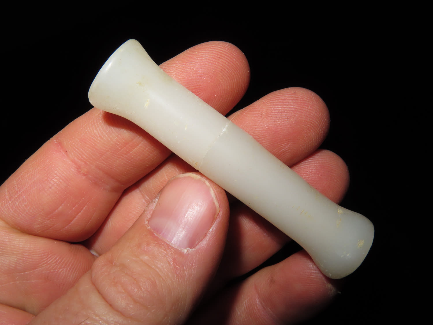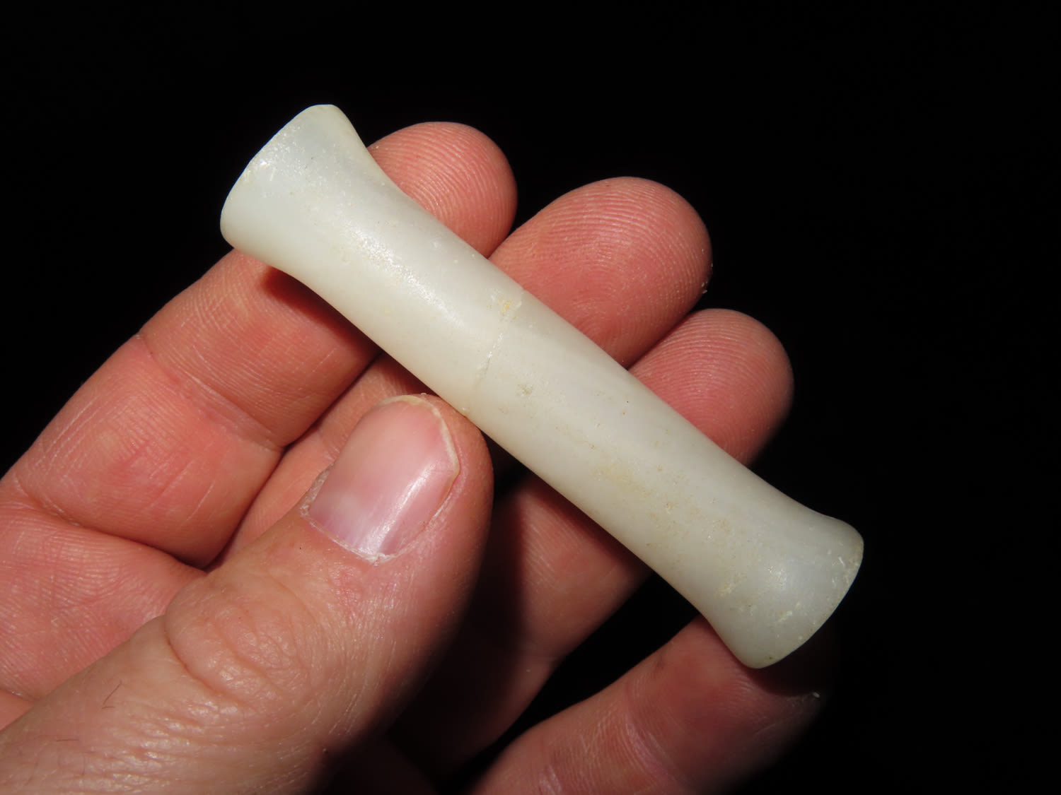 2 9/16" LONG QUARTZ FLARED END TUBE BEAD (BROKEN AND GLUED) GREAT PRECOLUMBIAN ARTIFACT