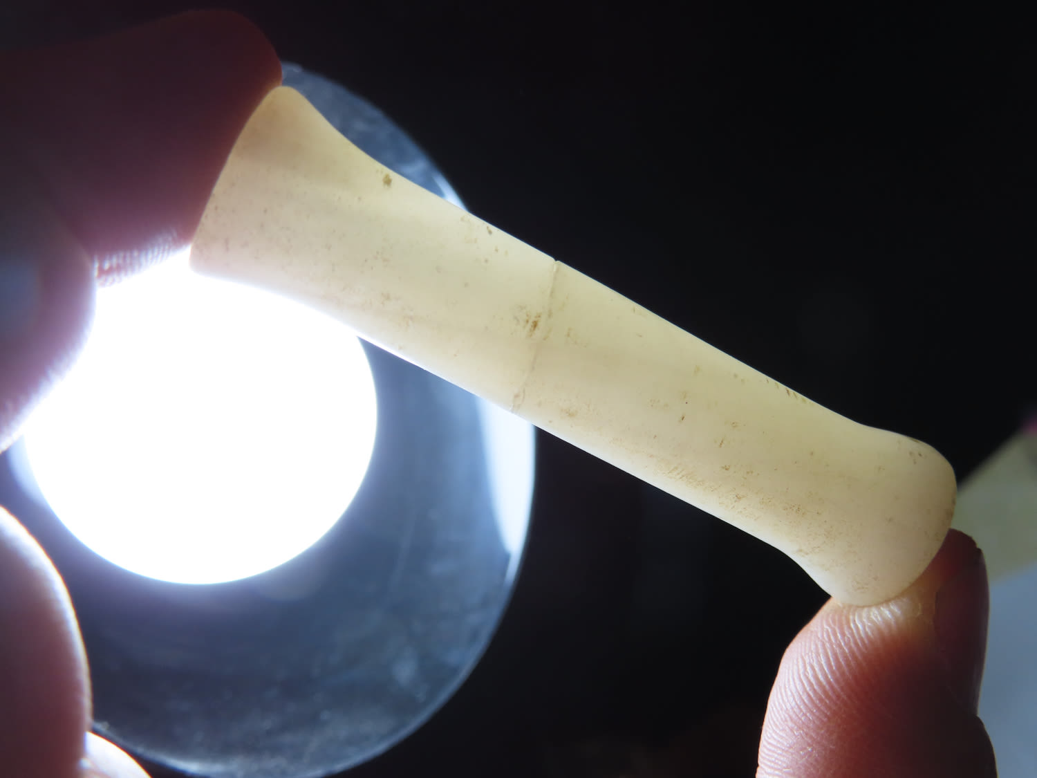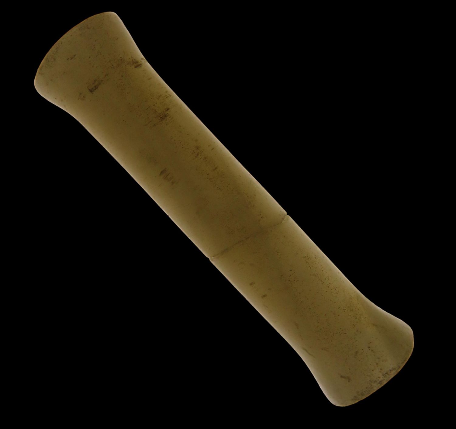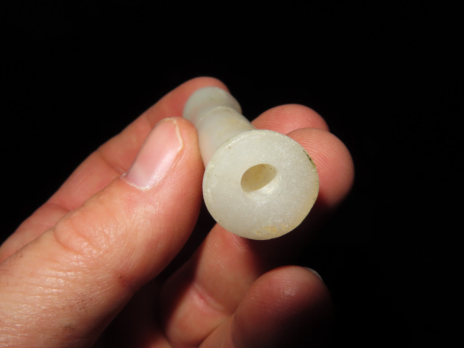 2 9/16" LONG QUARTZ FLARED END TUBE BEAD (BROKEN AND GLUED) GREAT PRECOLUMBIAN ARTIFACT