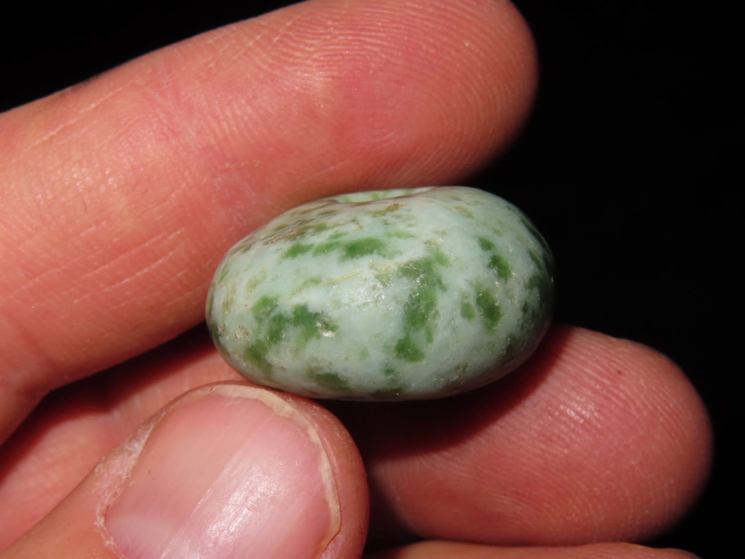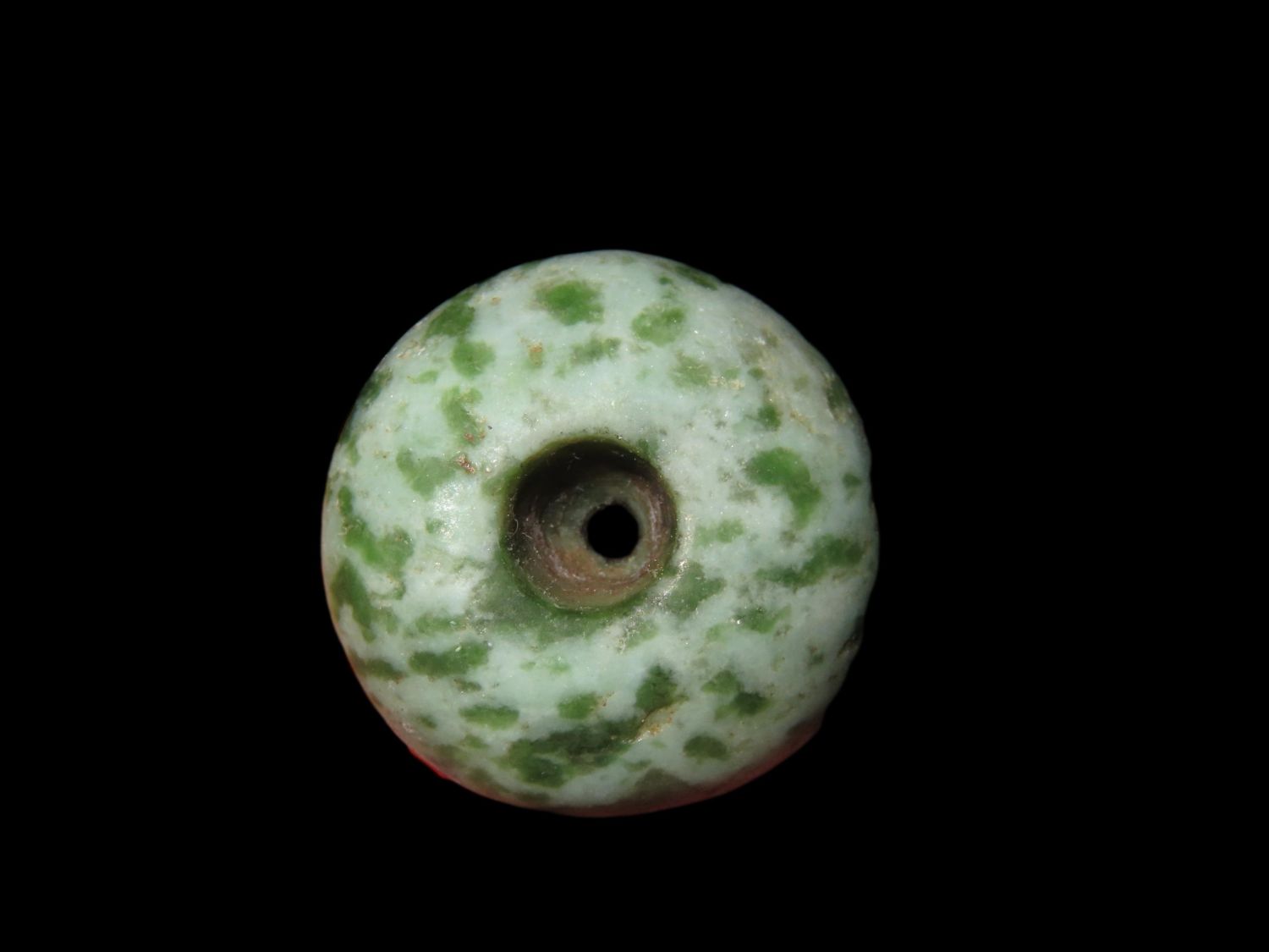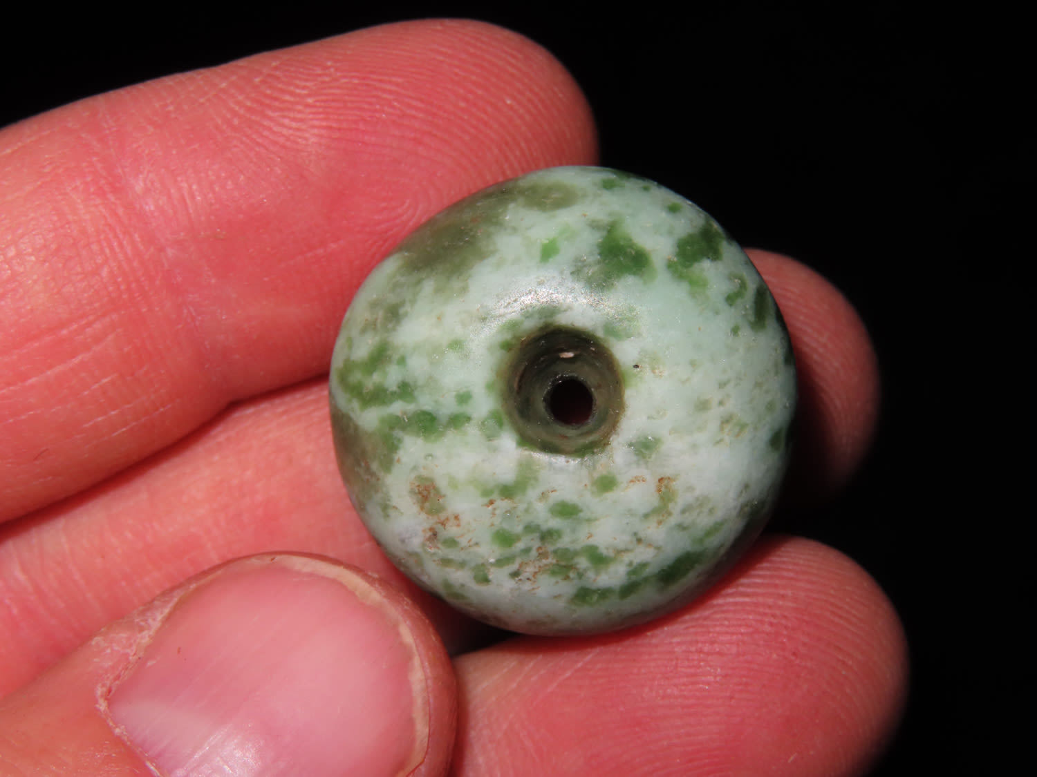 LARGER COLORFUL JADEITE MEZCALA BEAD FROM MEXICO, DRILLED STONE PENDANT WITH GREAT COLOR & NICE POLISH