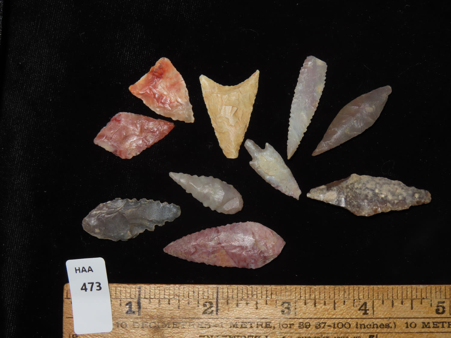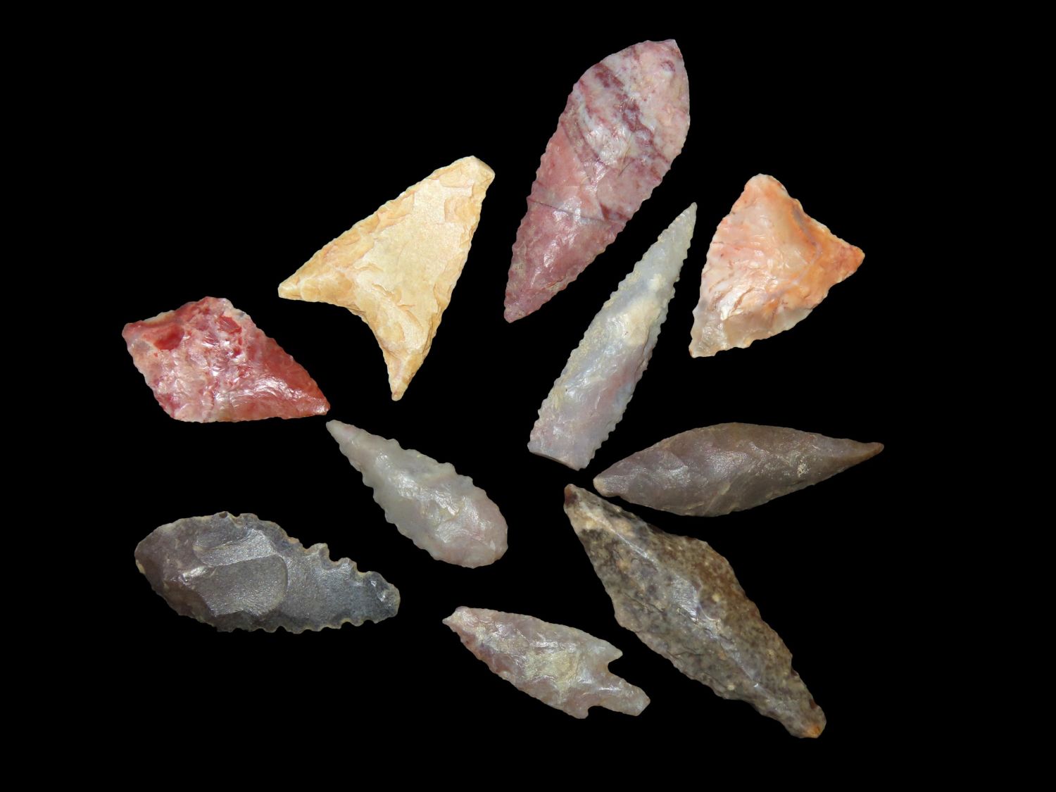 LOT OF 10 AFRICAN NEOLITHIC ARROWHEADS / BIRD POINTS FROM THE SAHARA DESERT, NICE VARIETY OF MATERIALS & STYLES
