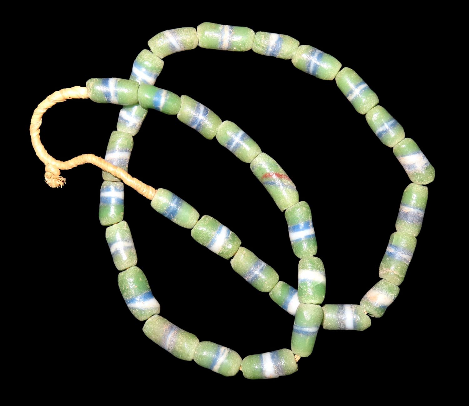 COLORFUL STRAND OF SAND CAST TRADE BEADS FROM AFRICA, GREAT COLOR, NICE NECKLACE OF BEADS