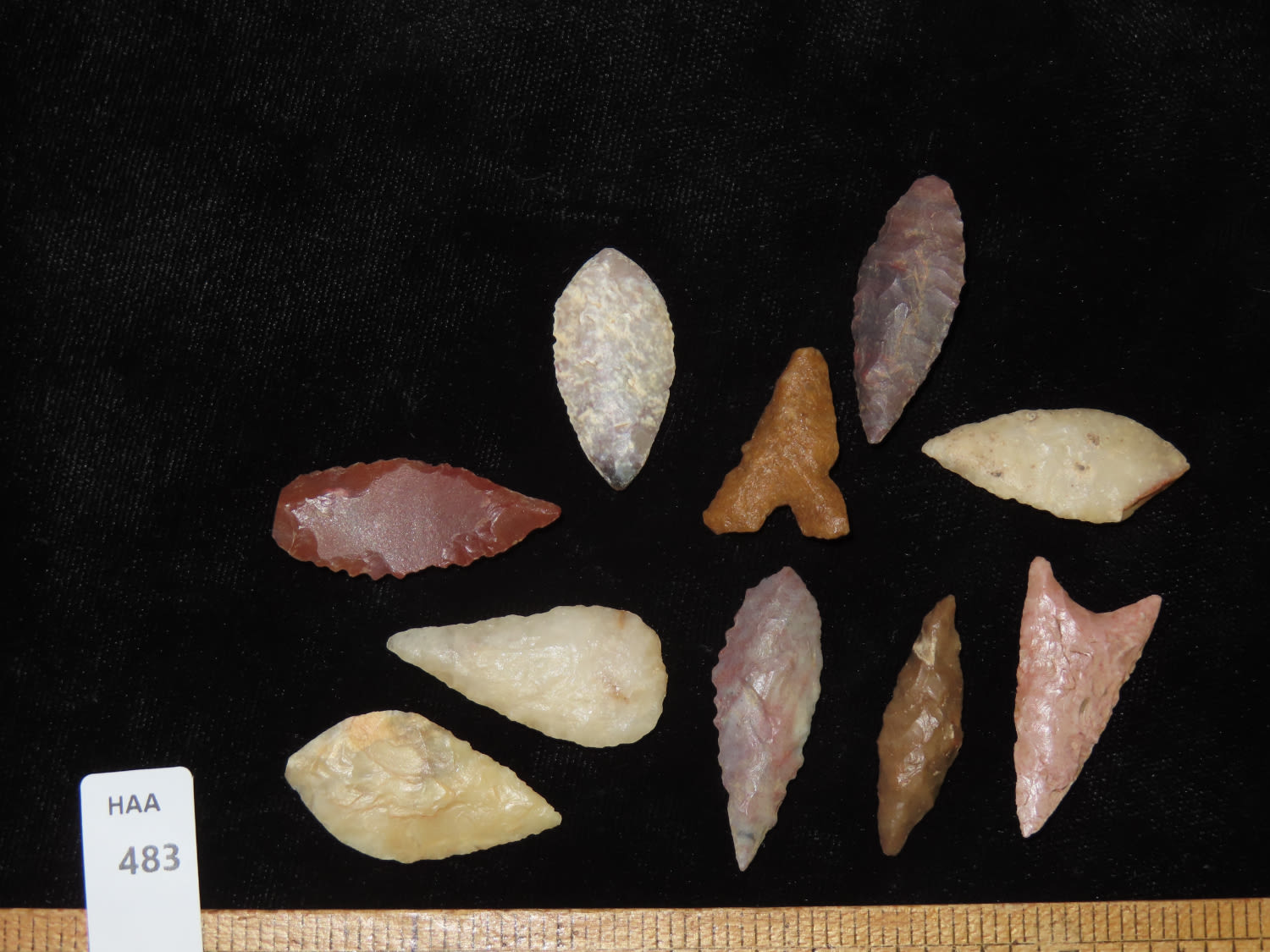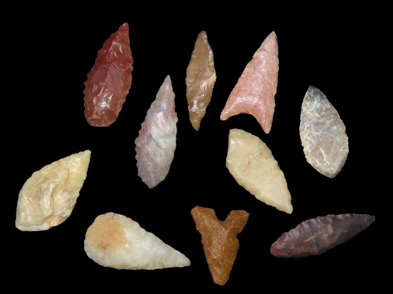 LOT OF 10 AFRICAN NEOLITHIC ARROWHEADS / BIRD POINTS FROM THE SAHARA DESERT, NICE VARIETY OF MATERIALS & STYLES