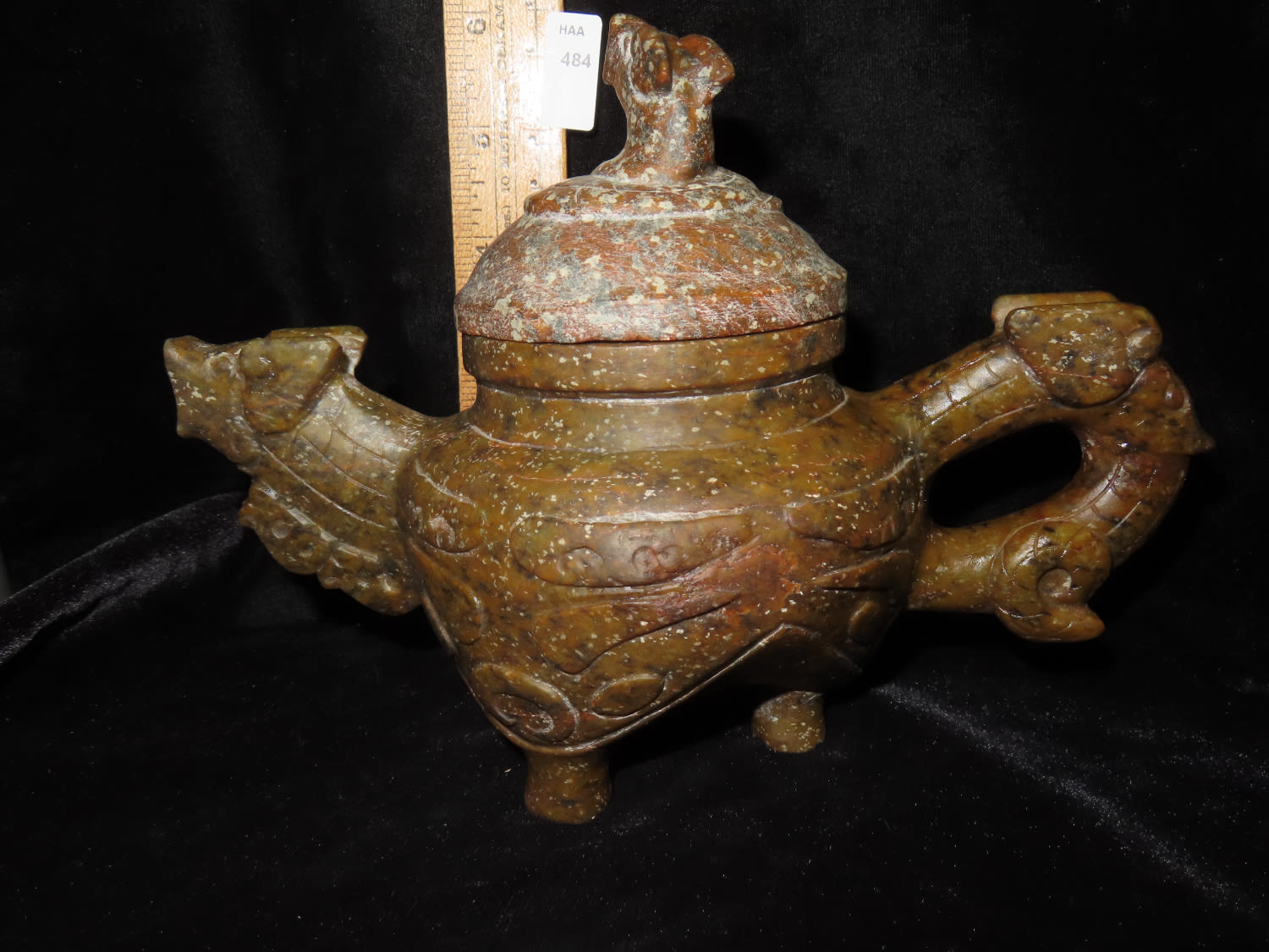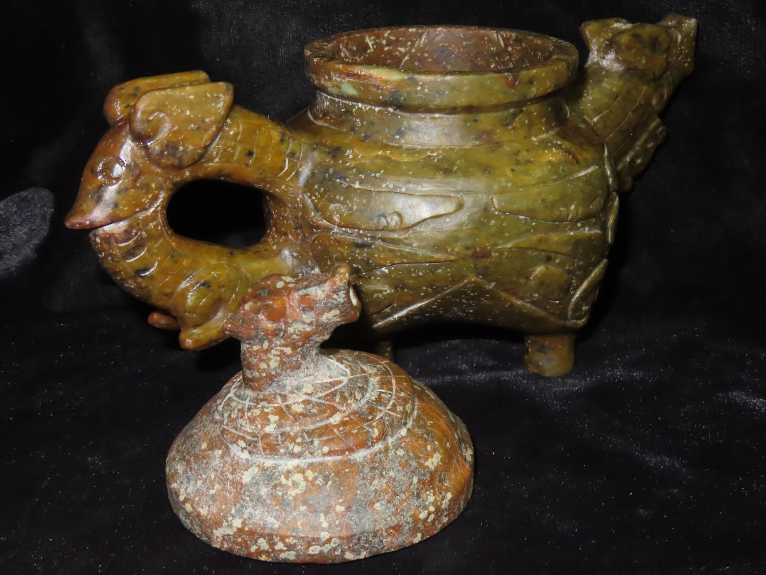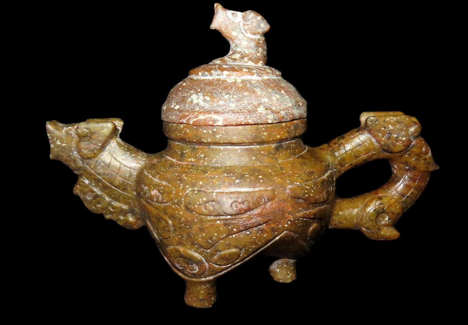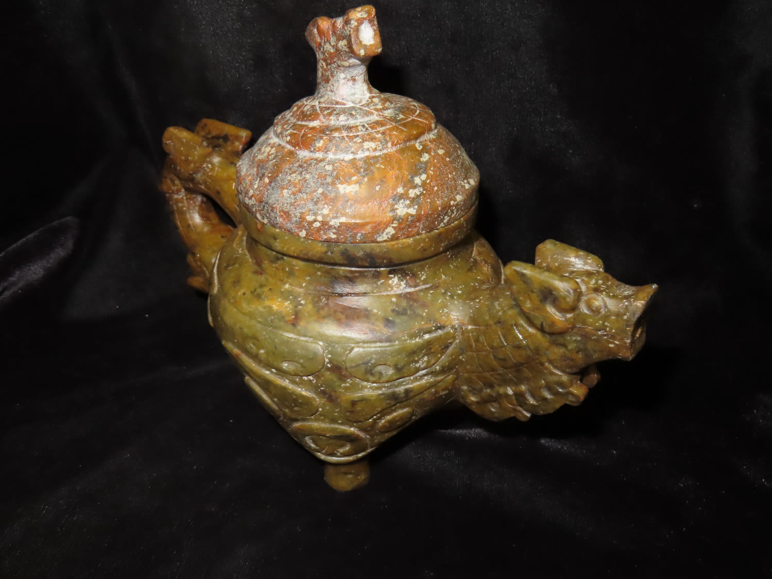 RARE ASIAN / CHINESE CHIN DYNASTY JADE DRAGON EFFIGY WINE VESSEL W/ LID, EX LEE KI PING OF HONG KONG, A DEALER IN CHENSE ART & ARTIFACTS FOR DECADES, COMES WITH A CERTIFACTE OF AUTHENTICITY (COA) FROM THE RELIC ROOM