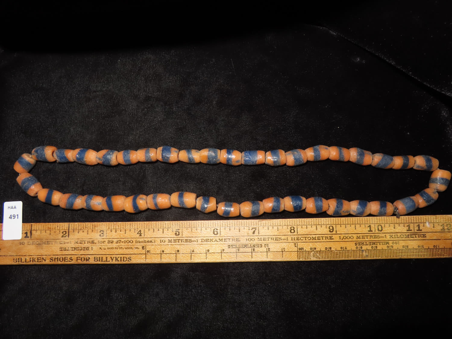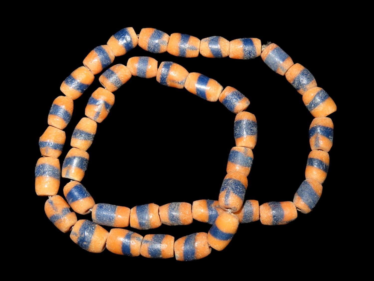 COLORFUL STRAND OF SAND CAST TRADE BEADS FROM AFRICA, GREAT COLOR, NICE NECKLACE OF BEADS