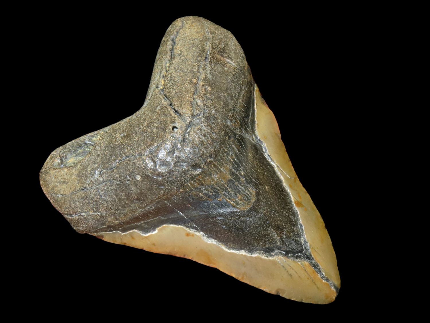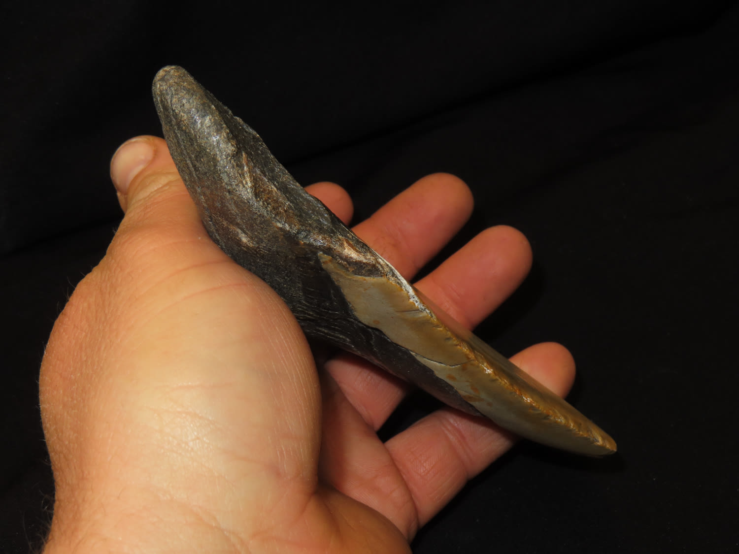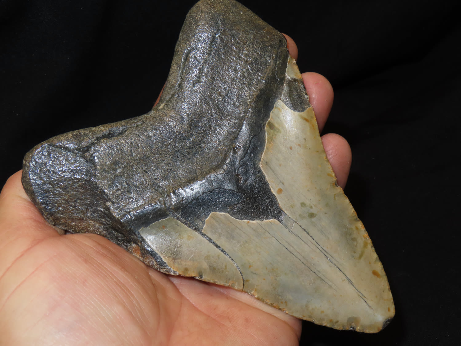 HUGE 5 1/2″ MEGALODON SHARK TOOTH, 23-2.5 MILLION YEAR OLD FOSSIL FOUND OFF THE COAST OF THE CAROLINA’S, NO REPAIR, NO RESTO, NO POLISH