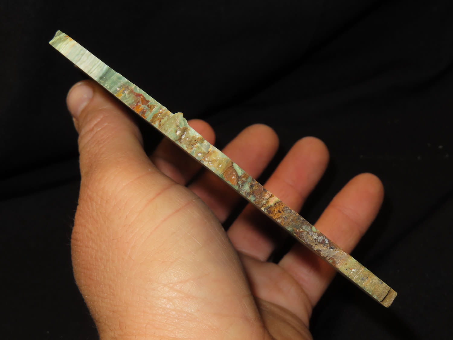 RARE GREEN PETRIFIED BOGWOOD WOOD SLAB, 7 1/2″ AT ITS LONGEST POINT, AMAZING COLOR, FOUND IN OREGON