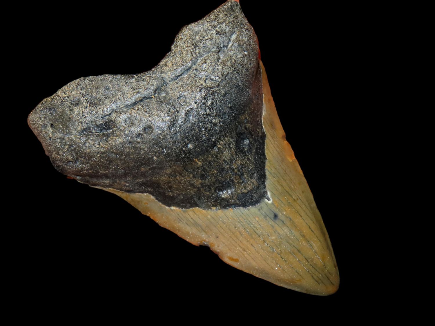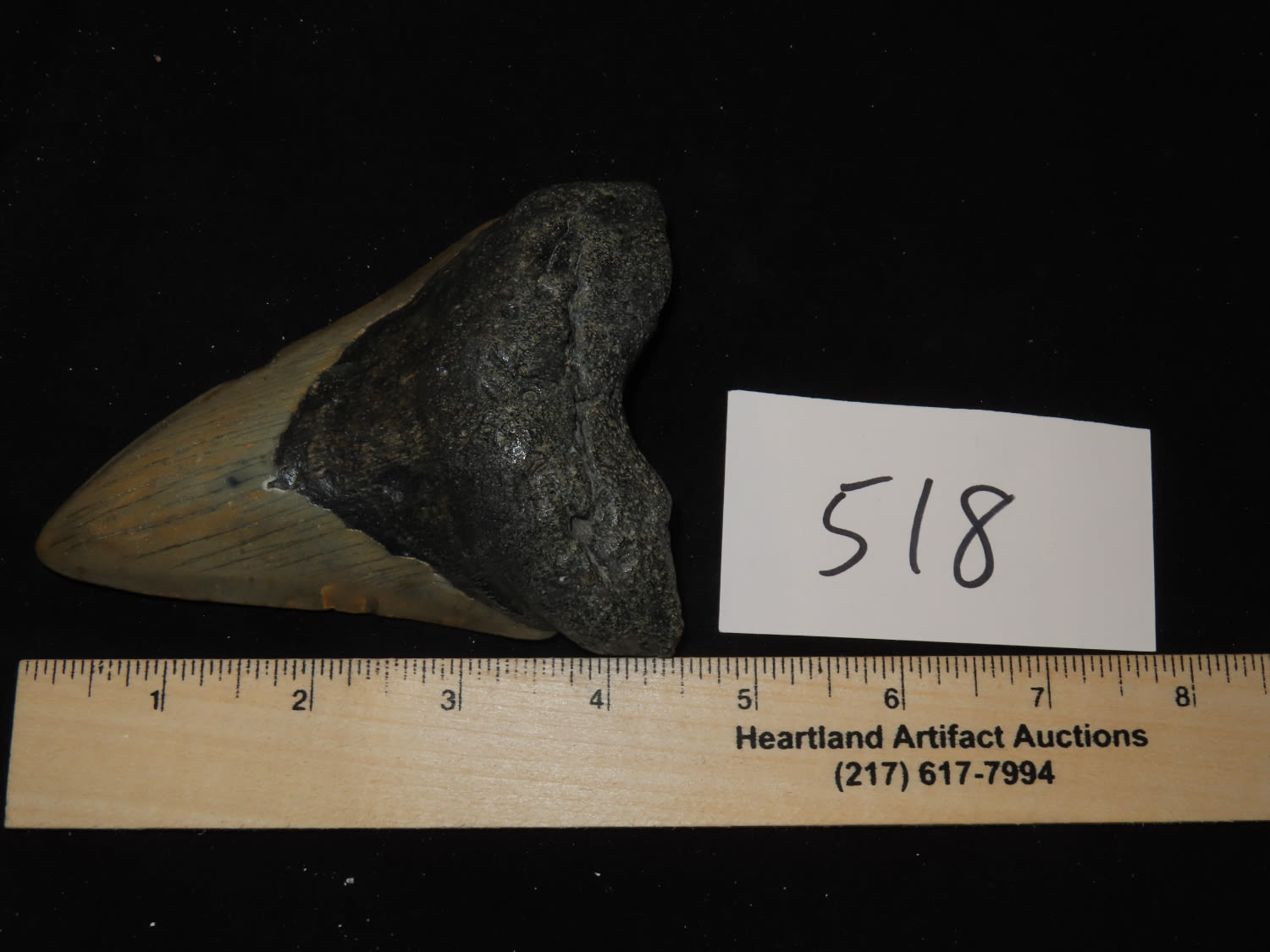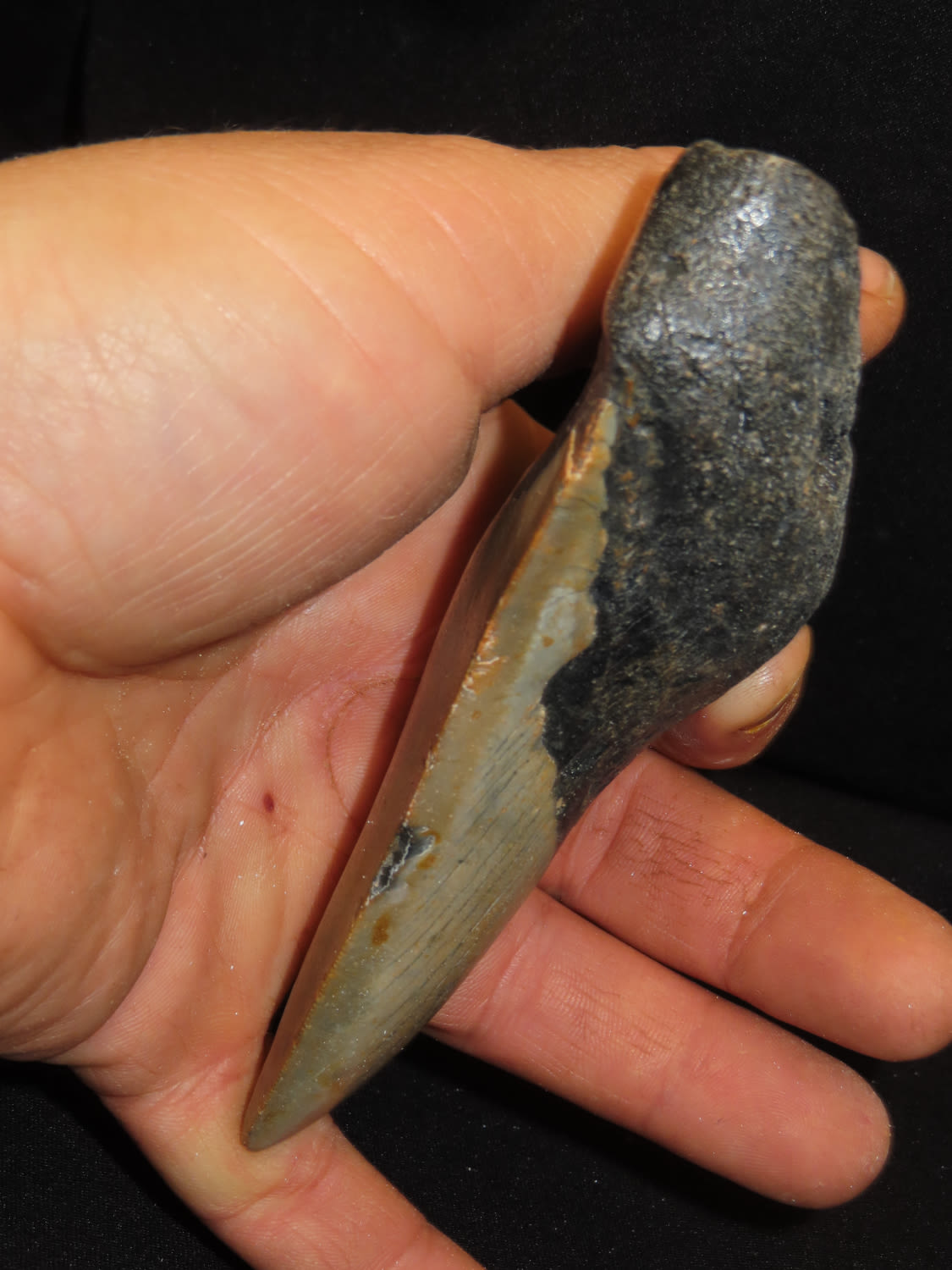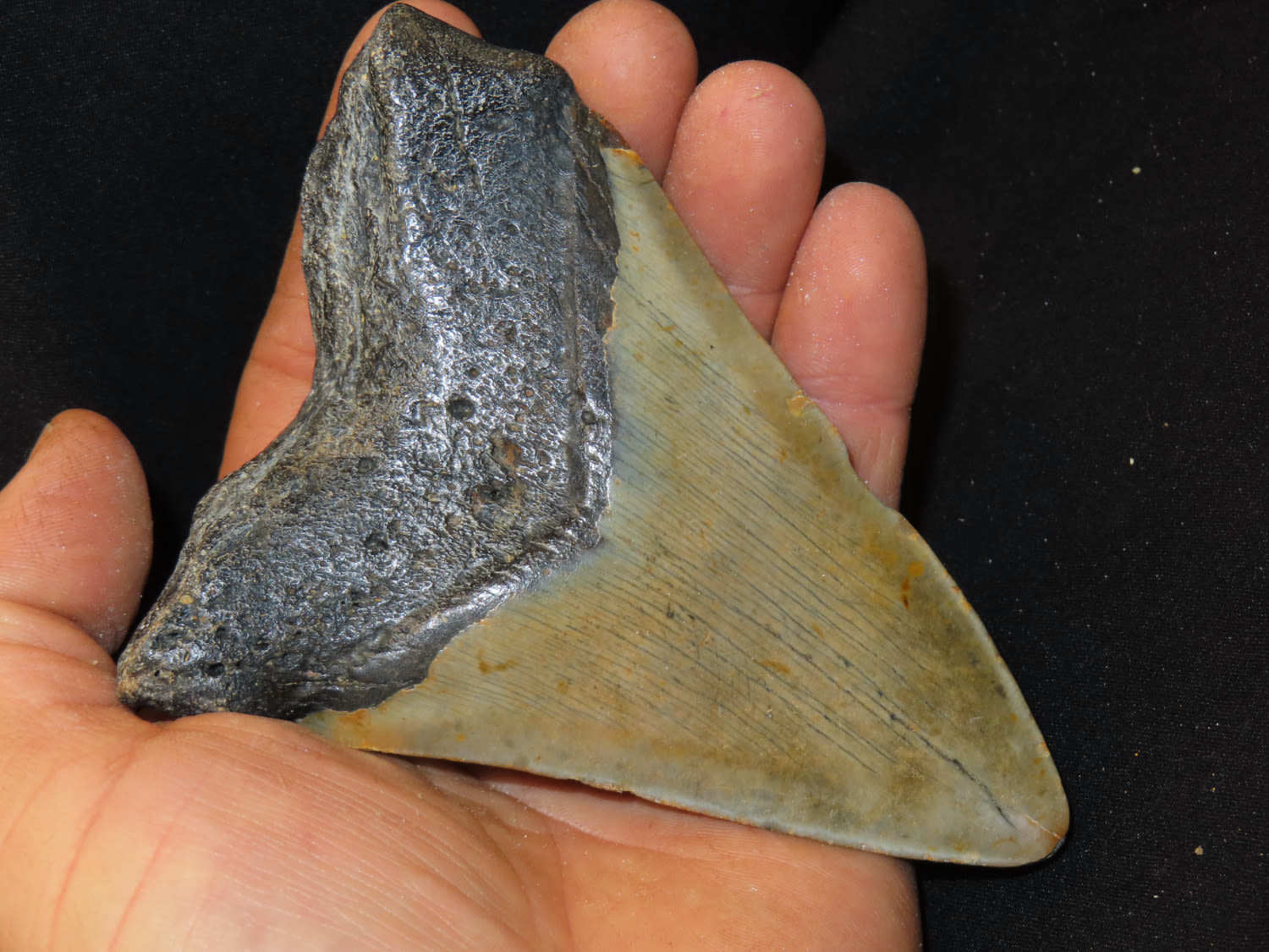 HUGE 5″ MEGALODON SHARK TOOTH, 23-2.5 MILLION YEAR OLD FOSSIL FOUND OFF THE COAST OF THE CAROLINA’S, NO REPAIR, NO RESTO, NO POLISH
