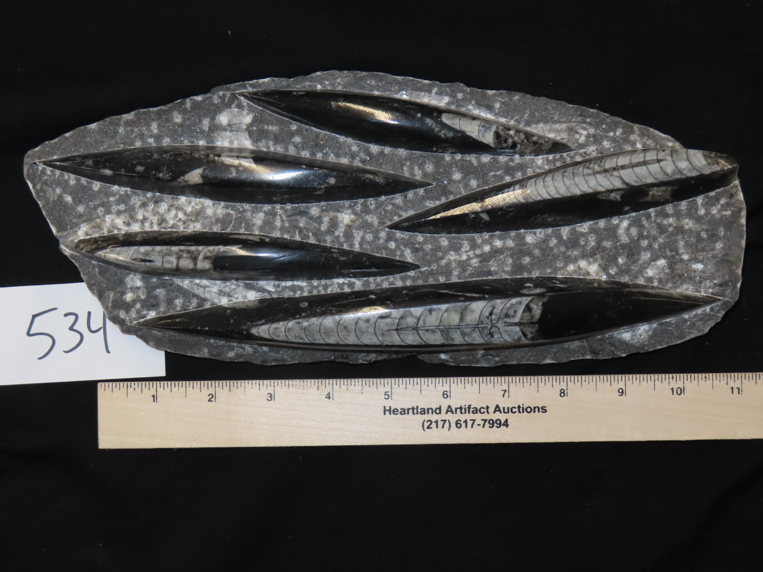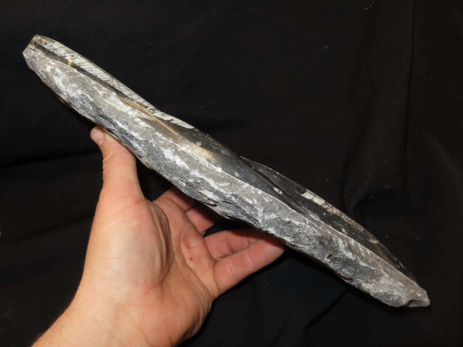 MASSIVE 12 1/4″ ORTHOCERAS DISPLAY IN MATRIX, 500-200 MILLION YEARS OLD, FROM THE TRIASIC PERIOD, GREAT LARGE EXAMPLE THAT DISPLAYS WELL
