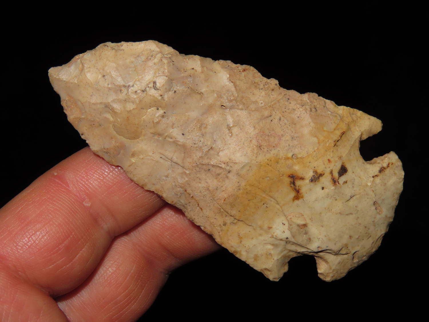 3 1/4″ COLORFUL FERRY POINT FOUND IN BOONE COUNTY MISSOURI, NICE EXAMPLE, INDIAN ARROWHEAD ARTIFACT