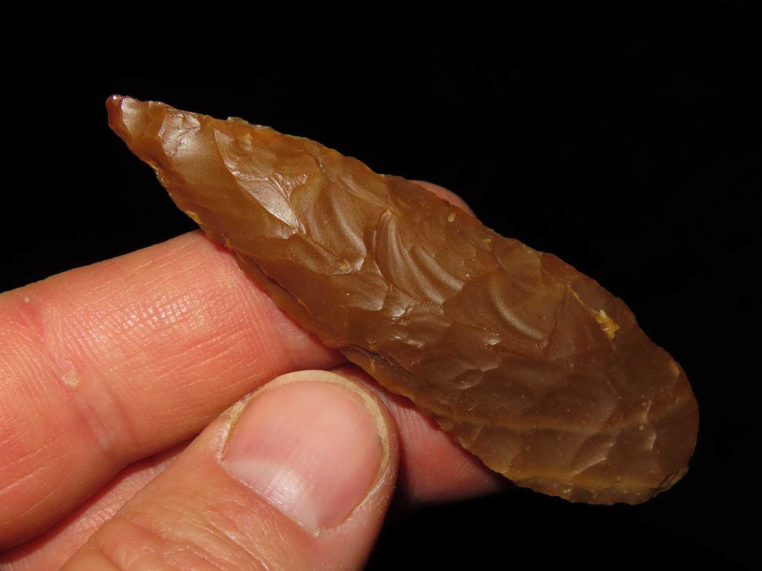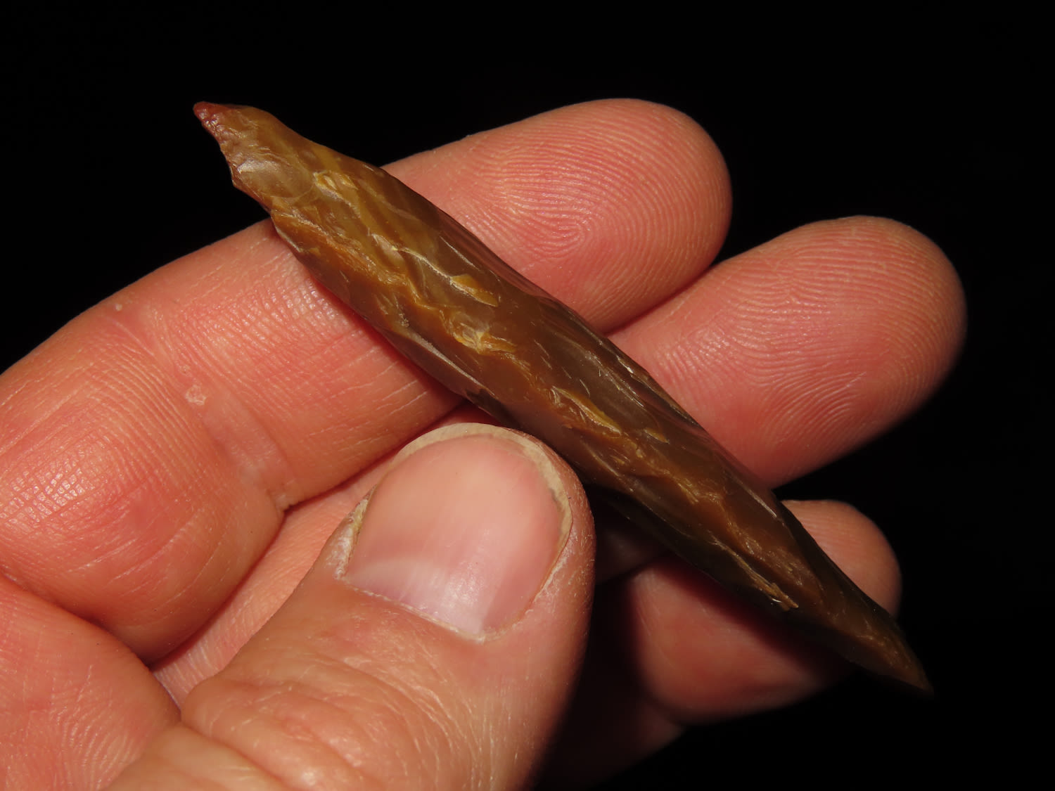 2 3/4″ OVOID KNIFE FOUND IN WYOMING, NICE TRANSLUCENT AGATE, HIGH PLAINS INDIAN ARROWHEAD ARTIFACT
