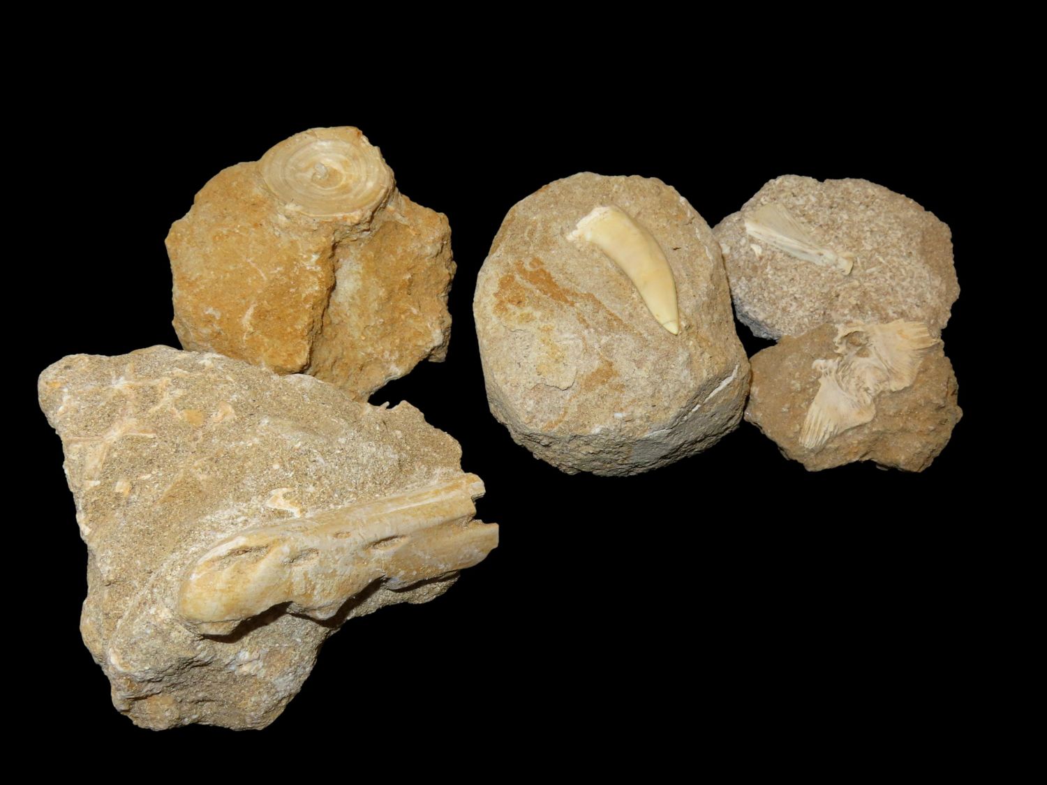LOT OF DINOSAUR ERA FOSSILS IN MATRIX FROM MOROCCO, PALEOCENE TO MIOCENE AGE, 66 MILLION TO 5 MILLION YEARS OLD