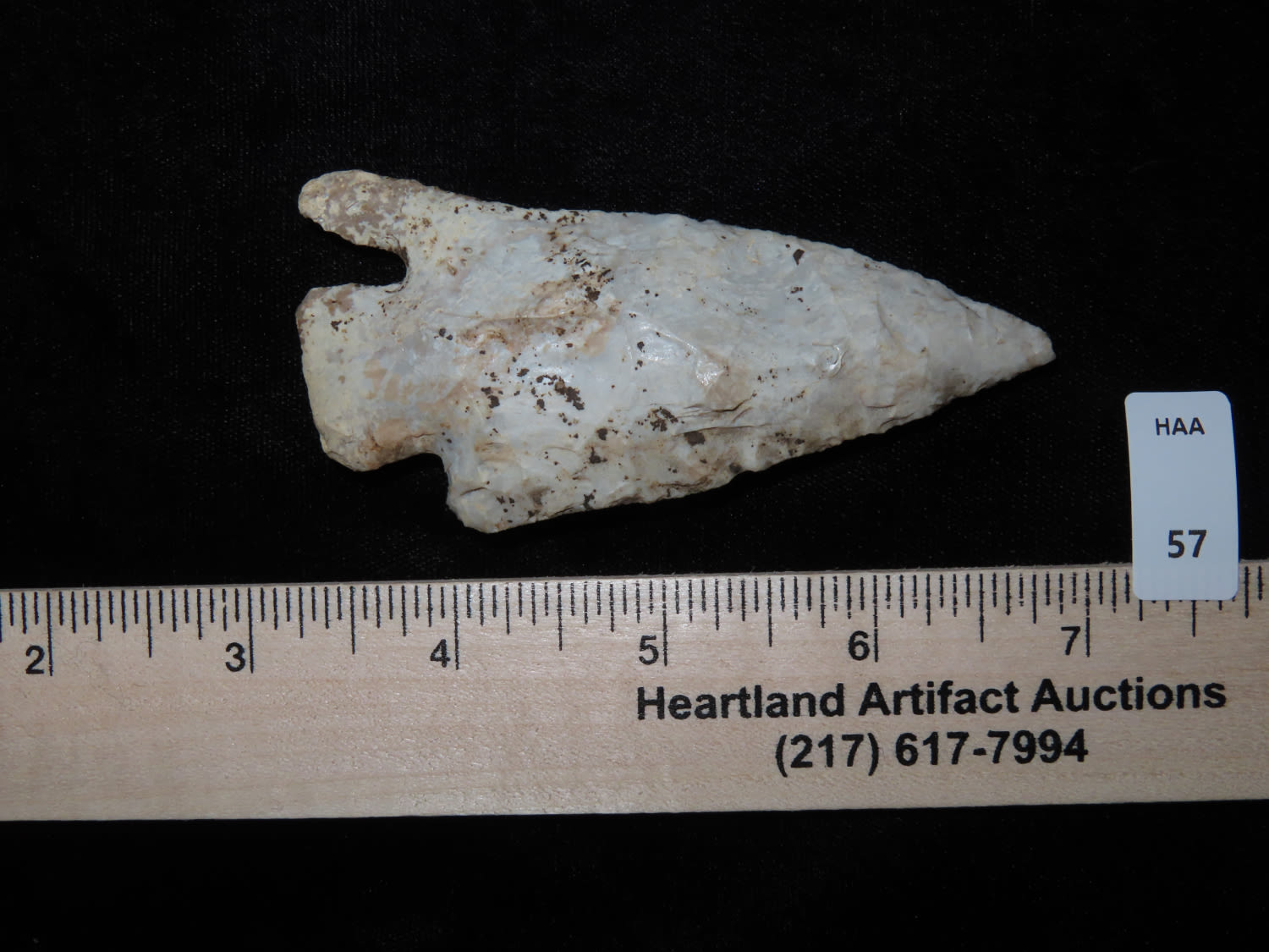 3 5/8″ SMITH FOUND IN MILLER COUNTY MISSOURI, NICE CLASSIC EXAMPLE, INDIAN ARROWHEAD ARTIFACT