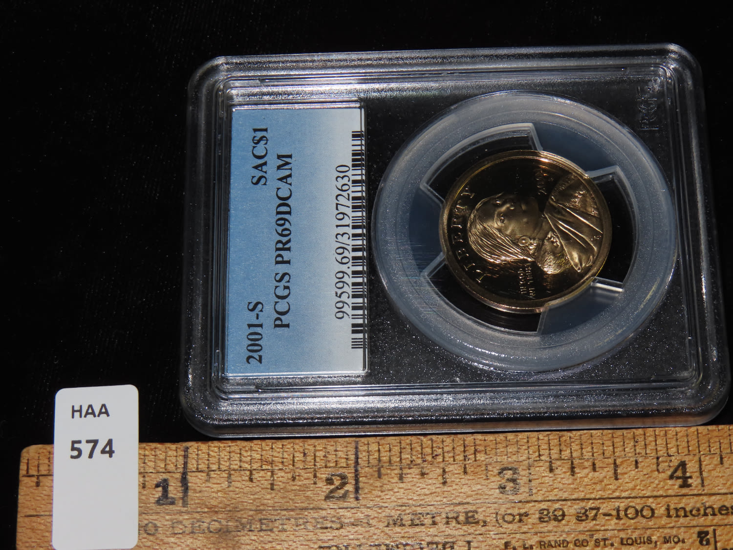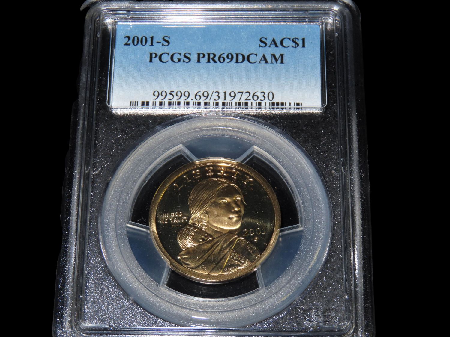 PCGS PROOF 69 DEEP CAMEO SACAGAWEA $1 COIN, 2001-S, SAN FRANSISCO MINT, VERY HIGH GRADE