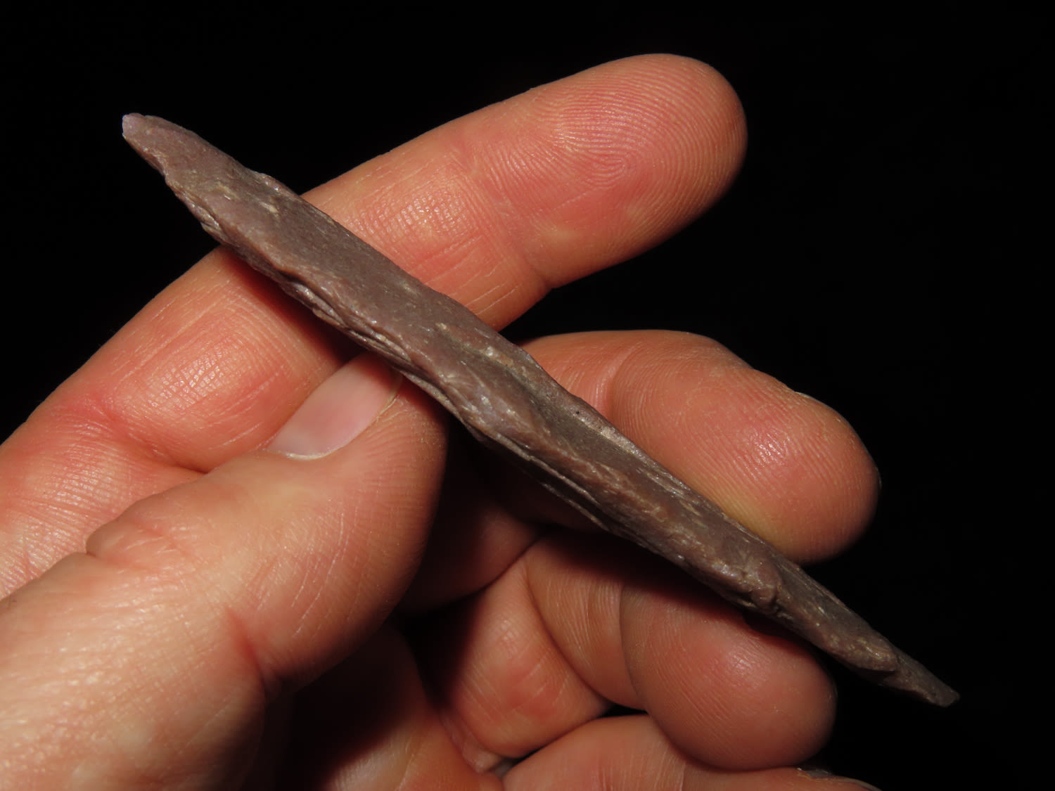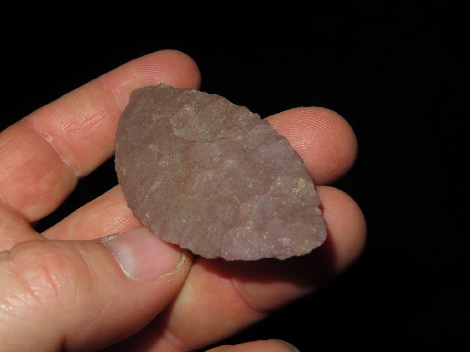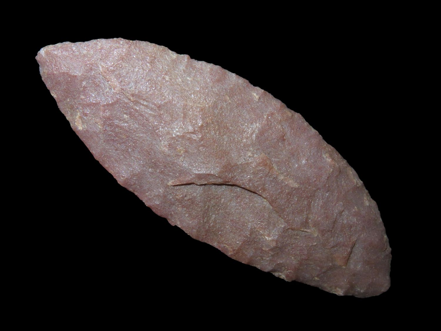 3 5/16″ INCREDIBLE SPANISH DIGGINGS QUARTZITE EARLY OVIOD KNIFE FOUND IN WELD COUNTY COLORADO, VERY THIN AND WELL FLAKED EXAMPLE