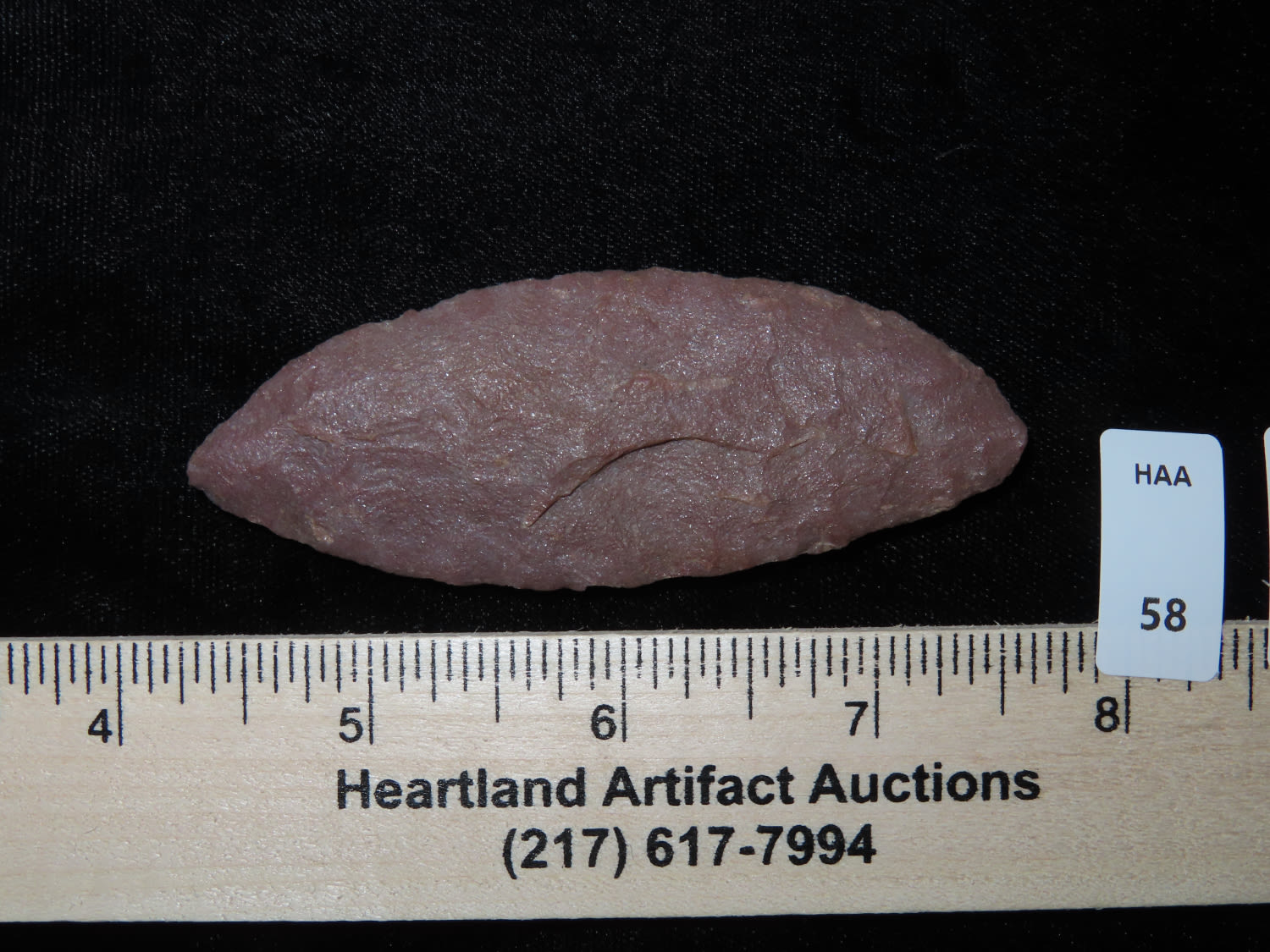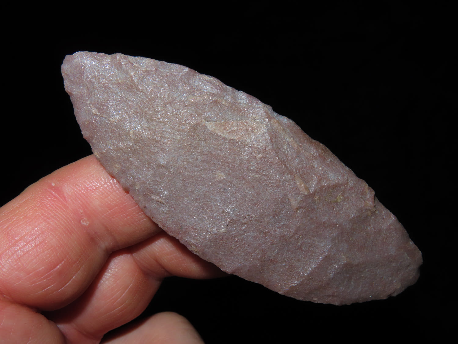 3 5/16" INCREDIBLE SPANISH DIGGINGS QUARTZITE EARLY OVIOD KNIFE FOUND IN WELD COUNTY COLORADO, VERY THIN AND WELL FLAKED EXAMPLE