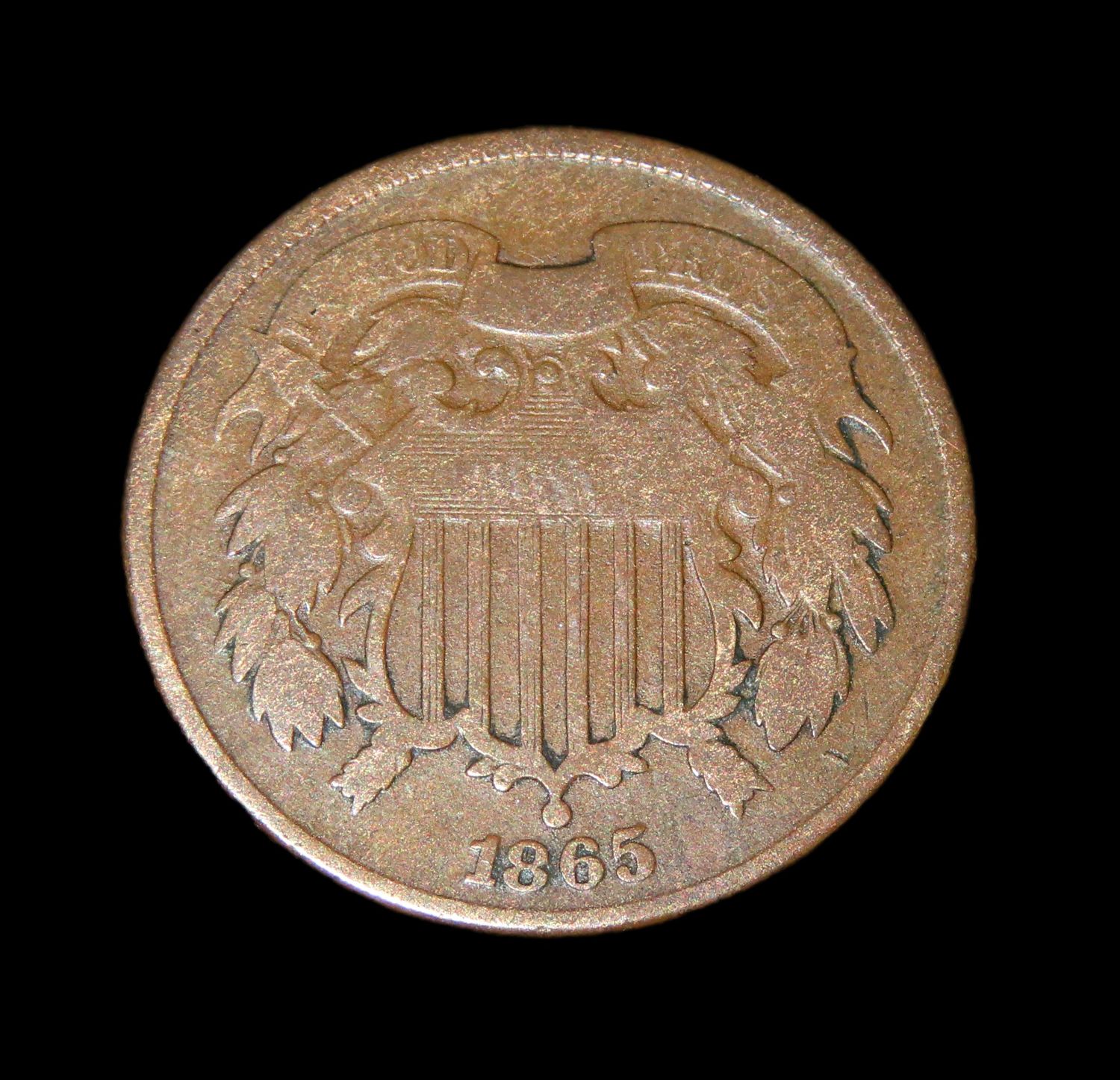 1865 CIVIL WAR ERA TWO CENT COIN, GREAT CONDITION, OBSOLETE 2 CENT UNITED STATES COIN