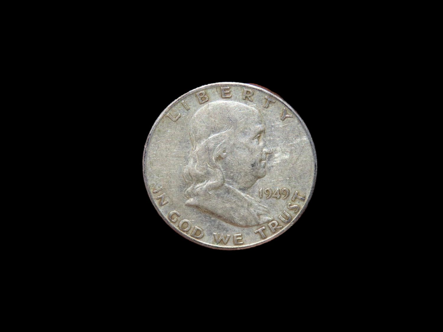 1949-S FRANKLIN SILVER HALF DOLLAR, BEAUTIFUL HIGHER GRADE EXAMPLE FROM THE SAN FRANSISCO MINT, EARLY US SILVER COIN