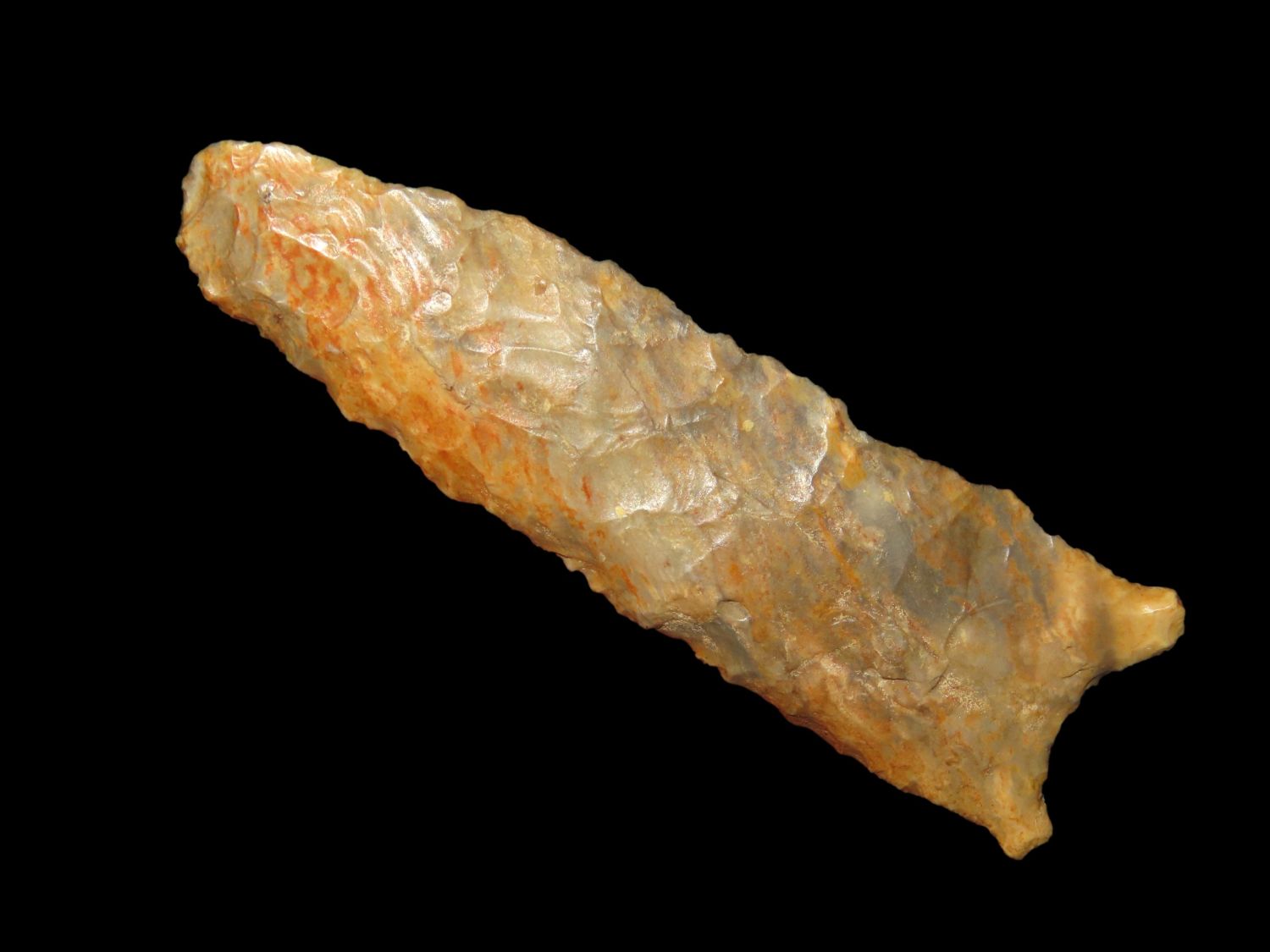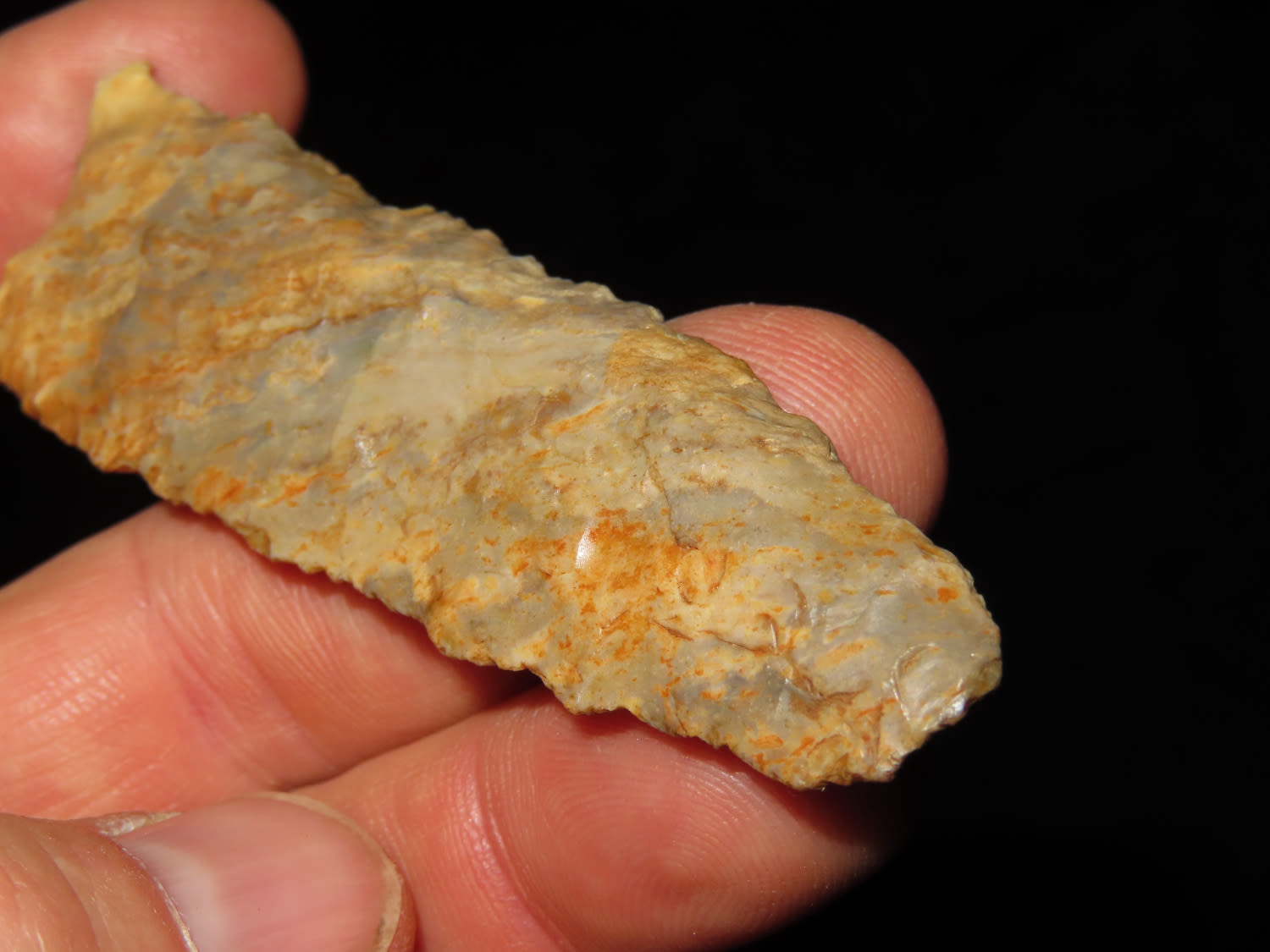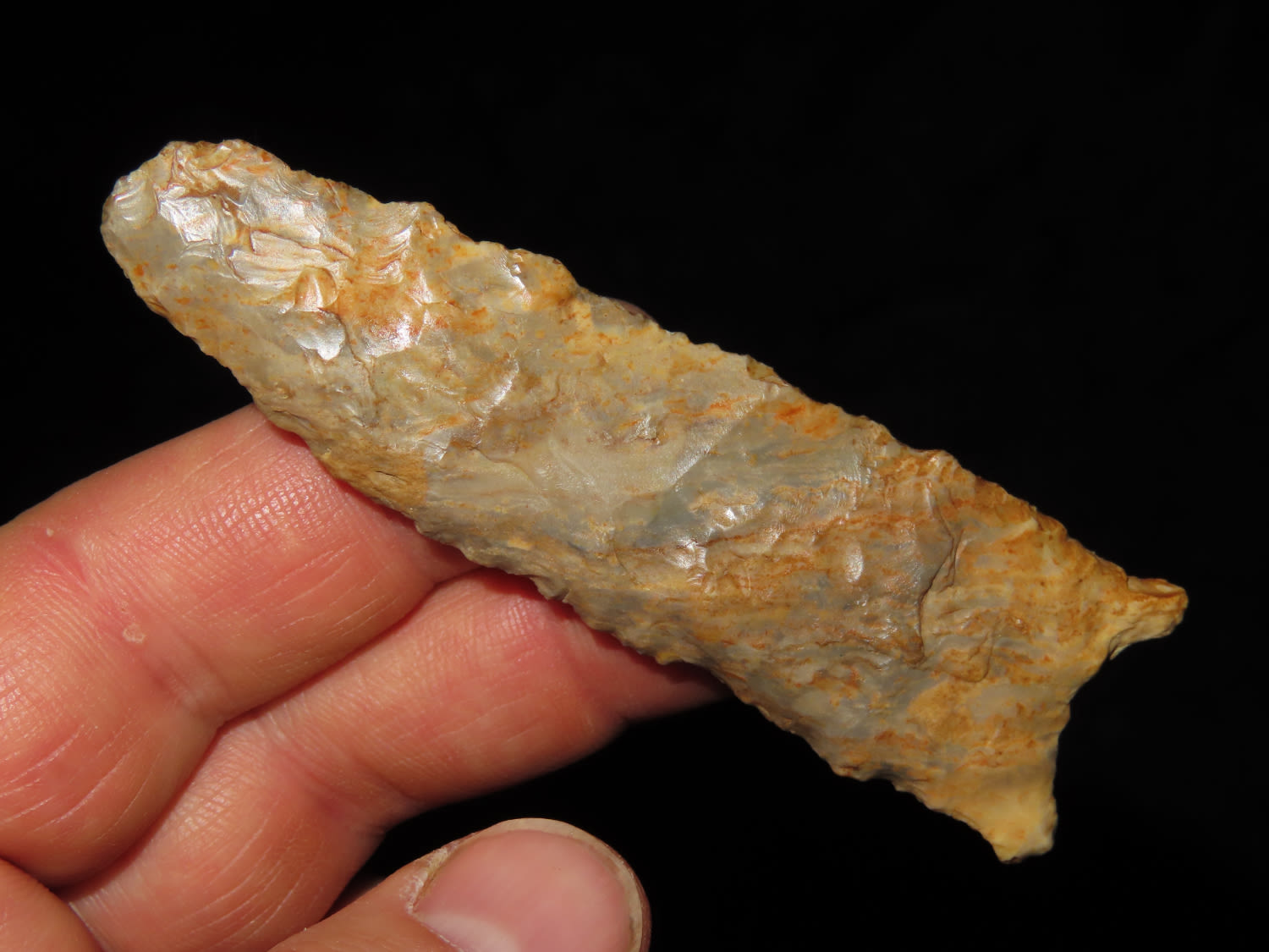 3 5/15" COLORFUL DALTON FOUND IN COOPER COUNTY MISSOURI, NICE THIN EXAMPLE, INDIAN ARROWHEAD ARTIFACT