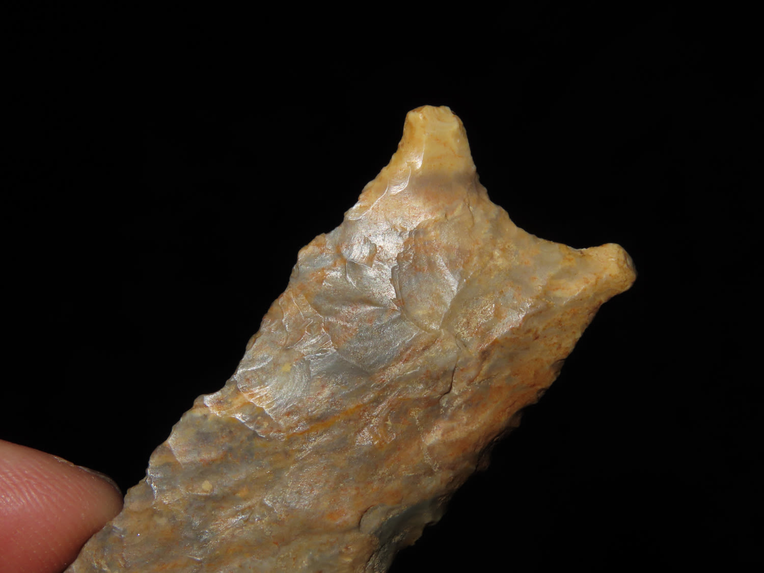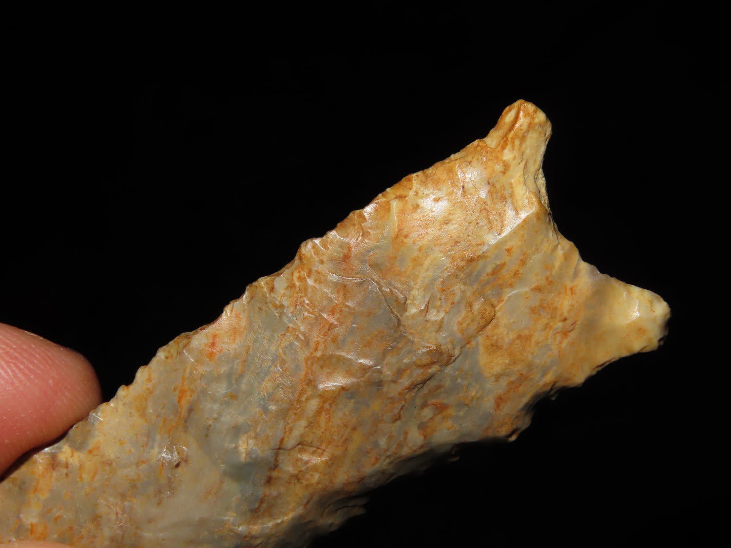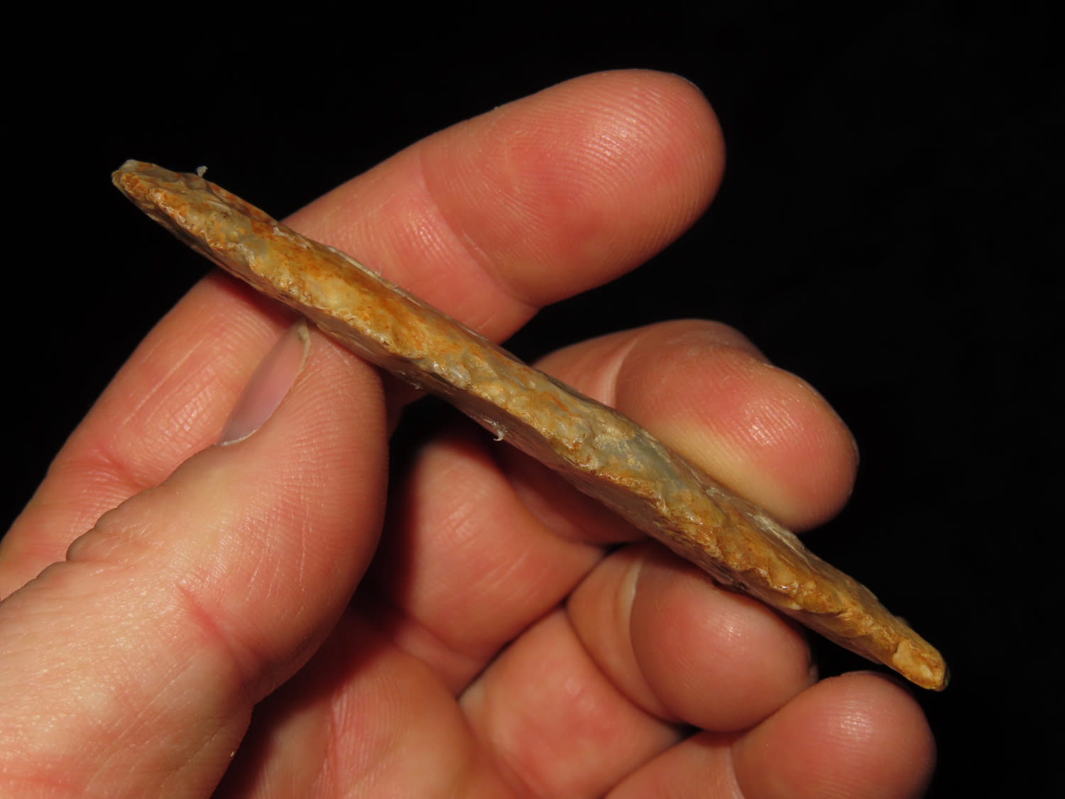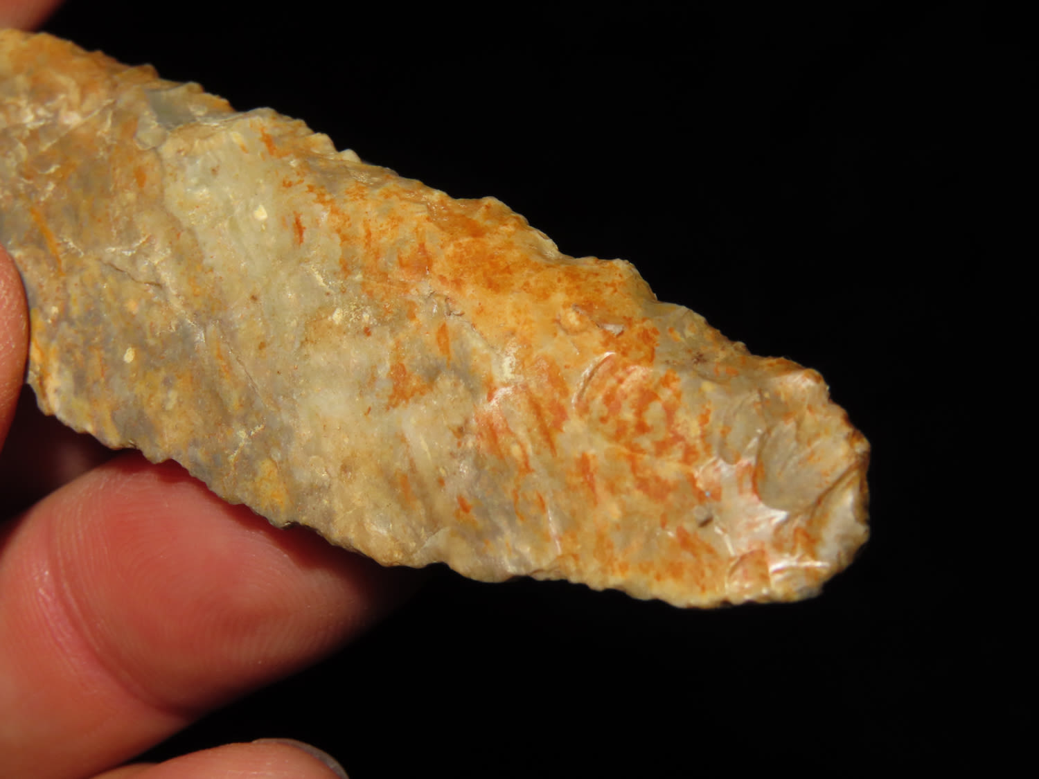 3 5/15" COLORFUL DALTON FOUND IN COOPER COUNTY MISSOURI, NICE THIN EXAMPLE, INDIAN ARROWHEAD ARTIFACT