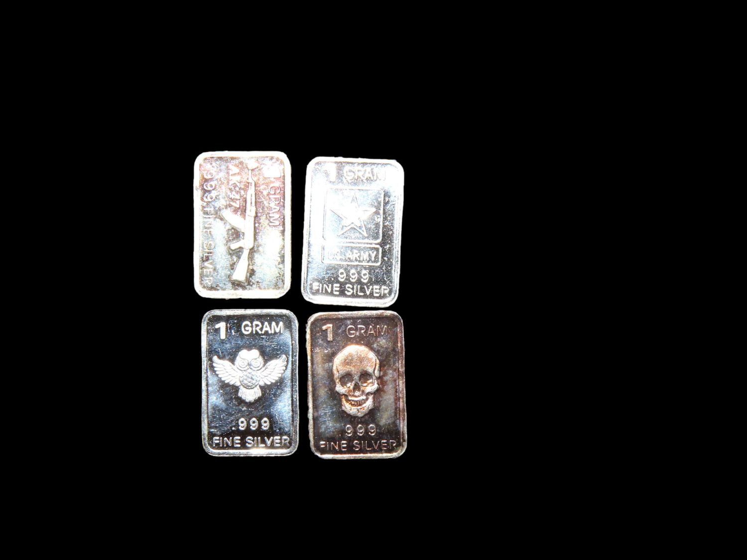 LOT OF 4 MINI SOLID SILVER BARS, 1 GRAM EACH, SILVER BULLION