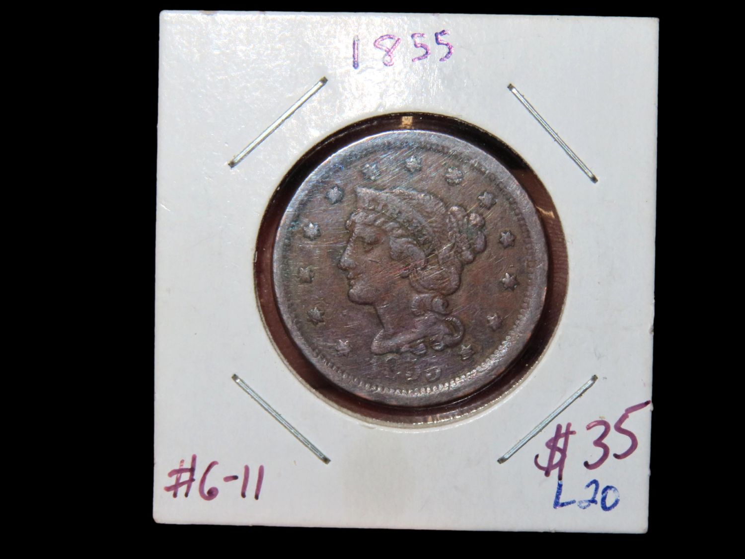 1855 HIGH GRADE LARGE CENT, EXCELLENT ORIGINAL DETAILS, GREAT PIECE OF AMERICAN HISTORY