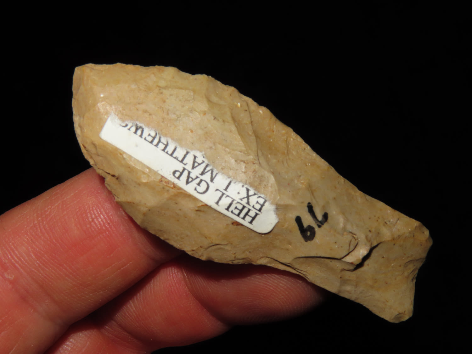 2 1/2″ PALEO HELL GAP FOUND IN LINCOLN COUNTY COLORADO, INDIAN ARROWHEAD, ARTIFACT