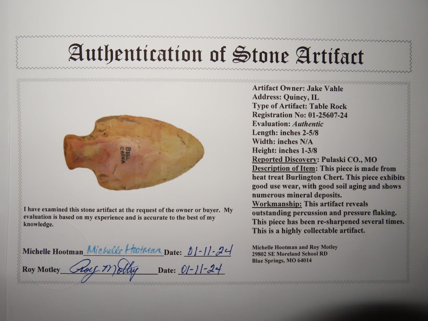 2 5/8″ Table Rock, Motley COA, found in Bell Creek, Pulaski Co Missouri