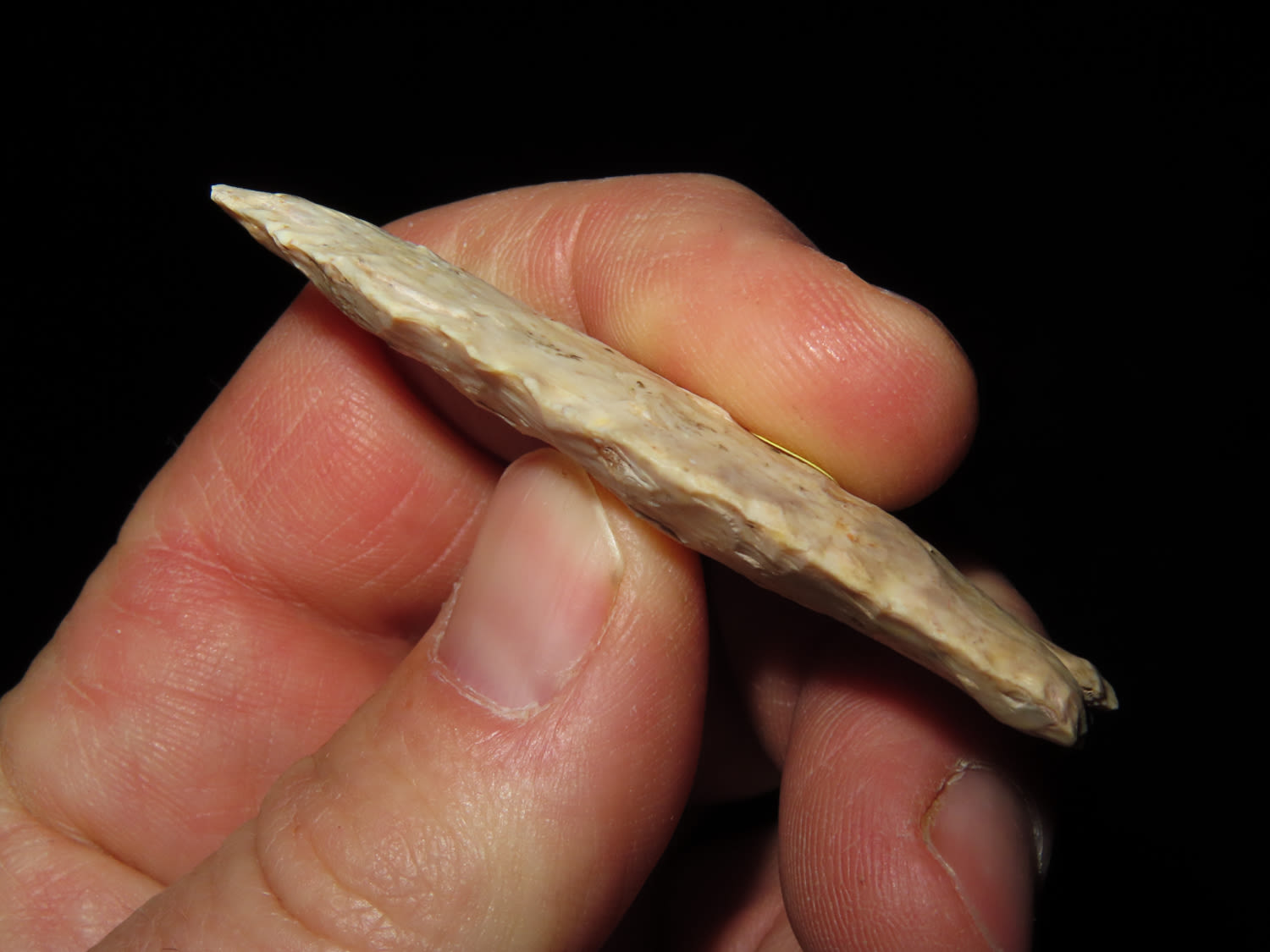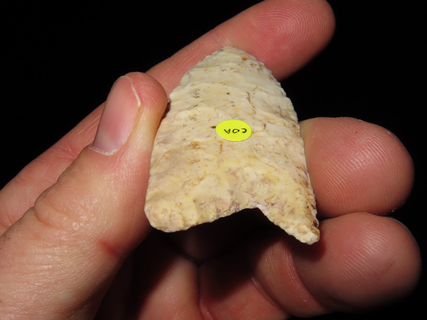 2 1/2″ PALEO FLUTED CLOVIS, DICKEY COA, FOUND IN GREENE COUNTY ILLINOIS, INTERESTING BASAL TREATMENT, INDIAN ARROWHEAD, ARTIFACT