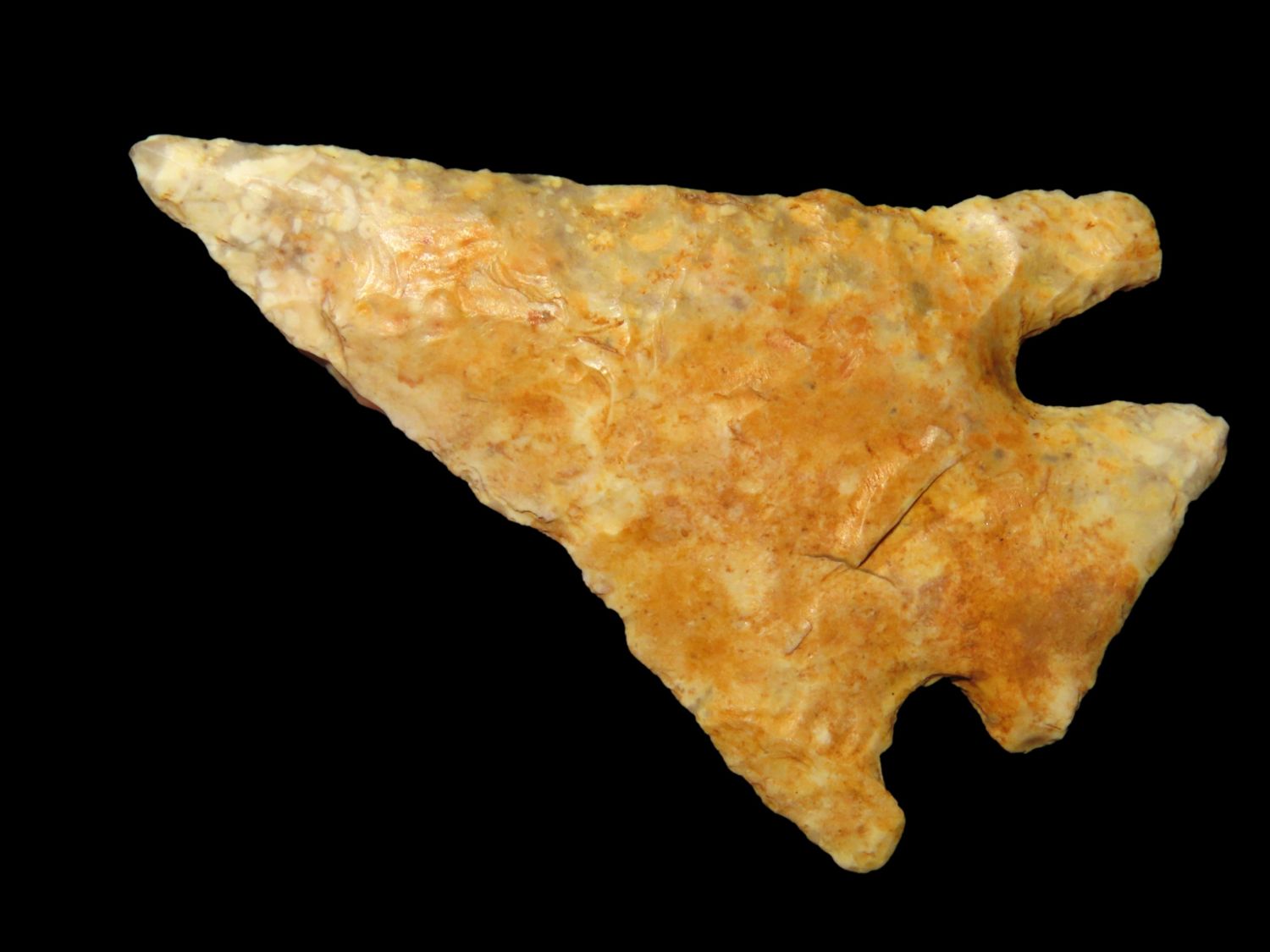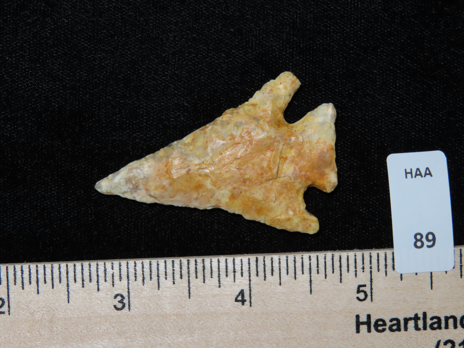 2 1/8″ KINGS CORNER NOTCH FOUND AT LIMA LAKE IN ADAMS COUNTY ILLINOIS, INDIAN ARROWHEAD, ARTIFACT