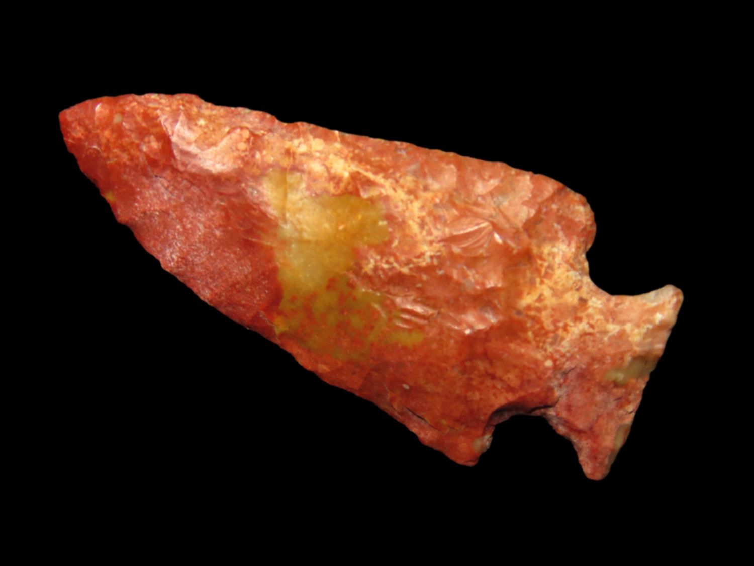 1 9/16" COLORFUL BIRD POINT / MINI TABLEROCK FOUND IN ADAMS COUNTY ILLINOIS, EXCELLENT FLAKING AND SUPER COLOR