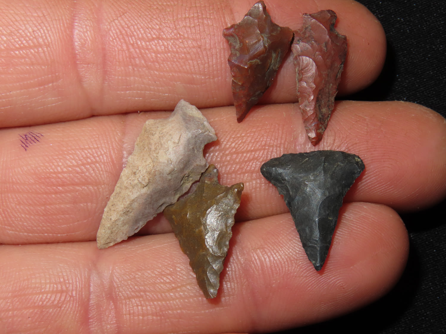 5 Bird Points, Found in Butler Co Missouri, EX Parker Collection