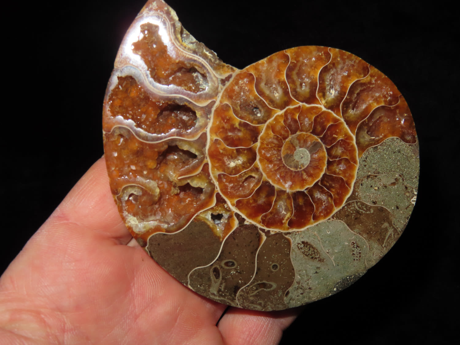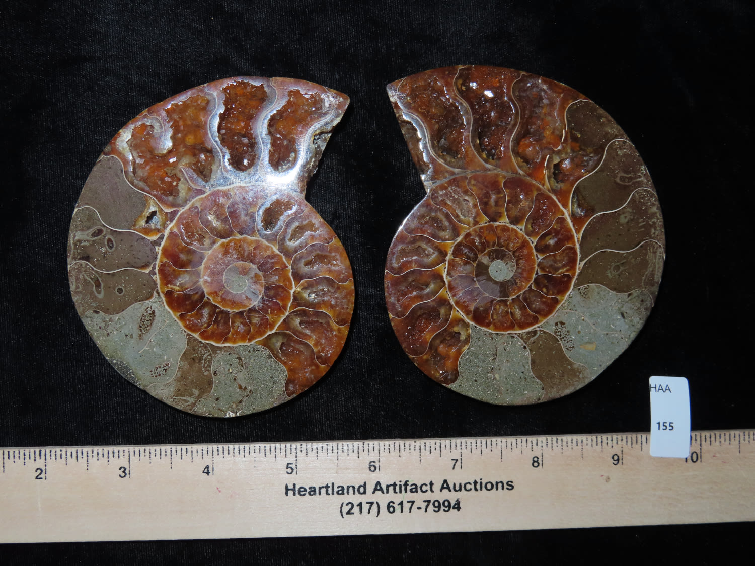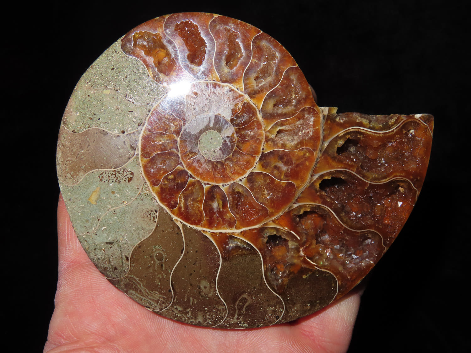 4.1/4″ Highly Polished Split Ammonite Fossil, beautiful color, with quarts inclusions