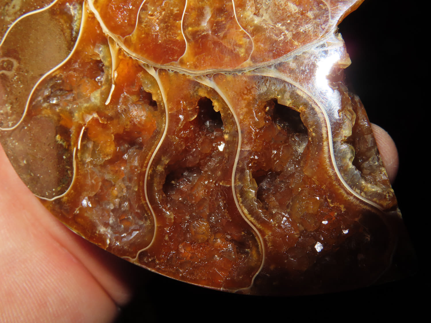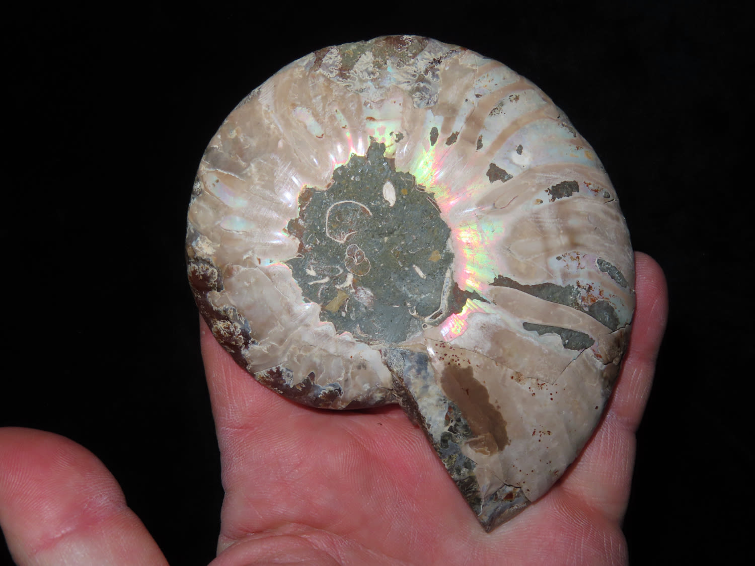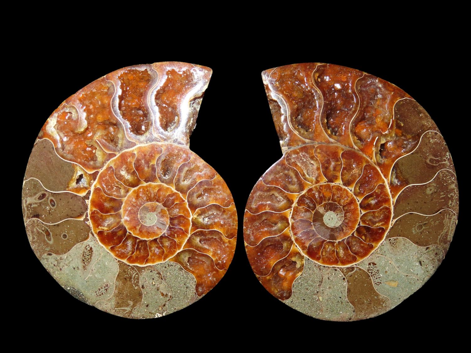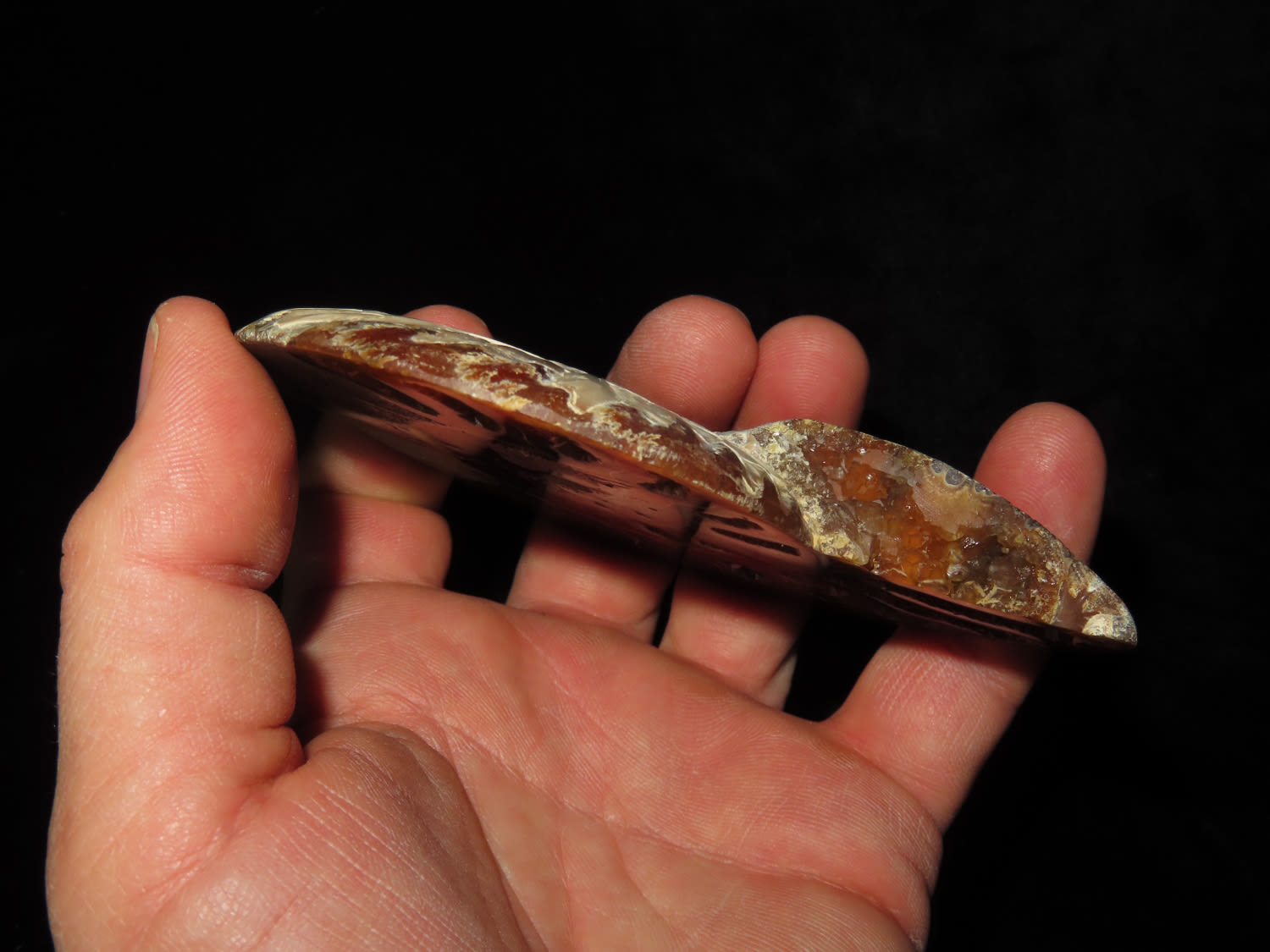 4.1/4″ Highly Polished Split Ammonite Fossil, beautiful color, with quarts inclusions