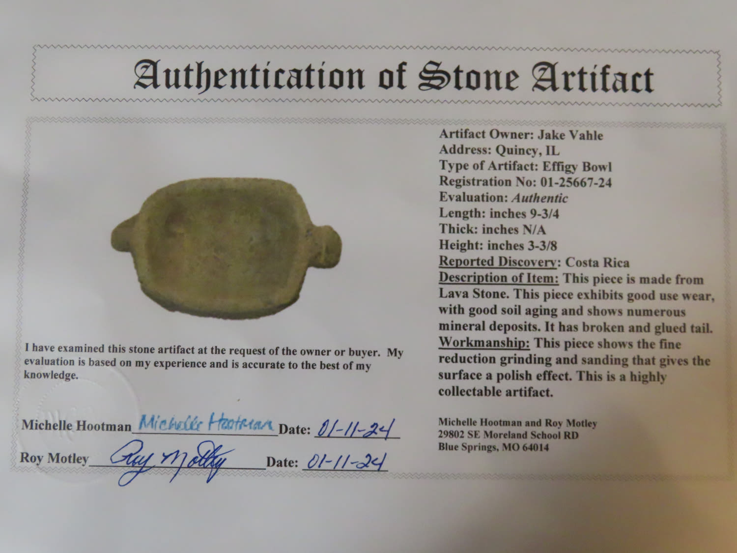 9 3/4″ Pre-Columbian Effigy Bowl, Motley COA, found in Costa Rica