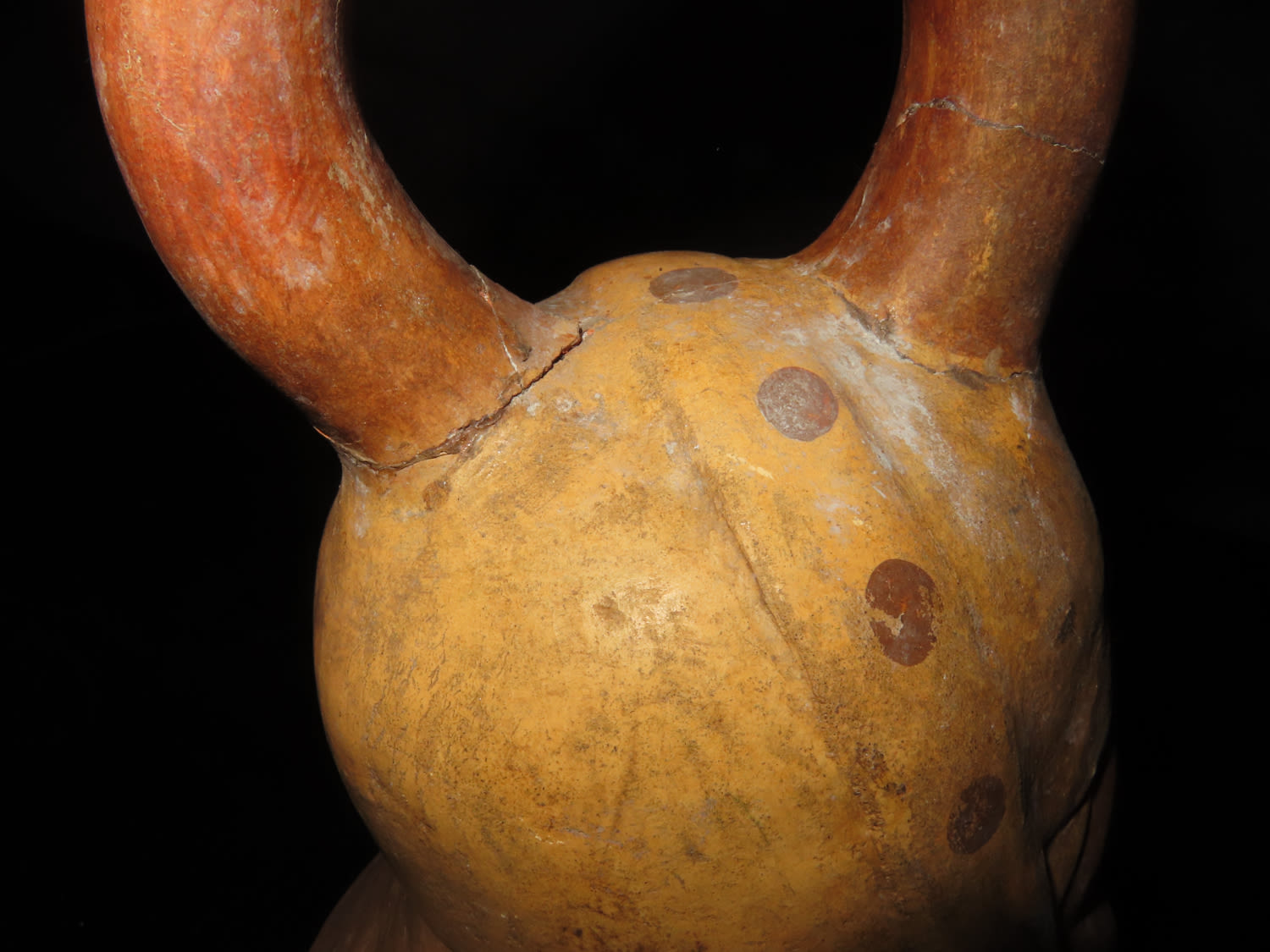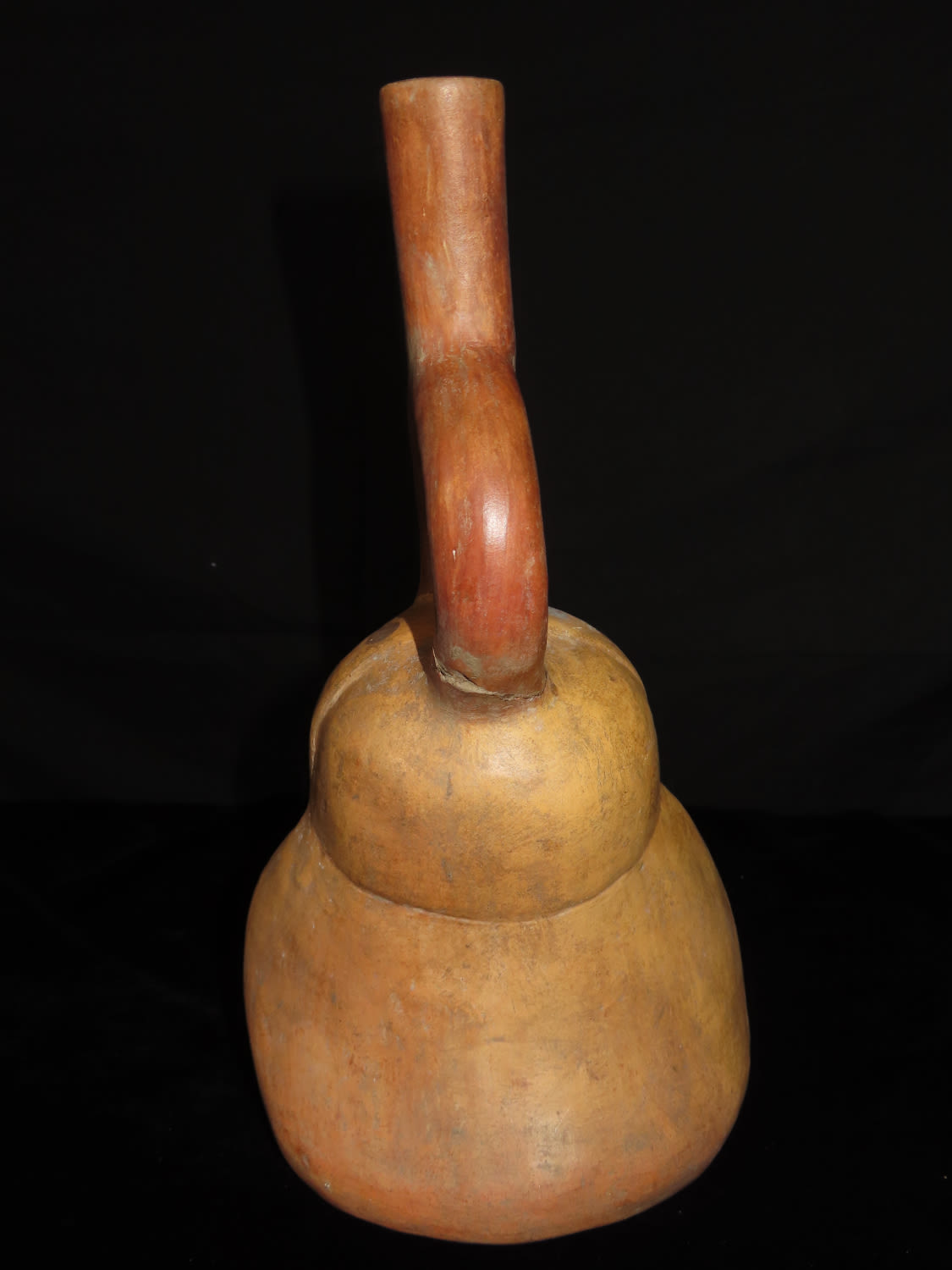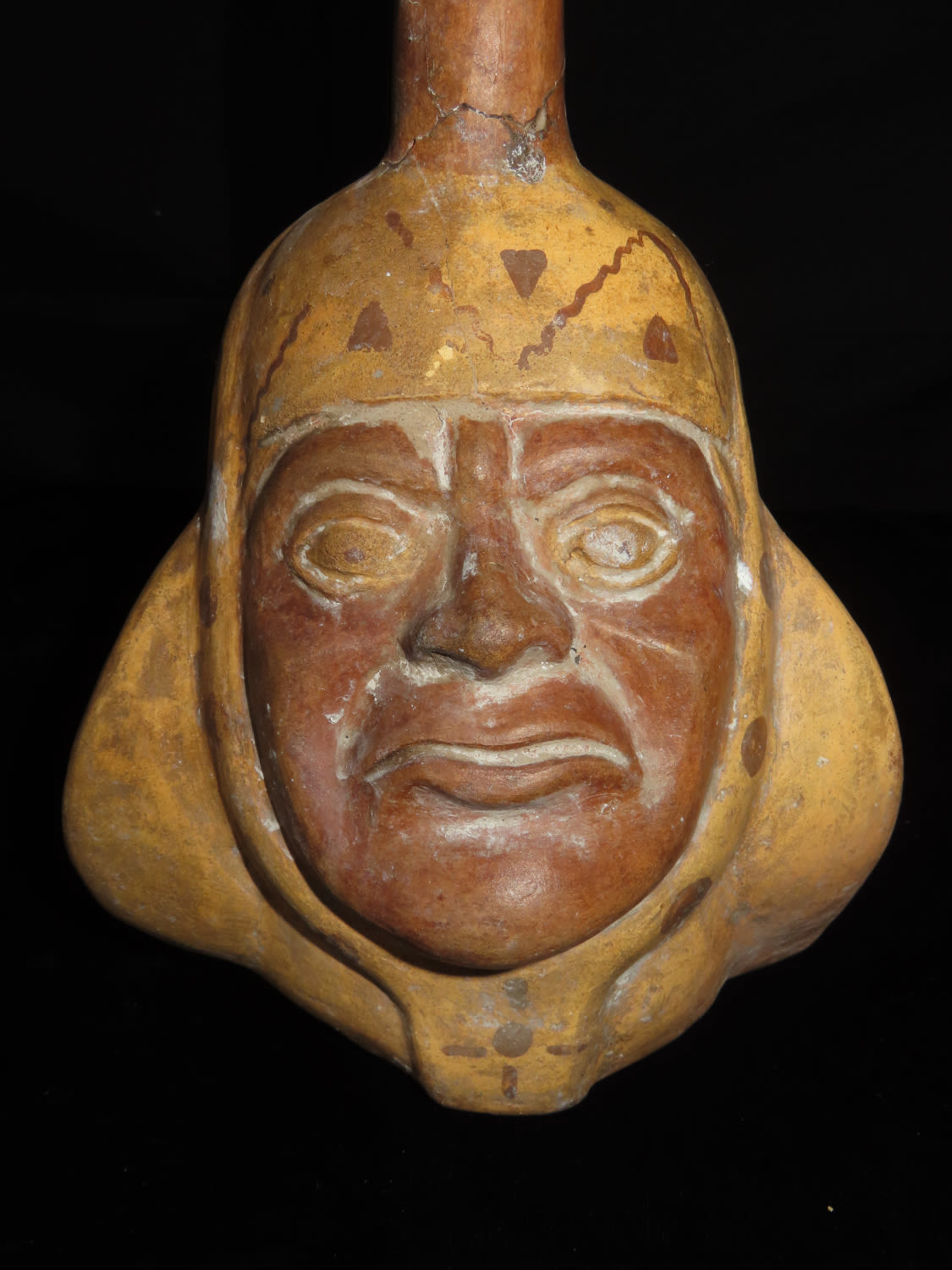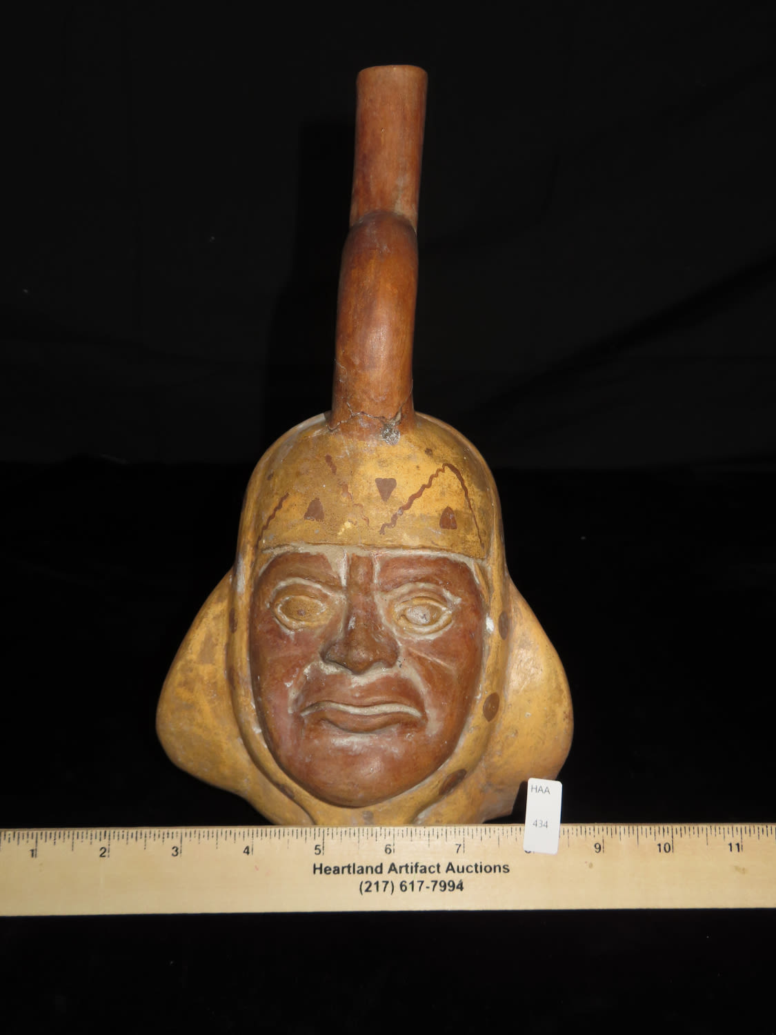 11 1/2" Replica Pre-Colombian Moche Portrait Head Stirrup Vessel
