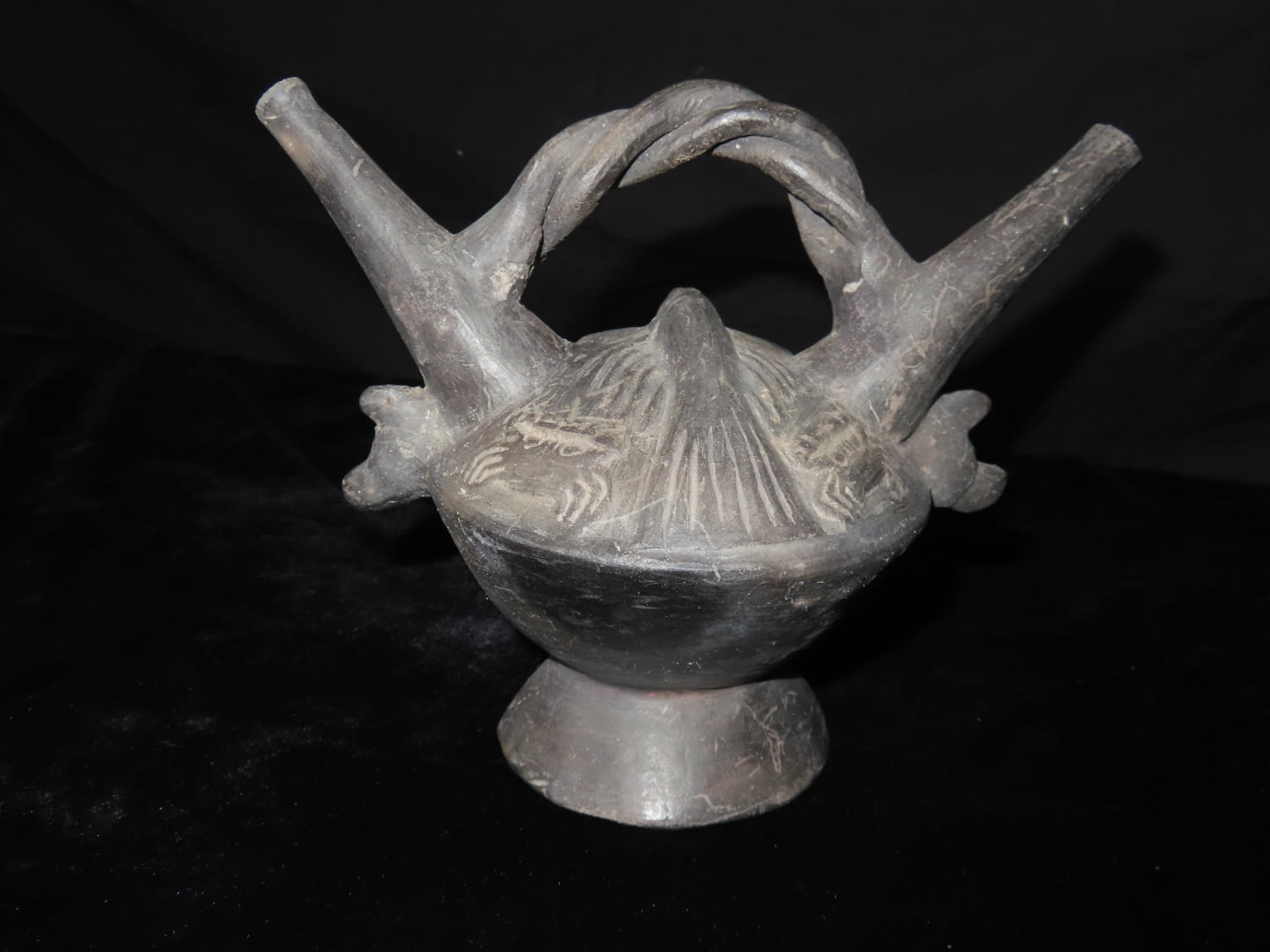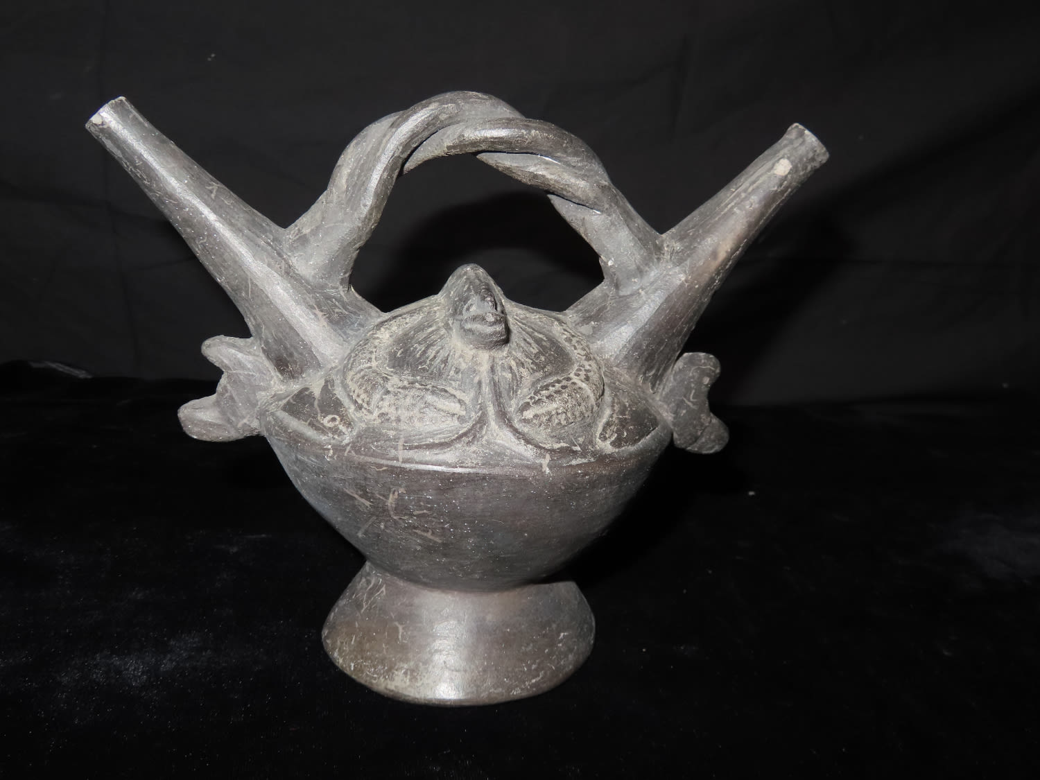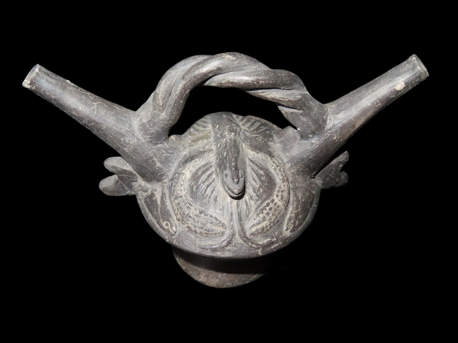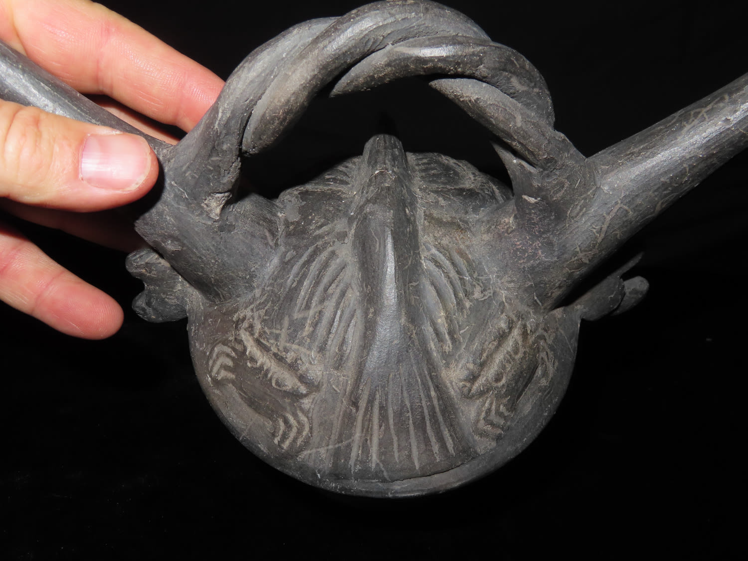 6 7/8″ Pre-Colombian Lambayeque Water Bottle-featuring Lobster and Crab Effigies