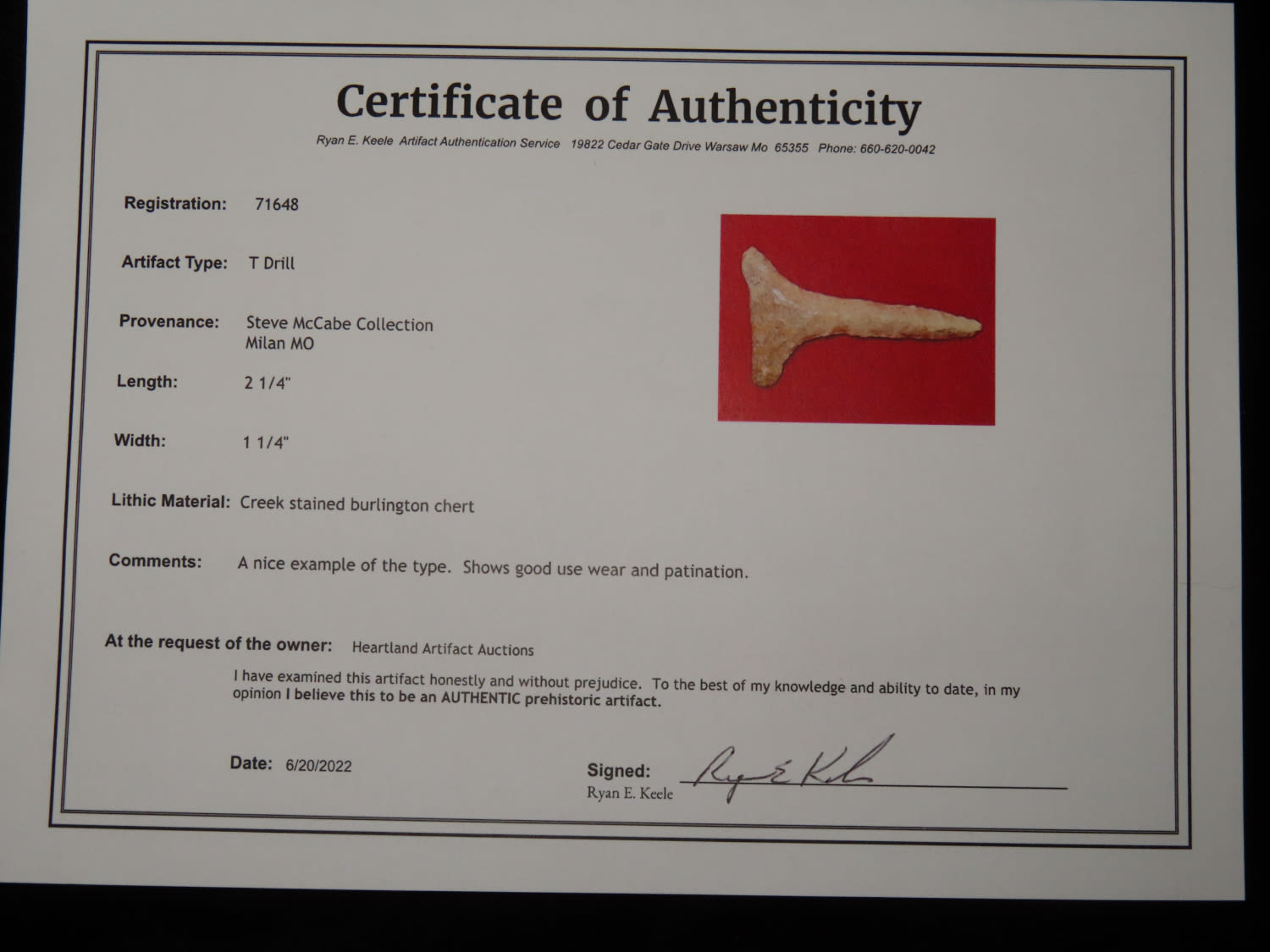 2 1/4″ T-Drill, Keele COA, Found in Missouri, Ex Steve McCabe Collection, Sullivan Co, Milan, Missouri