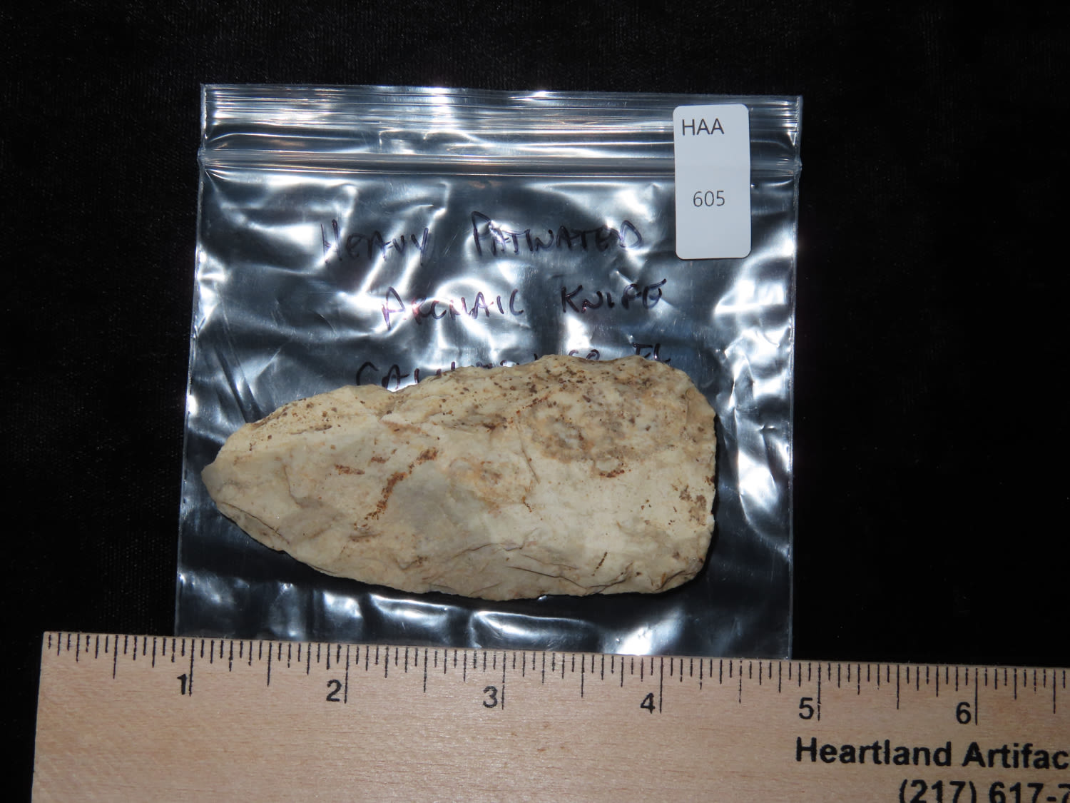 3 1/4" Heavily Patinated Archaic Knife, found in Calhoun Co, Illinois