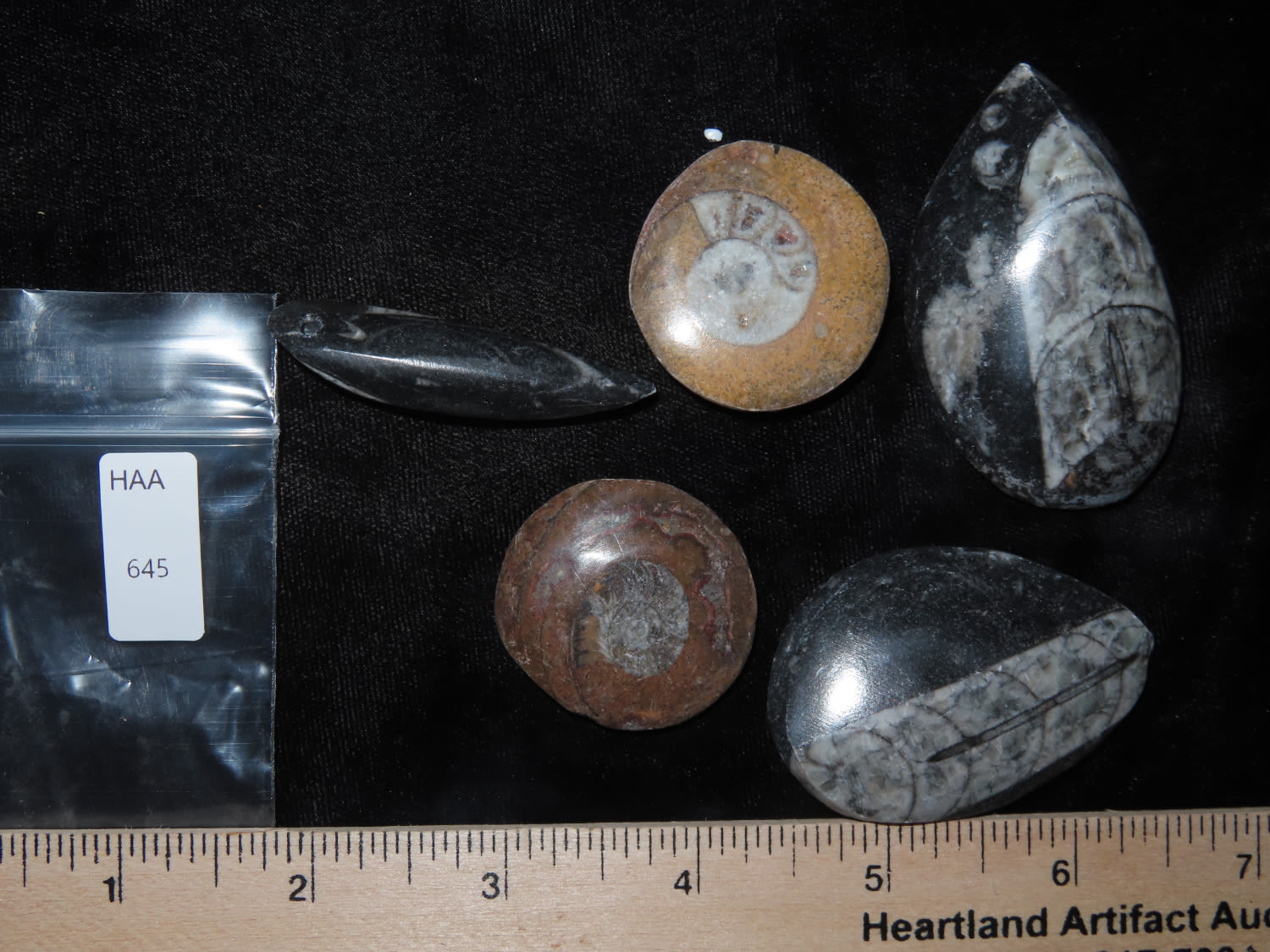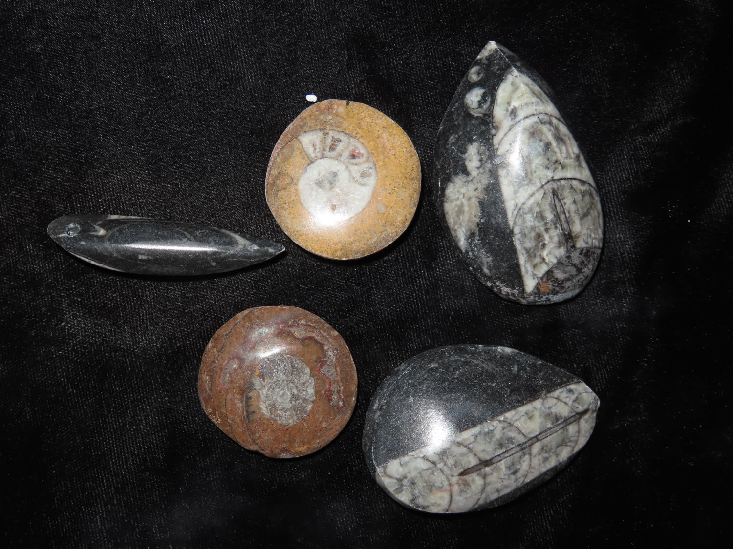 Lot of 5 Ammonite Fossils, one with hole for necklace