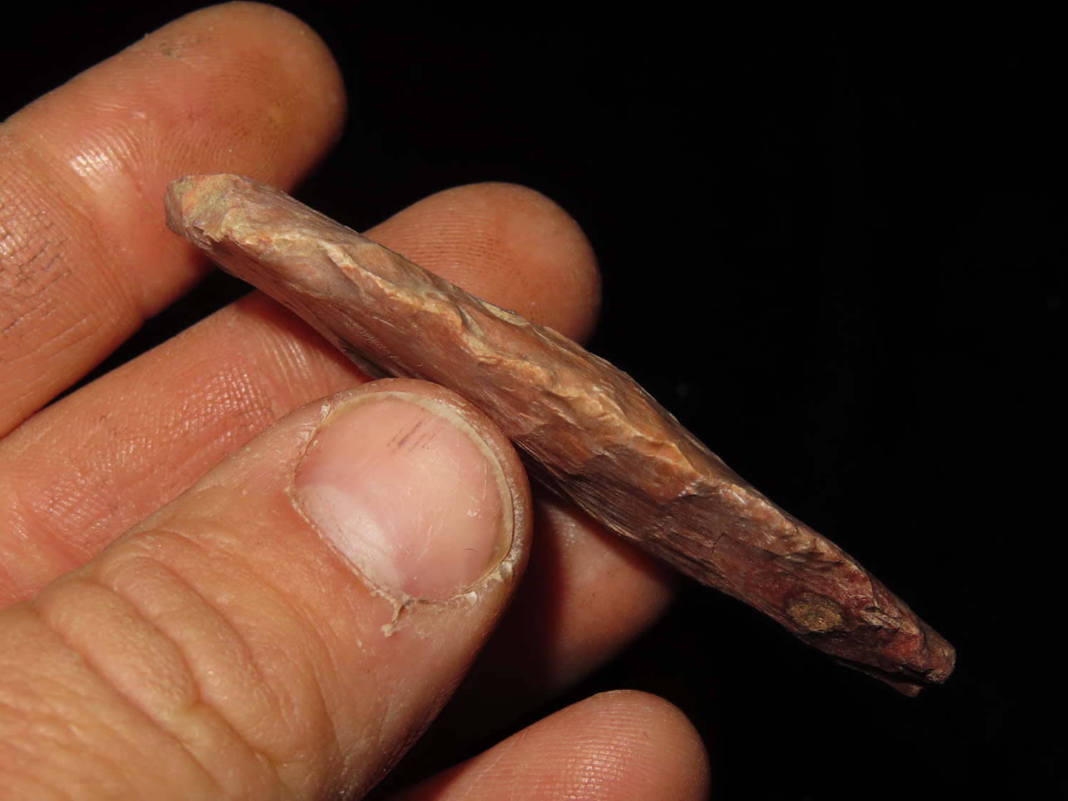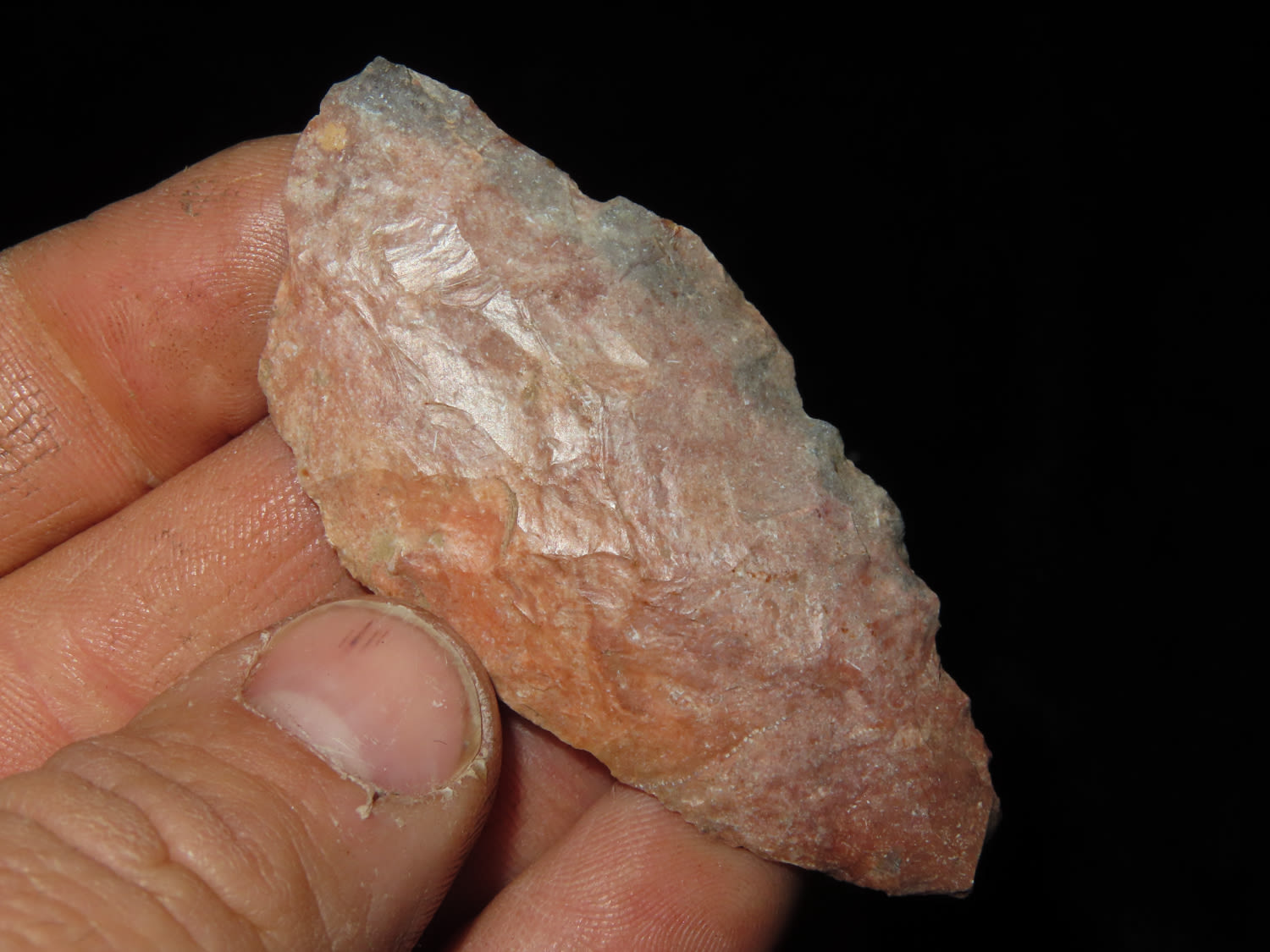 2.5/8″ Paleo Knife, Arrowhead, Found by Tim Dunham in Central Missouri near Jefferson City.